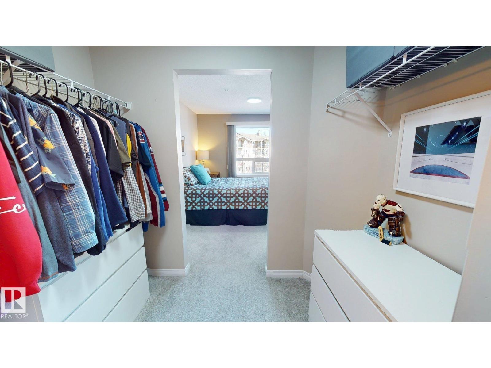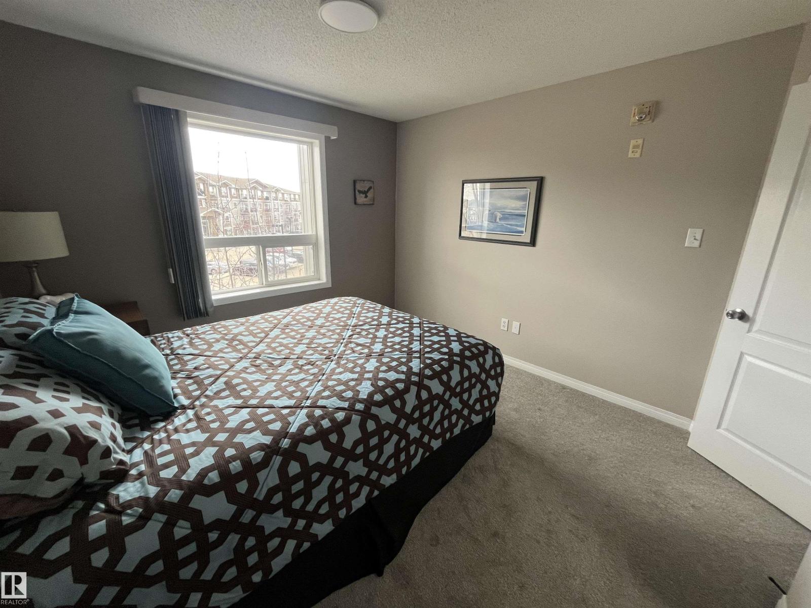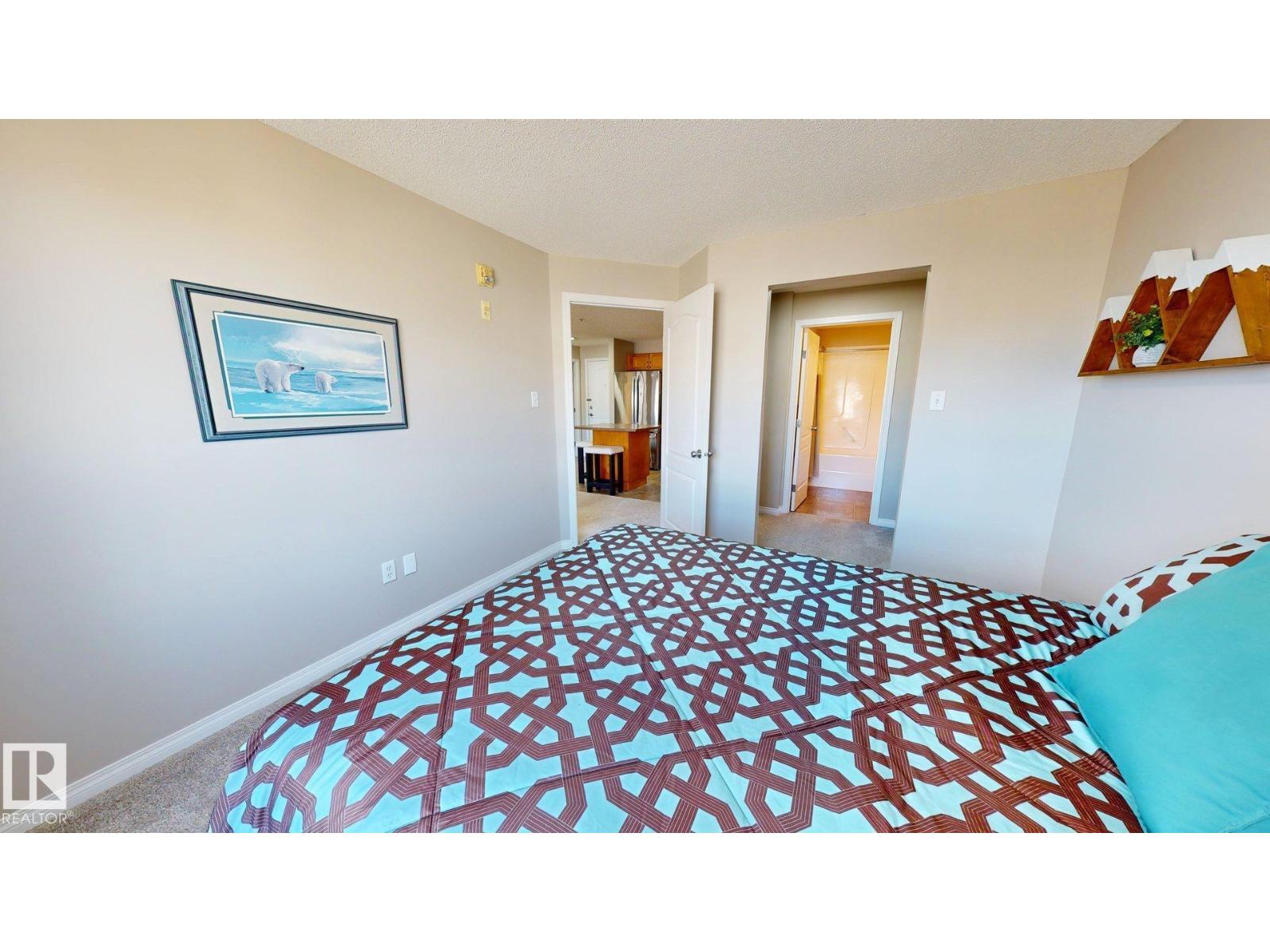 Welcome to 1302, 9363 Simpson Drive, a bright northeast facing condo that stays cool in the summer. This well maintained 2 bedroom-2 bathroom unit, you will notice the spacious open concept layout with like new carpet. The kitchen features stainless steel appliances including a dishwasher, a new fridge with water/icemaker, and a new stove, ample counter space and a functional island. The primary bedroom includes a walk-through closet leading to a 4pc ensuite. The second bedroom paired with an additional 4pc bathroom offers great flexible space for family, or a home office. Large in-suite laundry room includes a stacked washer/dryer and extra storage. Step out to a spacious balcony. Enjoy the convenience of being close to but not directly beside the elevator for easy access. Unit includes a titled above-ground, electrified parking stall. Building amenities include a fitness room, an entertainment room, and guest suite. Ideally located near schools, shopping, parks, a rec centre, and a bus stop near by. (id:63190)