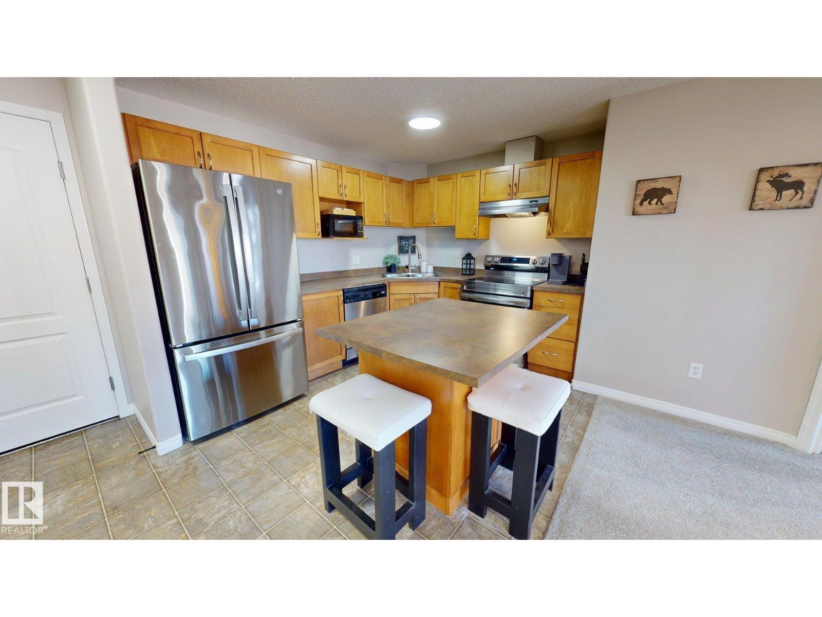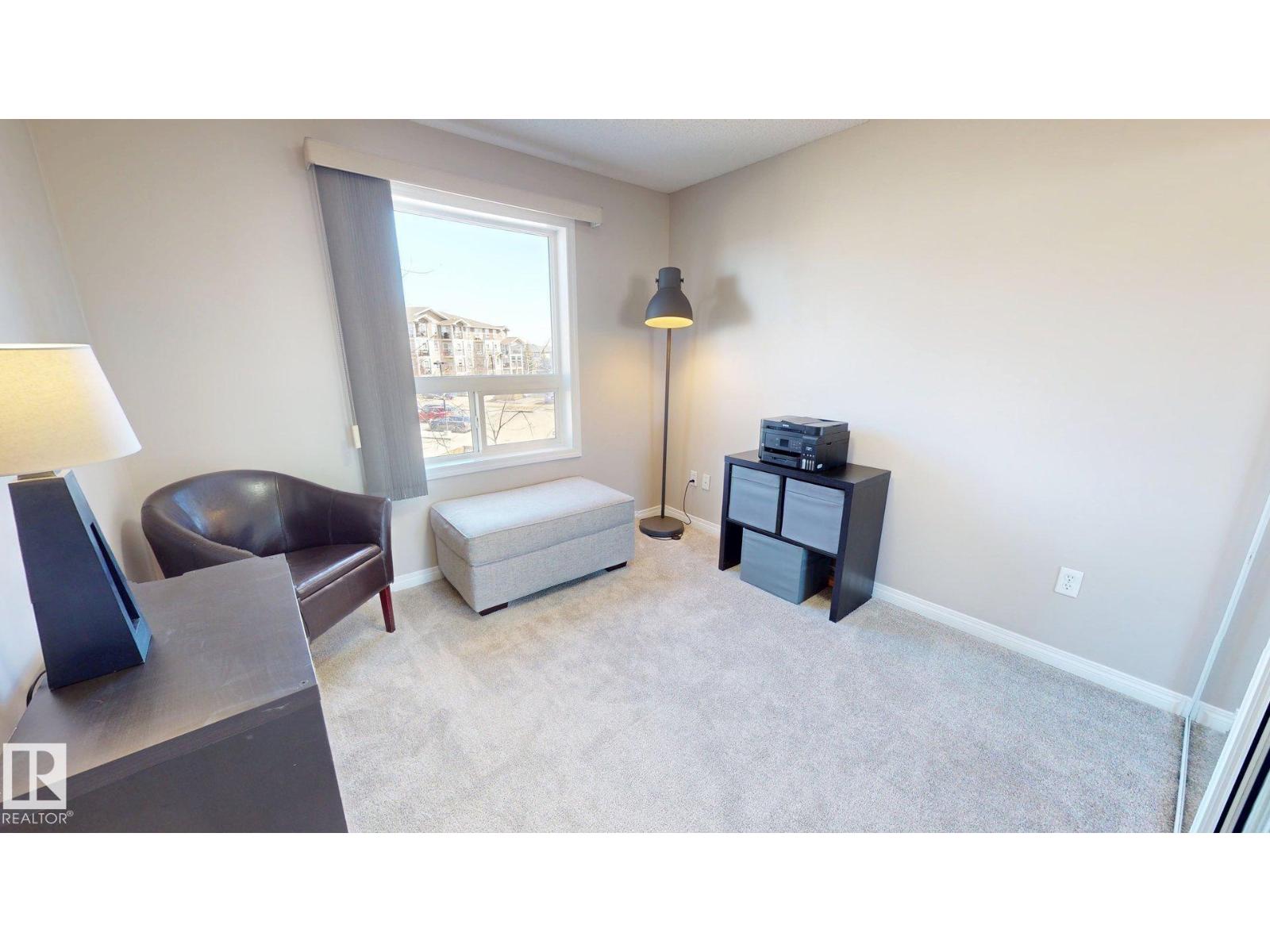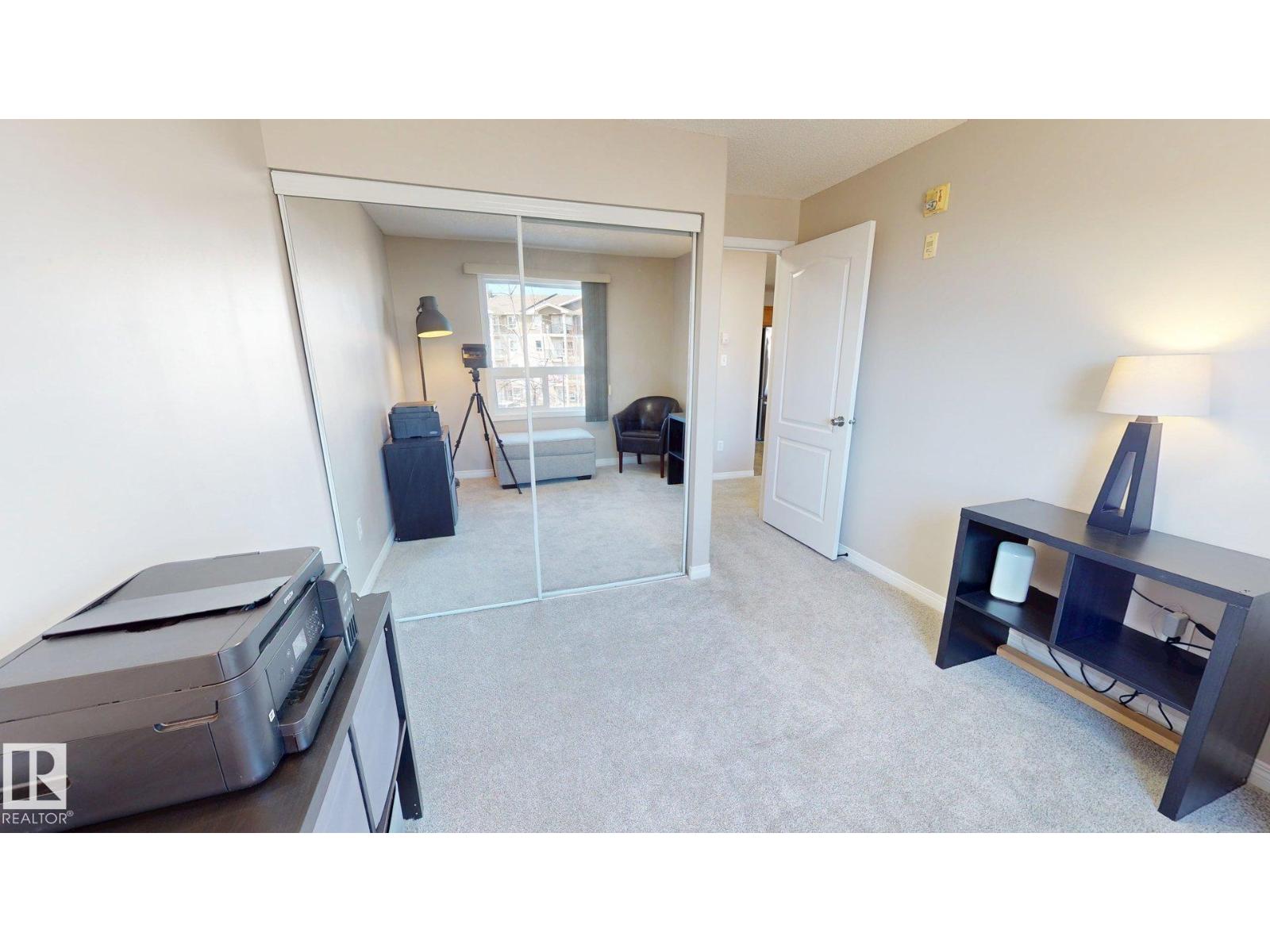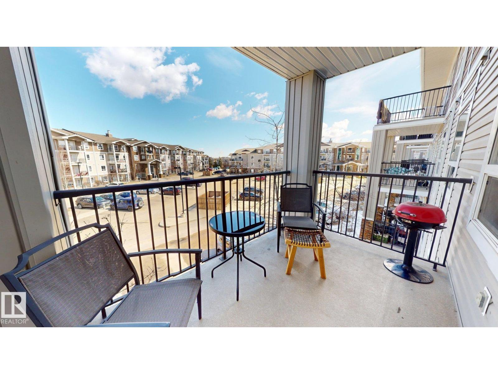 Welcome to 1302, 9363 Simpson Drive, a bright northeast facing condo that stays cool in the summer. This well maintained 2 bedroom-2 bathroom unit, you will notice the spacious open concept layout with like new carpet. The kitchen features stainless steel appliances including a dishwasher, a new fridge with water/icemaker, and a new stove, ample counter space and a functional island. The primary bedroom includes a walk-through closet leading to a 4pc ensuite. The second bedroom paired with an additional 4pc bathroom offers great flexible space for family, or a home office. Large in-suite laundry room includes a stacked washer/dryer and extra storage. Step out to a spacious balcony. Enjoy the convenience of being close to but not directly beside the elevator for easy access. Unit includes a titled above-ground, electrified parking stall. Building amenities include a fitness room, an entertainment room, and guest suite. Ideally located near schools, shopping, parks, a rec centre, and a bus stop near by. (id:63190)