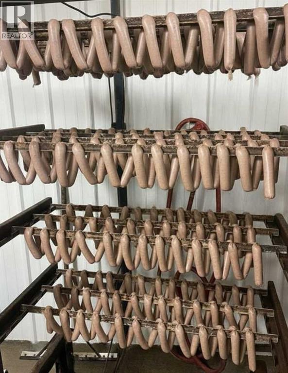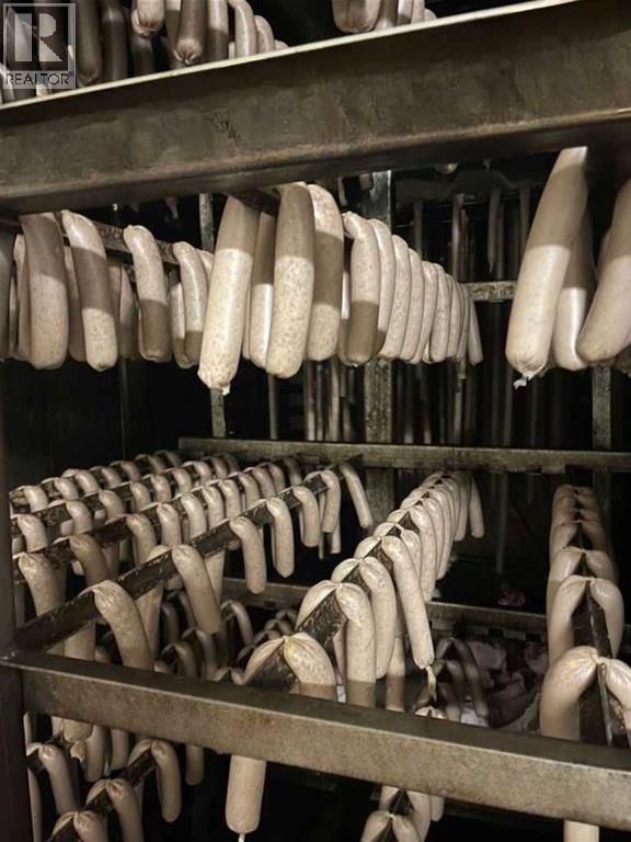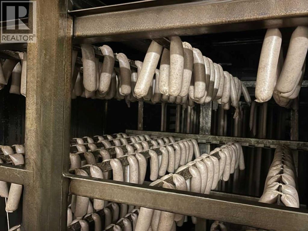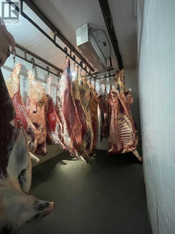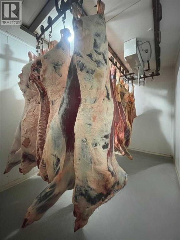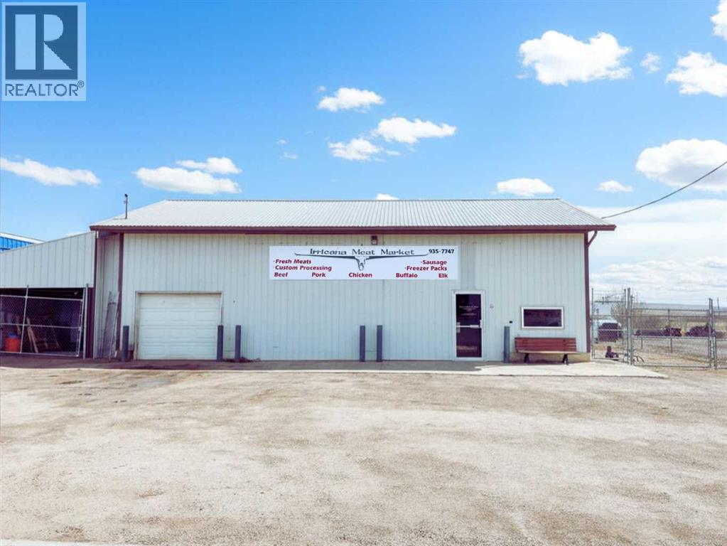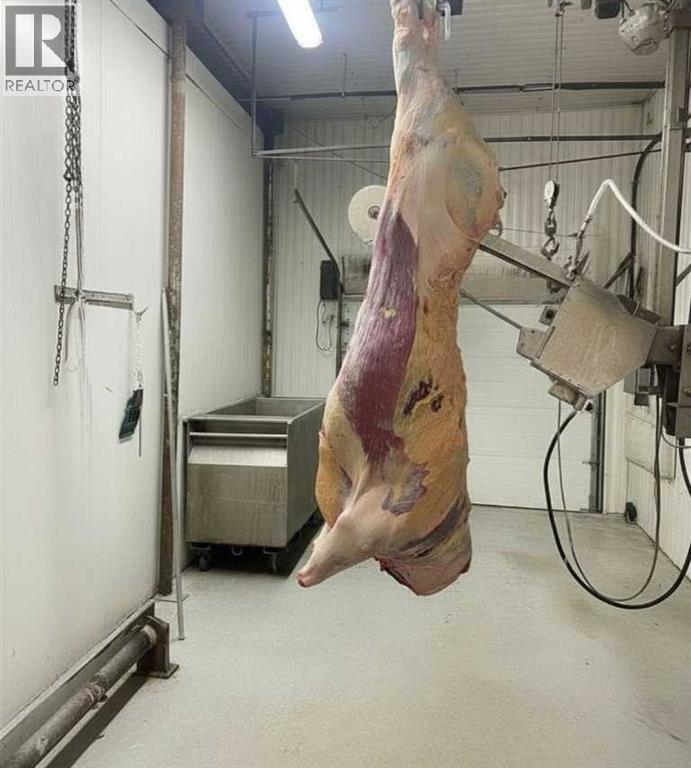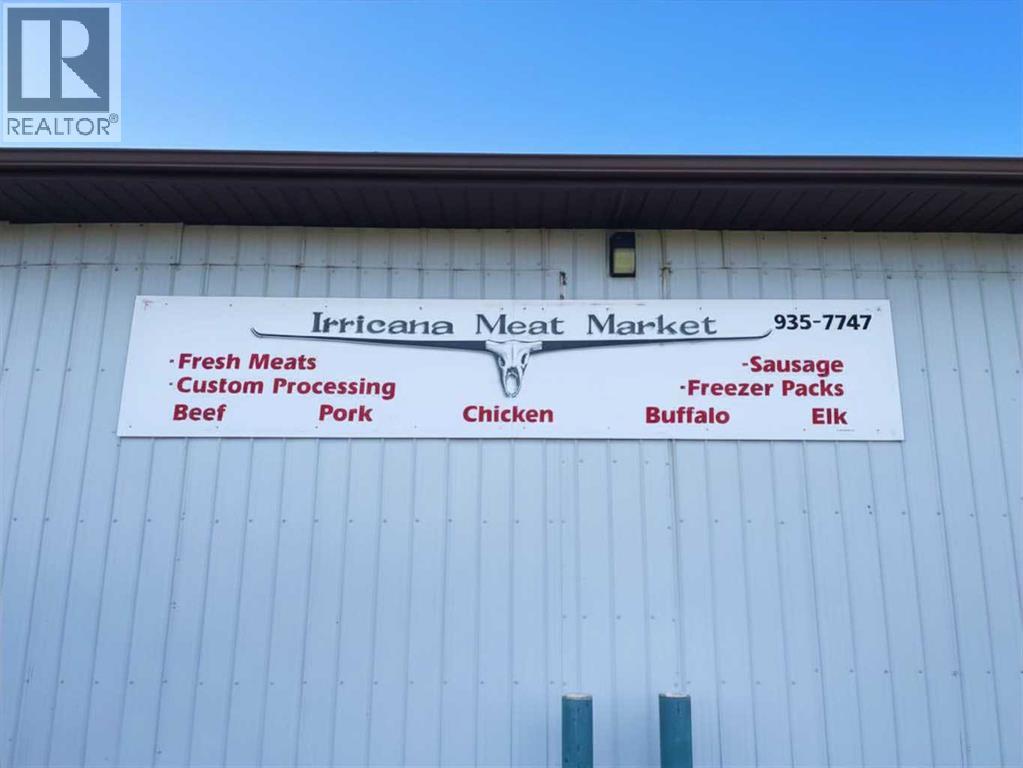 An exceptional opportunity to own a fully equipped, operational butcher shop and very well established business in Irricana, AB - just 20 minutes from NE Calgary. The Irricana Meat Market is a trusted local business specializing in professional butchering services and custom sausage and other custom smoked meat products. The sale includes the business, the equipment, and the property, offering a turnkey setup with flexibility to continue the mobile service, expand into on-site processing or grow the operation further. The facility is well equipped with rails and hoists for handling, bandsaw and splitting saw, grinder, tenderizer and patty machine, along with a smokehouse for value-added products. Additional equipment includes a sausage linker, vacuum pack system, scales, refrigeration, freezer seacan, and extra storage. Meat tubs, boxes, bags, and bands are also included to support daily operations. A practical, no-nonsense opportunity with the equipment and foundation in place to process very high volumes. This shop is capable of processing 20 head of cattle per week, but it would also work to handle large volumes of other livestock and/or wild game. This lucrative business is ready for the next owner to step in and get to work. For those who understand the industry, the value here is clear: equipment, property, high volume potential, and a loyal client base, very well established, all in one. (id:63190)