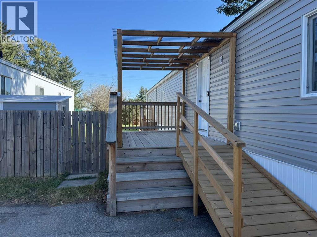 Welcome to High River Village, a quiet, family-friendly community in NE High River. This move-in-ready mobile home has been thoughtfully updated throughout, offering a perfect blend of comfort, style, and affordability—ideal for first-time buyers, downsizers, or investors. Please note some of the pictures have been virtually staged. Step outside to a fully fenced yard with a covered porch and spacious deck—perfect for relaxing, entertaining, or letting kids and pets play safely. A well-kept lawn and handy storage shed add even more functionality to the outdoor space.Inside, you’ll find a bright, sun-filled living room and an inviting dining area that create a warm, welcoming atmosphere. Recent upgrades—including vinyl windows, low-maintenance siding, and a durable metal roof—provide long-term value and peace of mind. The home also features a new washer and dryer, along with an accessibility ramp for added convenience.With 2 bedrooms and 1 full bathroom, the layout is both practical and comfortable, making it easy to settle in and feel at home.Pad fees include water, sewer, garbage removal, site maintenance, and professional park management—helping keep ownership simple and stress-free.Affordable, updated, and ready for immediate possession—this is a fantastic opportunity to get into the market in a peaceful, well-maintained community. Book your showing today! (id:63190)