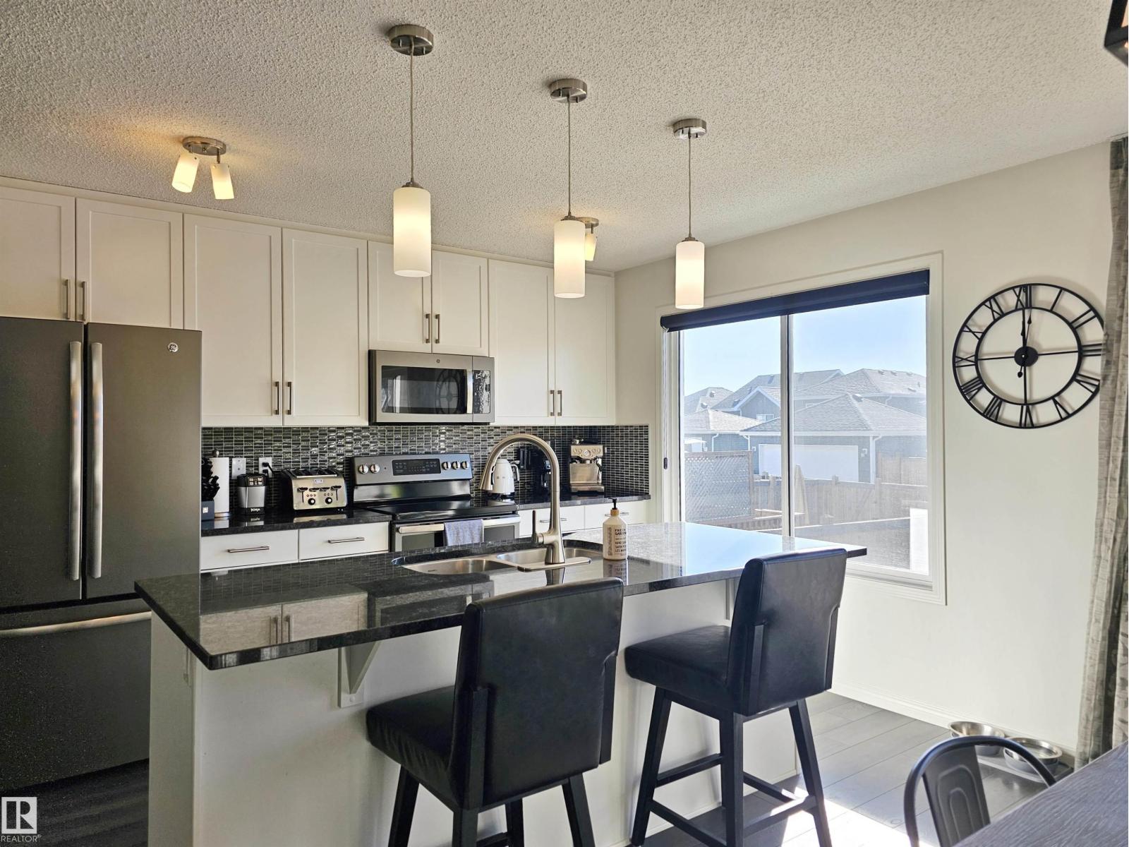 Former Brookfield SHOWHOME in the heart of Edgemont offering 1,432+ sq ft of refined, functional living. This 3 bed, 2.5 bath two-story blends thoughtful design with everyday comfort, anchored by an open-concept main floor finished in rich espresso longboard and curated details throughout. The boutique kitchen impresses with stainless steel appliances (newer dishwasher 2025), floor-to-ceiling custom cabinetry, granite countertops, and a generous central island that flows effortlessly into the cozy living room and sunlit dining space. Sliding doors extend the living outdoors to a private, south-facing fenced yard with a two-tier deck—an ideal backdrop for long summer evenings. Upstairs, a 4 pc bath alongside an airy central bonus room that connects three well-sized bedrooms, including a spacious primary retreat w/ 2 closets (1 walk-in) and 4 pc ensuite. The Goods: oversized SINGLE ATTACHED GARAGE, A/C, newer hot water tank (2023), UPSTAIRS LAUNDRY & an unspoiled basement ready for future development. (id:63190)