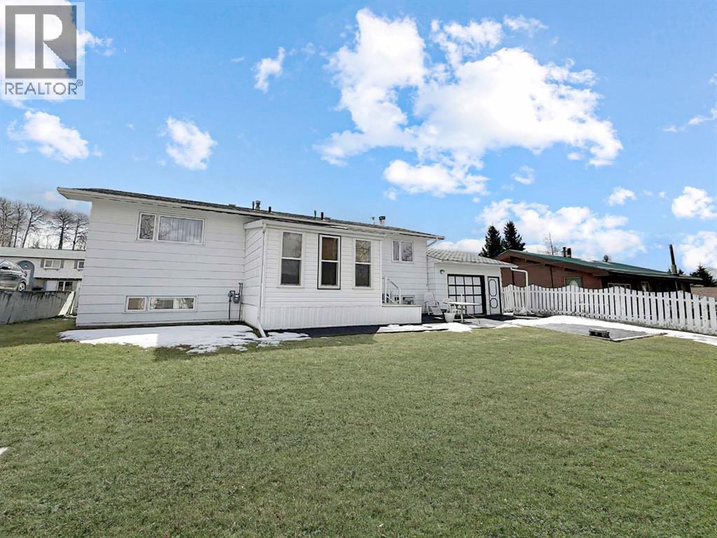 Proudly owned by the same family since 1976, this home is a rare find and a true reflection of long-term care and pride of ownership. Located on 104th Avenue, you’ll enjoy beautiful mountain views from both the front and back of the property. The backyard is fairly flat and fully fenced, making it ideal for families, pets, or entertaining, while the paved driveway leads to a spacious 24’ x 17’ drive-through garage—perfect for vehicles, storage, or all your outdoor toys.The home does not offer front entry access, but the rear features a generous 11’ x 12’ porch addition that provides the perfect space for coats, boots, and everyday storage. This bi-level style home offers just over 1,000 sq ft of living space, with a bright and welcoming main floor that features large windows, a cozy gas fireplace, and an open dining and kitchen area. Upstairs you’ll find a spacious primary bedroom, two additional bedrooms, and a beautifully renovated 3-piece bathroom.The basement has been meticulously maintained and offers a nostalgic charm, complete with a second wood-burning fireplace, two additional bedrooms, another 3-piece bathroom, as well as the laundry and utility area. Major updates include the furnace and hot water tank, both replaced approximately 6–7 years ago, along with windows that were updated in the early 2000s.This well-loved home is ready for its next chapter. Possession is available in 30 days and is negotiable. Book your showing today! (id:63190)