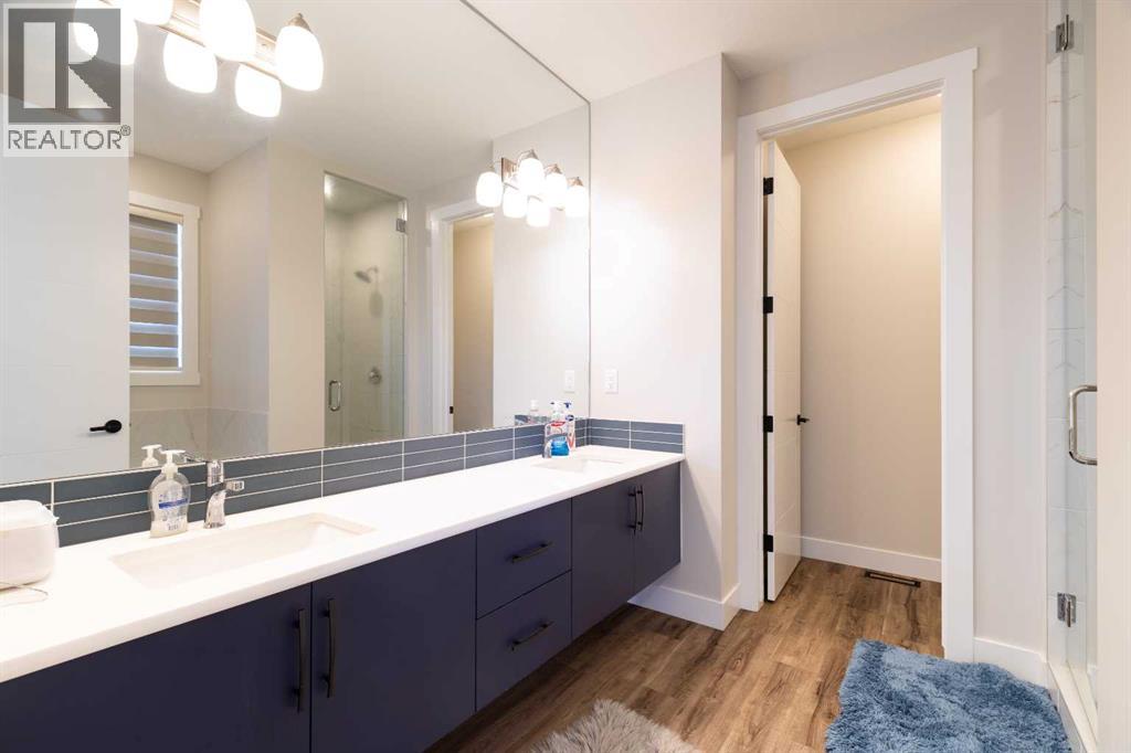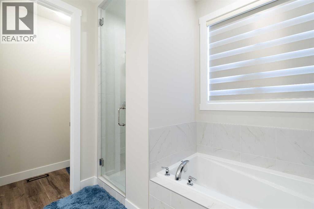 Welcome to your dream home in Southwinds, Airdrie! This brand-new 5-bedroom, 3.5-bathroom home sits on an oversized pie-shaped lot that backs directly onto a walking path and playground—an unbeatable location for families and outdoor enthusiasts.With over $115,000 worth of upgrades inside, you’ll love the open-concept layout with luxury vinyl plank flooring, a main-floor bedroom with full bath, and a modern kitchen featuring high-end stainless steel appliances, sleek cabinetry, and a large island with breakfast bar. The spacious dining area flows seamlessly into the living space—perfect for hosting and everyday living.Upstairs offers a versatile bonus room, a luxurious primary suite with walk-in closet and spa-inspired ensuite, plus three additional bedrooms and another full bath—ideal for large or multi-generational families.The unfinished basement with a separate entrance awaits your personal touch—create the perfect rec room, home gym, or additional living space tailored to your needs, including 9 feet ceilings on each floor.Enjoy direct access to green space from your expansive backyard—ideal for kids, pets, and peaceful evening strolls. This home offers the perfect blend of style, space, and location in one of Airdrie’s most desirable communities.Don’t miss this rare opportunity—book your showing today! (id:63190)