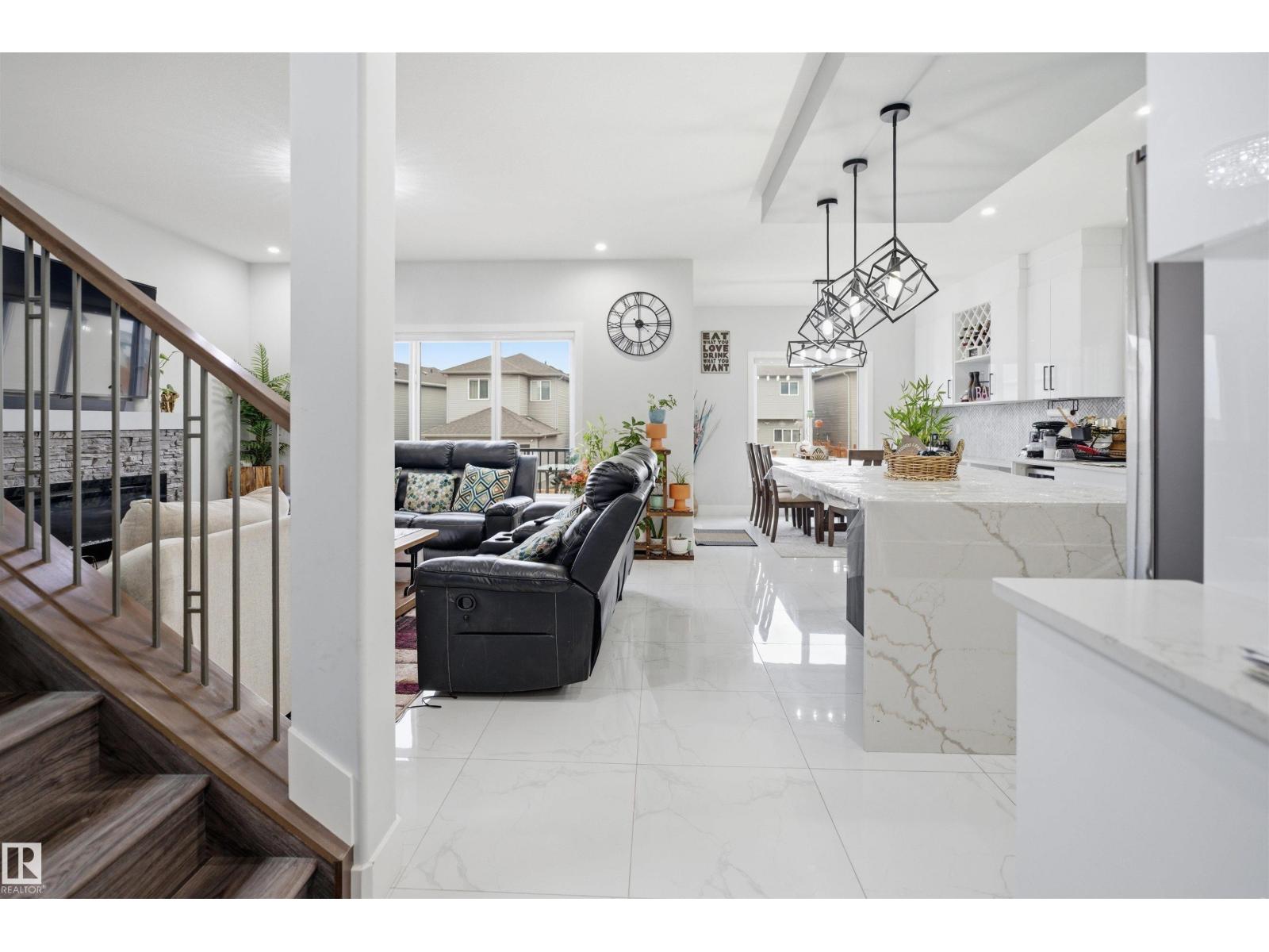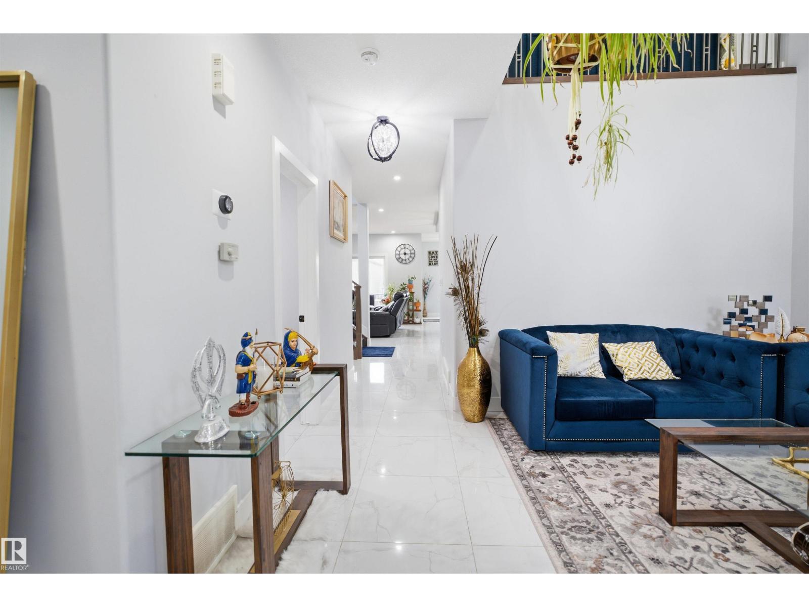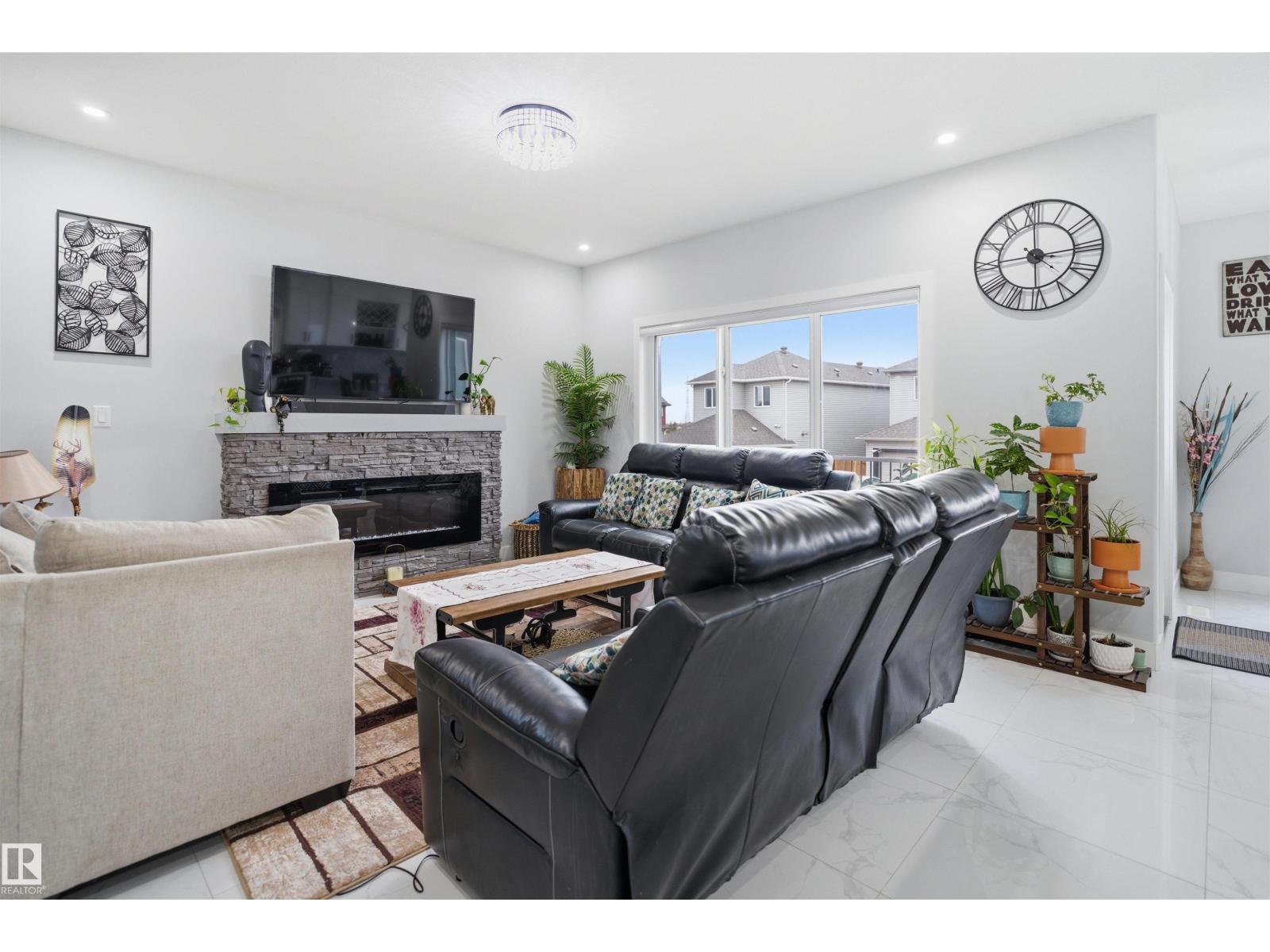 Beautiful 3-En-suite Home in Laurel | 5 Bedrooms | Spice Kitchen | Bonus Room Discover this beautifully upgraded home in the highly sought-after community of Laurel, situated on a regular lot with impressive curb appeal. The exterior showcases elegant stucco with stone accents, creating a refined and timeless look.This spacious home offers a total of 5 bedrooms, including 2 primary bedrooms and 3 additional ensuite bathrooms, along with 4 bathrooms in total. The main floor features a bright open-to-below living area with a designer ceiling, a full bedroom with a bathroom, an extended main kitchen complemented by a spice kitchen, and a second living area with a cozy fireplace. The entire main level is finished with elegant tile flooring.The upper level includes 2 primary bedrooms, 2 additional bedrooms, 3 bathrooms, a generous bonus room, and convenient upper-floor laundry. Vinyl flooring enhances both the staircase and upper level, adding durability and style. (id:63190)