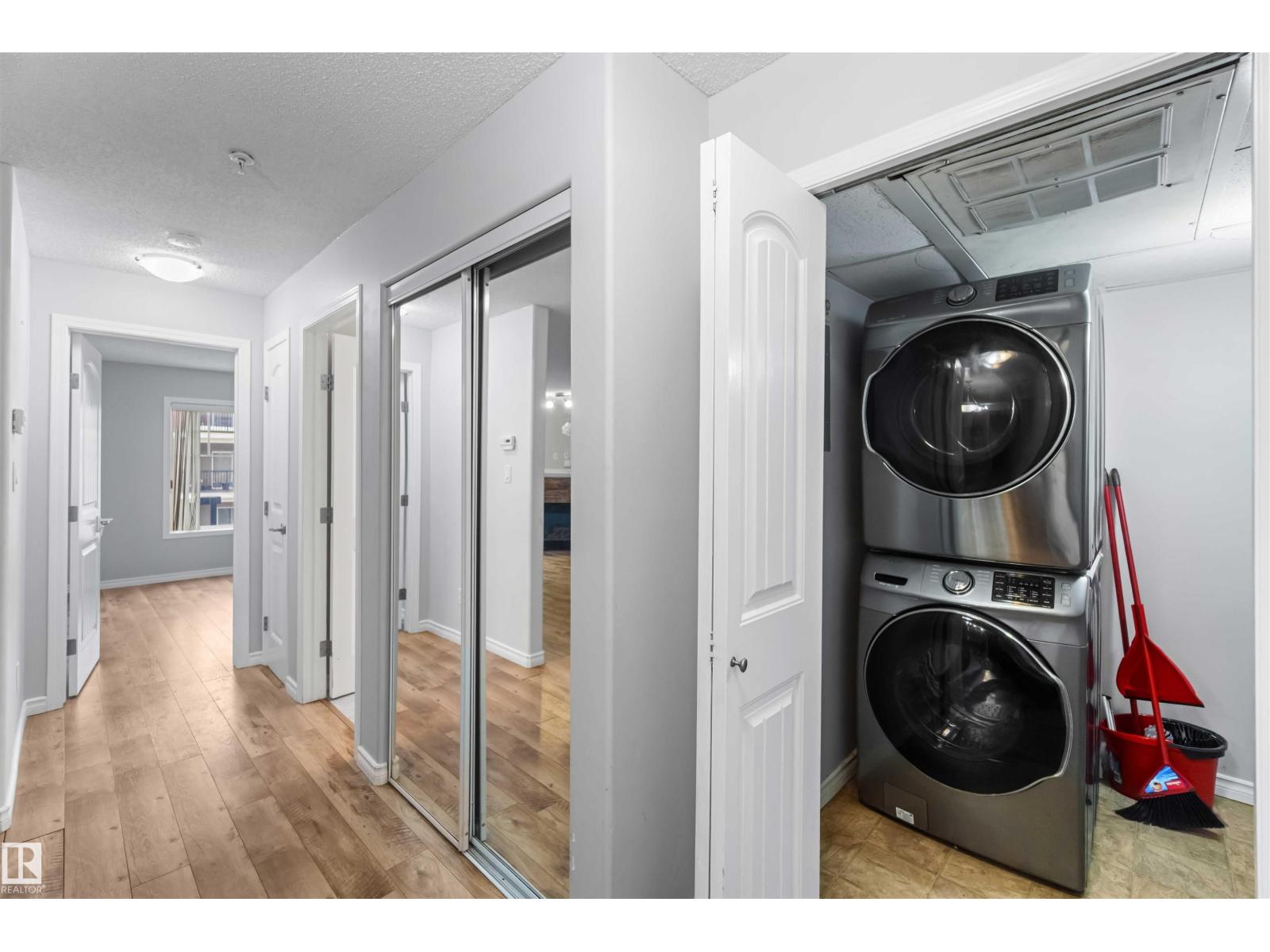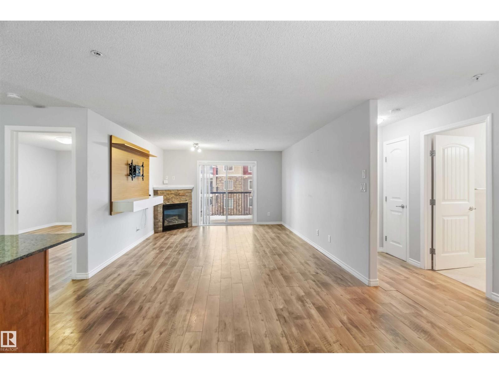 Welcome to The Marquee at Terra Losa, a highly regarded and well-maintained building in one of Edmonton’s most convenient locations. This spacious 3rd-floor condo offers an open and functional layout featuring two large bedrooms and two full bathrooms, ideal for professionals, couples, or downsizers. The home is designed for comfort with hardwood and tile flooring, a gas fireplace, and a brand new air conditioning and a new dishwasher wash recently replaced. The kitchen and living area flow seamlessly together, creating a warm and inviting space. A separate in-suite laundry room with high-end washer and dryer adds convenience. The unit has been well maintained and professionally cleaned, making it move-in ready. Enjoy the added benefits of heated underground parking, a social room, exercise facilities, and a hobby/workshop area. Utilities included are heat, water, and natural gas for the fireplace and BBQ hookup (electricity, internet, and cable extra). (id:63190)