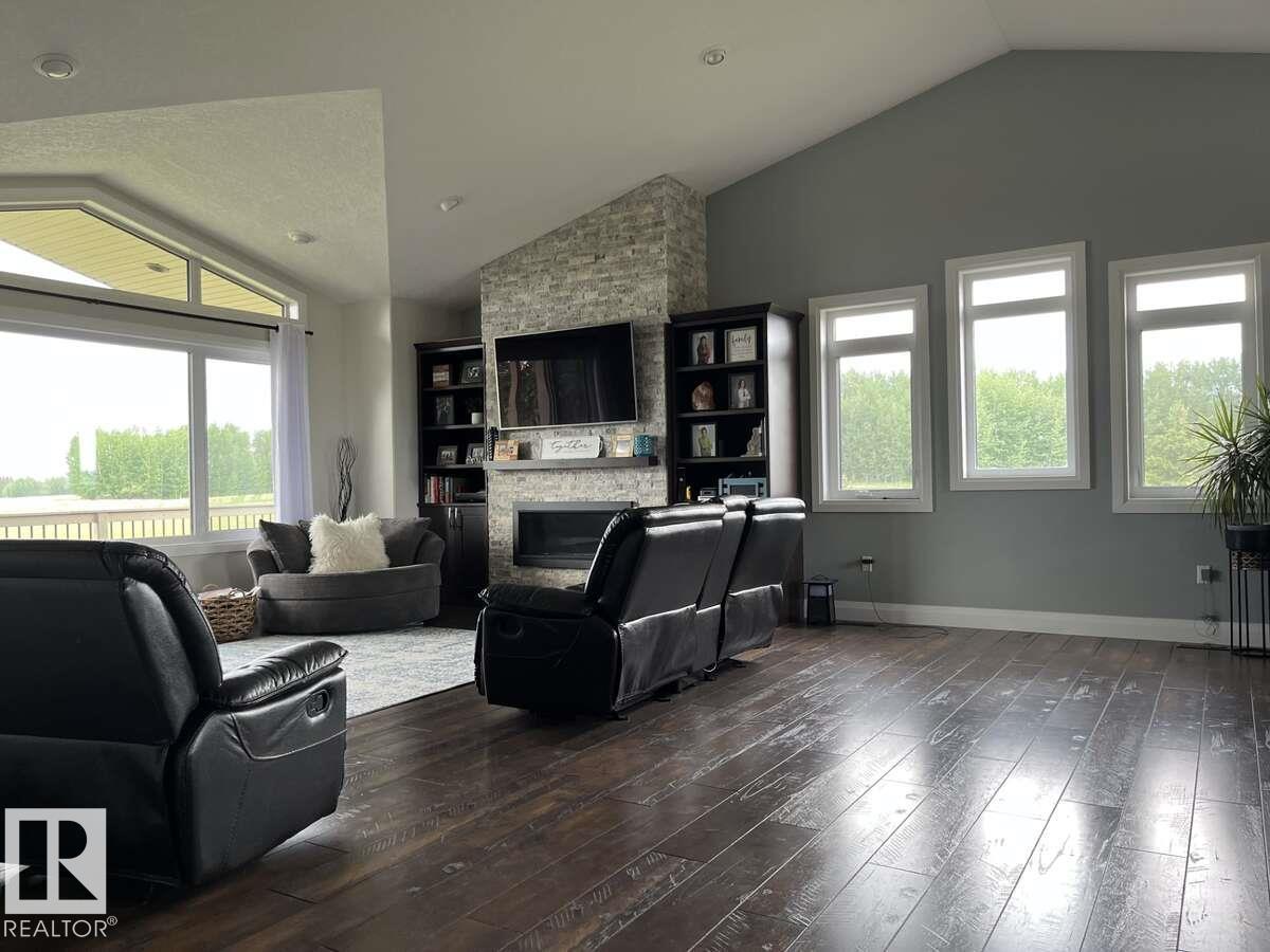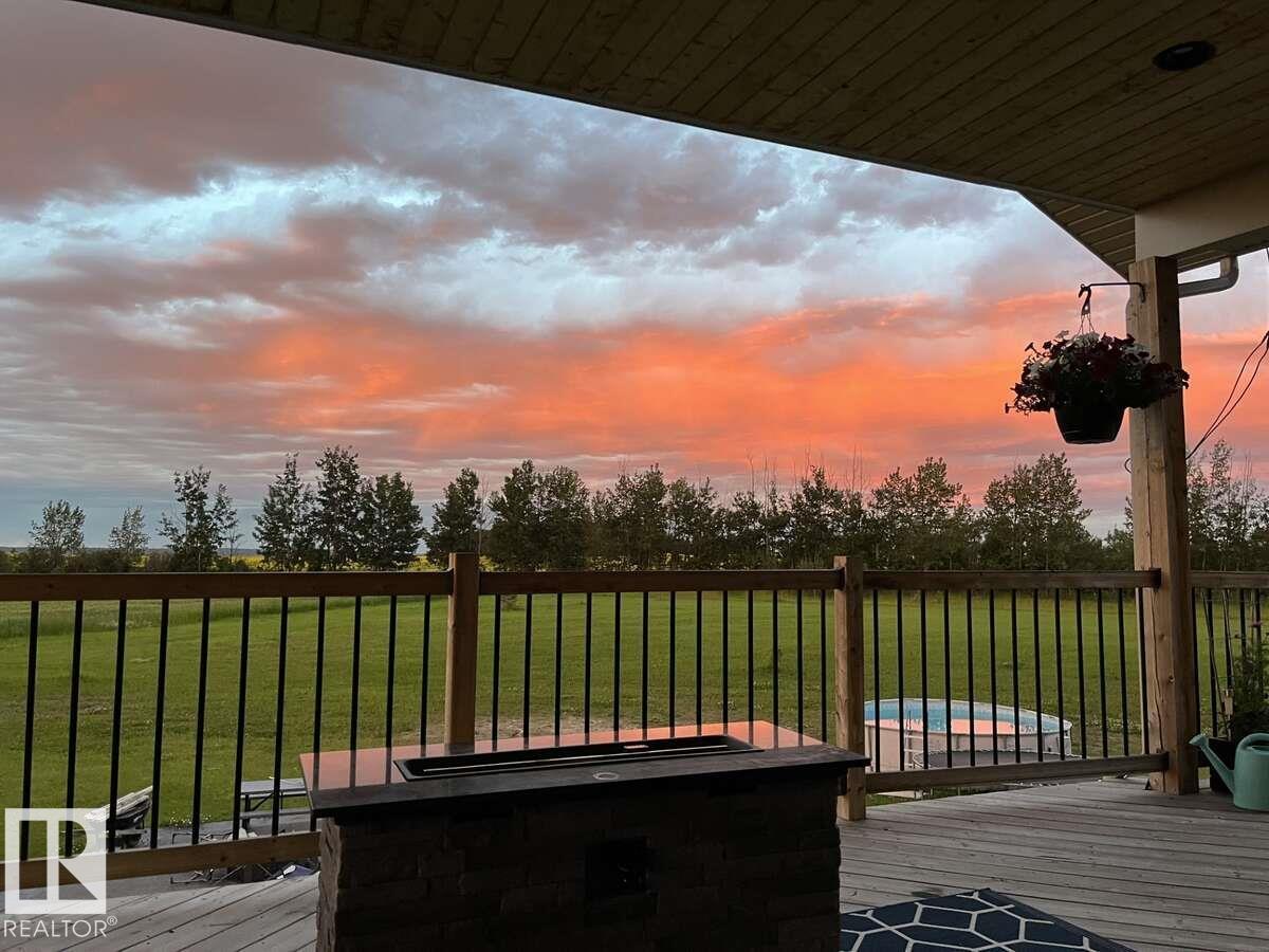 For more info, please click on View Listing on Realtor® Website. This stunning 2,568 square foot bungalow with an attached 1,554 square foot garage, sits on 10 acres and was built in 2016. This home comes with many high end custom finishes such as a double vaulted ceiling in the open concept living room and kitchen; with high end tile, laminate, stone and granite/quartz countertops throughout. The kitchen has a hidden walk in pantry with floor to ceiling shelves, a back entry laundry room comes with custom built lockers for the family, and the office has a custom built in desk and cabinets. The massive master bathroom ensuite has a 6'x5' custom shower with his and hers shower heads plus body sprays; and the main 4 piece bathroom is beautifully finished. A huge back deck with a covered lounge area sits over top of the amazing stamped and exposed aggregate walk out with matching custom firepit area. The attached garage is as big as a 30'x50' shop. (id:63190)