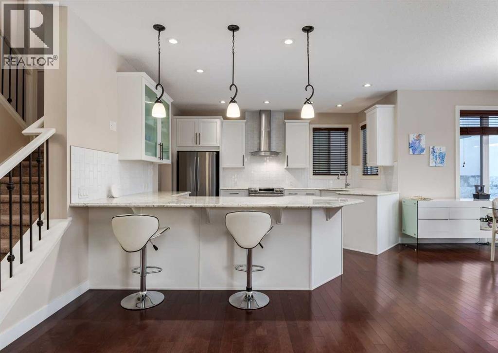 Welcome to this beautifully maintained family residence in Nolan Hill, set on a large lot with a sunny south-facing backyard, walkout basement, greenspace/ravine access, oversized garage, and large windows throughout. Built by Sterling Homes the bright and open main floor showcases hardwood flooring, iron spindle railing, wood blinds, and a thoughtfully designed staircase placement that creates a more open feel. The white modern kitchen is both functional and stylish with granite countertops, a chimney-style hood fan, stainless steel appliances, frosted glass cabinetry, a large peninsula and an exceptional walk-through pantry with full height built-in cabinets complemented by the main floor laundry/mud room with an additional coat/broom closet. A stunning three-sided gas fireplace anchors the living and dining areas overlooking the ravine. The main floor den/office and a powder room complete this level. Upstairs you’ll find vaulted ceilings in the bonus room and primary bedroom, a main bathroom with double sinks, linen closet, and a private primary retreat featuring upgraded sinks and a walk-in shower with built-in seat. 2 more bedrooms are on this level with the second bedroom that features a convenient desk or luggage area. The unspoiled walkout basement is ready for your own custom development. Recent updates include new siding, roof, eavestroughs, downspouts, along with a new hot water tank in 2025. Other features include water softener with built in bypass and deck tiles completing the outdoor space. Located with direct access to the ravine/nearby walking and biking pathways. Nolan Hill offers quick access to Stoney Trail, Deerfoot, Airport and Beacon Hill Shopping Center with Costco and all other amenities. Don't miss this exceptional opportunity—check out the video in the media link and book your private showing today! (id:63190)