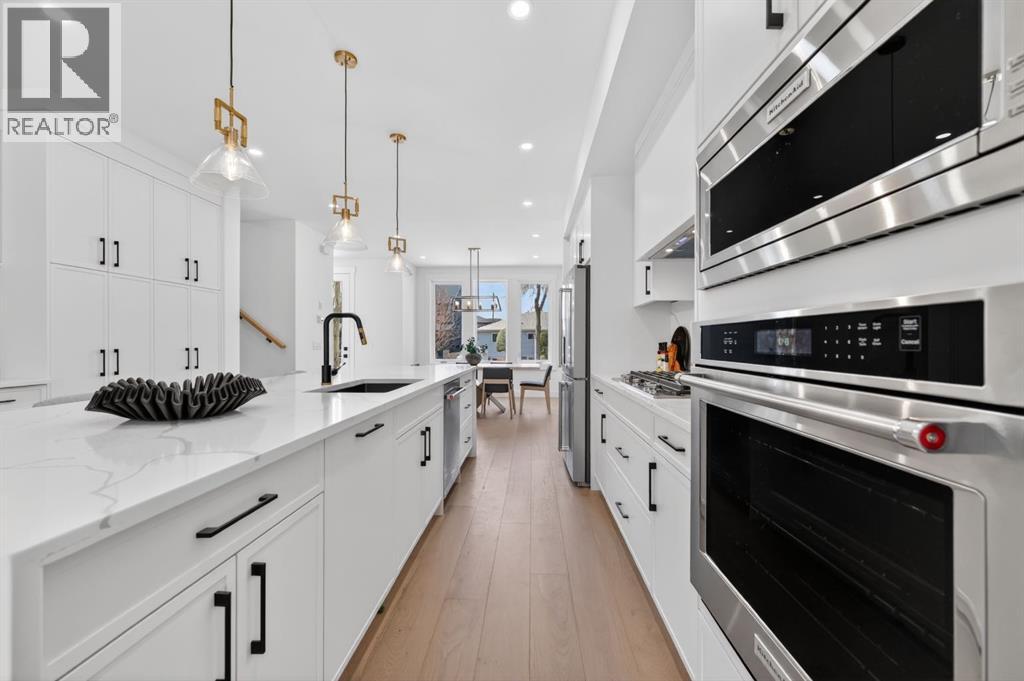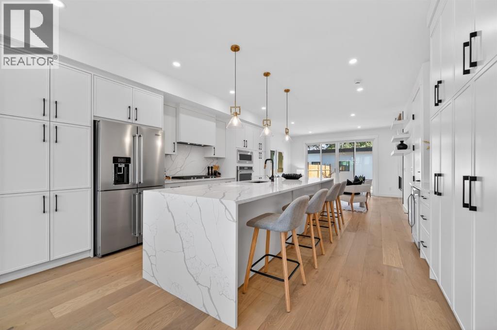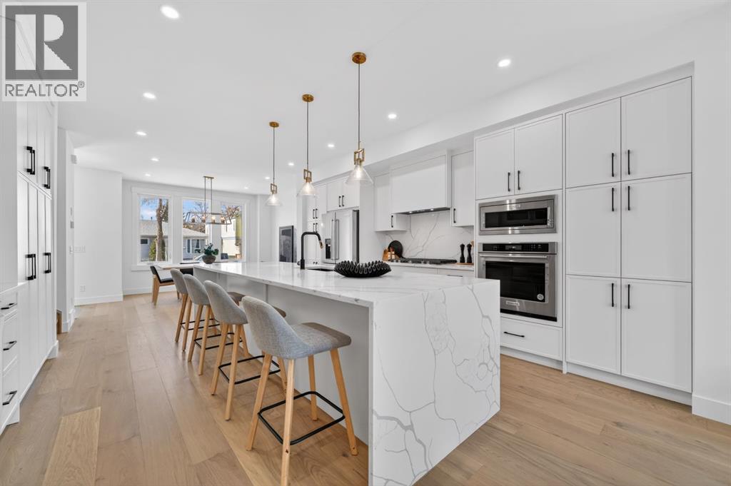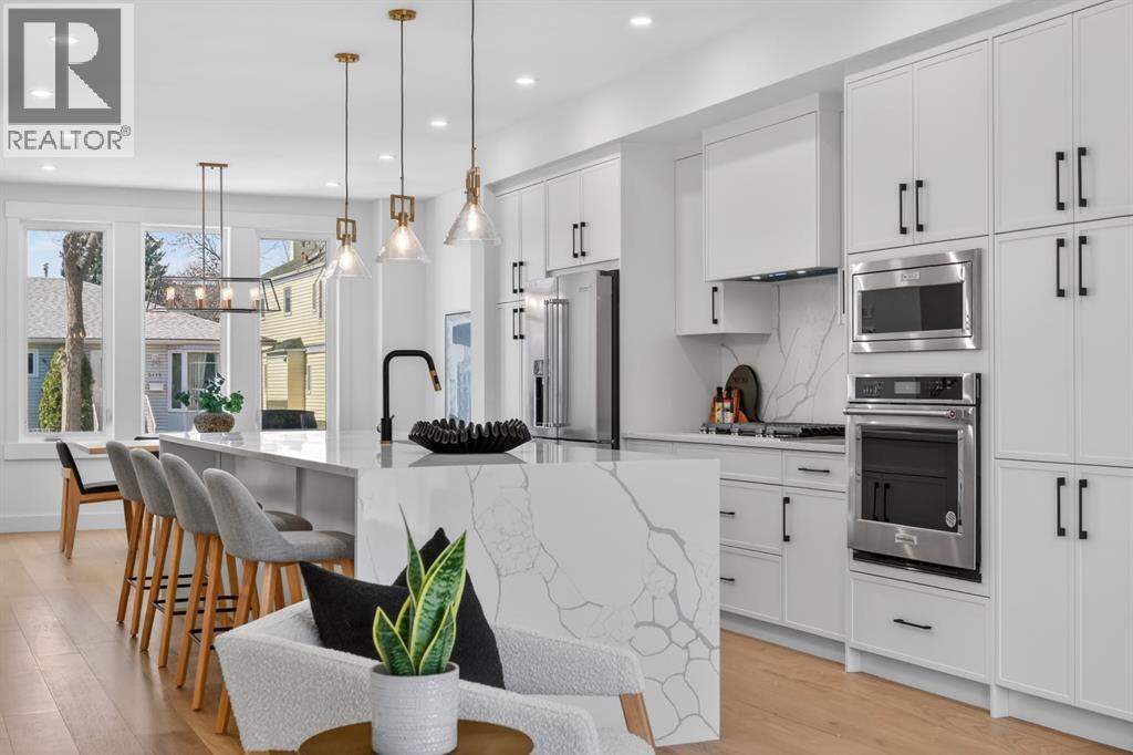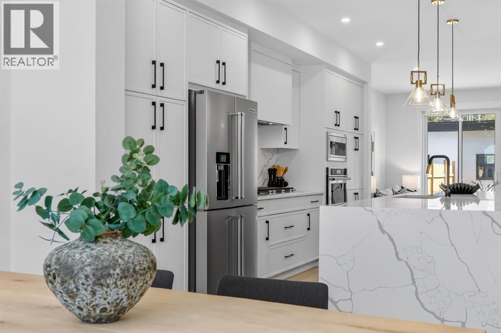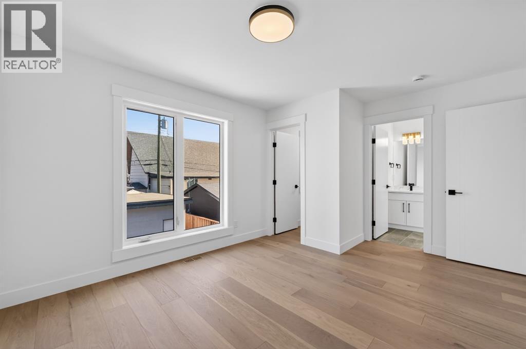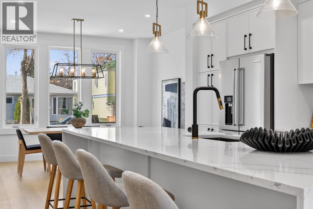 This move-in ready semi-detached home in Mount Pleasant delivers that rare mix of thoughtful design, modern luxury, and everyday comfort. Situated on one of Mount Pleasant’s most beautiful, quiet, tree-lined streets, this immaculate 3-storey offers a total of 3,466 Sq.ft of living space, including a legal basement suite with a separate entrance ! Wide-plank hardwood, custom built-ins, and oversized windows set the tone. The open concept floor-plan throughout the main floor makes the home feel both expansive and incredibly functional. The living room sits at the back with a gorgeous feature fireplace and built-in shelving that brings a clean, designer feel to the space offering double sliding glass doors to the back patio which fill the space with natural light and make indoor & outdoor entertaining a breeze! The dining area sits comfortably at the front featuring large windows open to mature street trees, giving the room a soft, natural backdrop. The kitchen is where everything really comes together. Full-height custom cabinetry, quartz counters, designer lighting, and an upgraded appliance package make the room feel elevated yet approachable. A massive island with seating keeps the space social. The Mudroom includes custom storage and easy access to the backyard and garage, keeping daily life organized. A stylish 2-piece bath completes the main floor. Upstairs, the Bonus Room feels like a true retreat, bright and spacious with room for a full furniture layout. On each side, 2 bedrooms, both with their own en-suite bathrooms, walk-in closets with custom shelves & large windows. A full wet laundry room on this level adds convenience and extra storage. The 3rd floor is entirely dedicated to a massive primary bedroom with access to your west-facing balcony. 5pc ensuite is straight out of a spa! It’s got a soaker tub, two vanities, heated floors, and an oversized glass rainfall shower. The walk-in closet is massive! It’s got tons of drawers and custom shelves, plus a fu ll-body mirror so you can get ready in style. The lower level offers even more flexibility with an extended legal basement suite. With a full kitchen, large family room, 1 bedroom +1-3pc bathroom, laundry & plenty of storage. This level opens the door to multigenerational living, long-term guests, or additional rental income. The layout is practical, the rooms are well-sized, and the finishes are clean & modern. The location ties it all together. You’re in the heart of a walkable, established community surrounded by tree-lined streets. Confederation Park, SAIT, and the downtown core are all within easy reach. Quick access to 4th Street, 16th Ave, Centre St, & major transit routes makes commuting simple, while nearby cafes, local restaurants, playgrounds, and green spaces create that everyday convenience everyone’s looking for. This truly is one of a kind. Don’t miss out on this exceptional Buy, call today for your private tour! (id:63190)