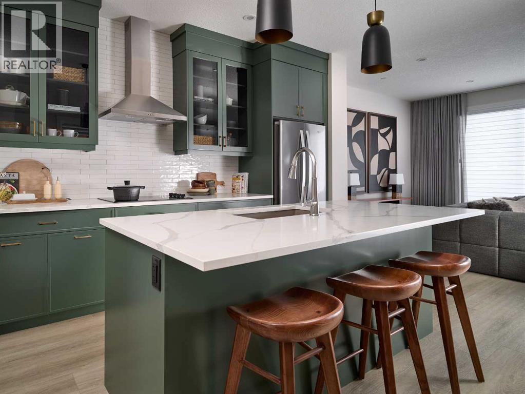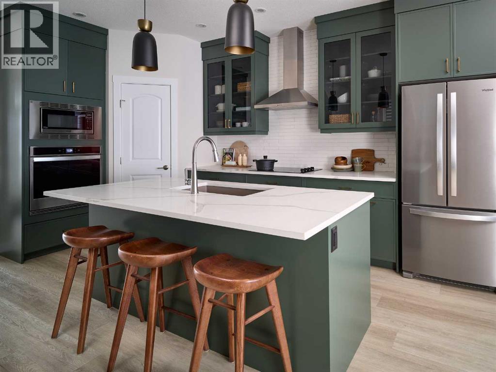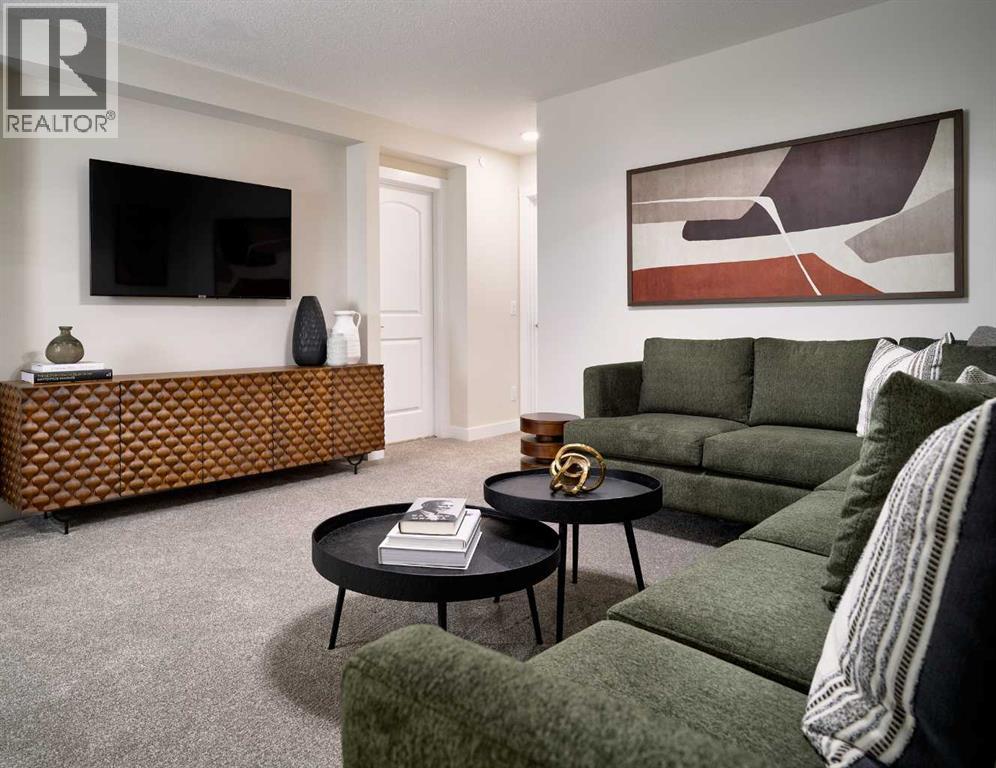 Welcome to the brand-new Carlisle II by Brookfield Residential in the sought-after community of Rockland Park. This thoughtfully designed home offers 3 bedrooms, 2.5 bathrooms, two spacious living areas, and a versatile flex room. At the front of the home, a bright flex space provides the perfect setting for a home office, playroom, or quiet reading area. The main level features a modern open-concept layout, with a central kitchen that overlooks the great room and dining area. The kitchen is equipped with stainless steel appliances, including a chimney-style hood fan and built-in microwave, along with a generous corner pantry for added storage. Upstairs, a large central bonus room creates an ideal separation between the primary suite and the secondary bedrooms, making it a perfect space for a media or family room. The spacious primary retreat includes a walk-in closet and a well-appointed ensuite with a tiled shower. Two additional bedrooms, a full 4-piece bathroom, and a convenient upper-level laundry room complete the second floor. The basement is unfinished but features 9-foot ceilings, offering excellent potential for future development. Additional highlights include a gas line rough-in for a range, a BBQ gas line at the rear of the home, and barn doors for the flex room. The backyard is ready for your personal touch and includes a double parking pad. This brand-new home comes complete with full builder warranty and Alberta New Home Warranty coverage. (id:63190)