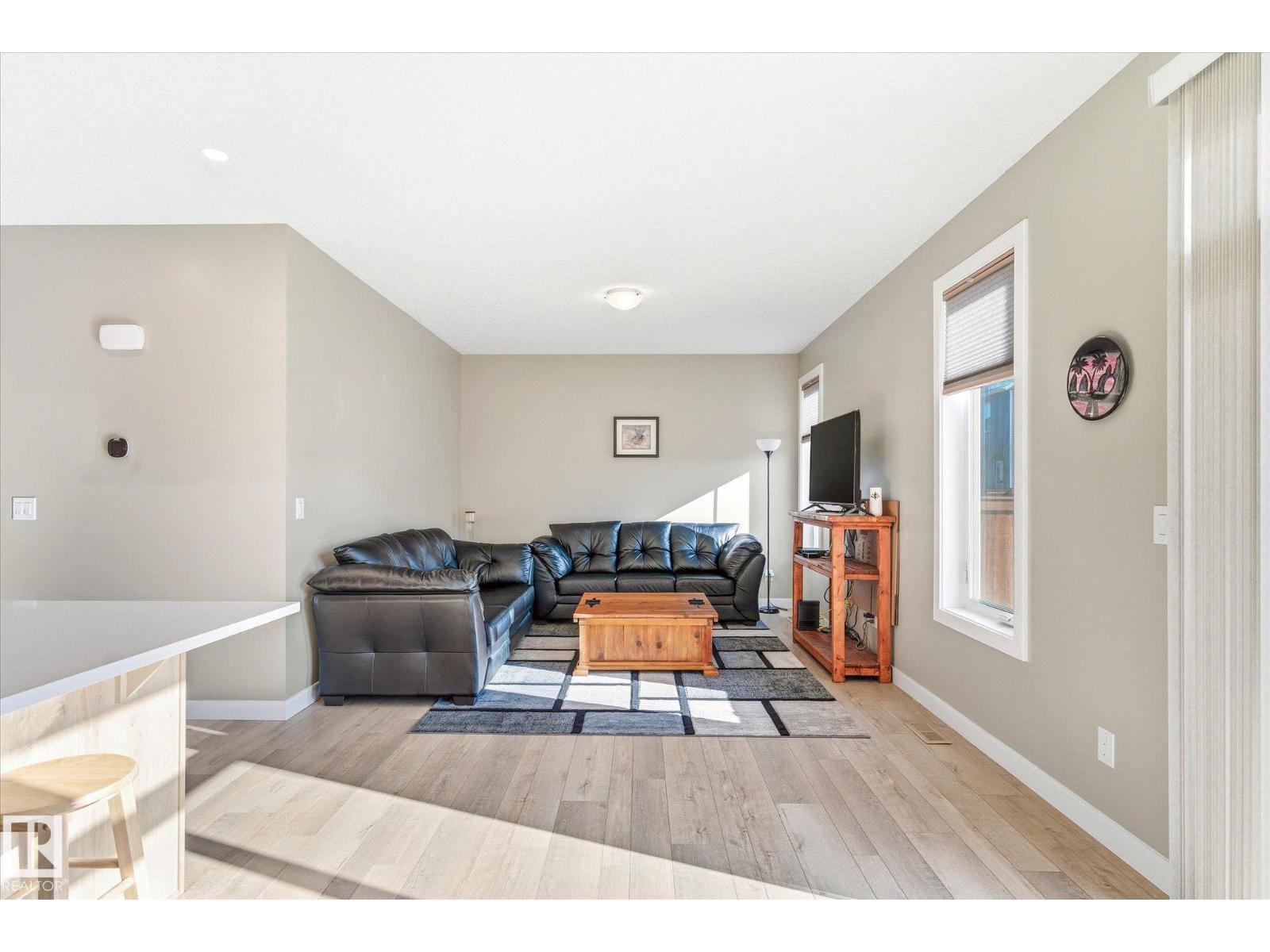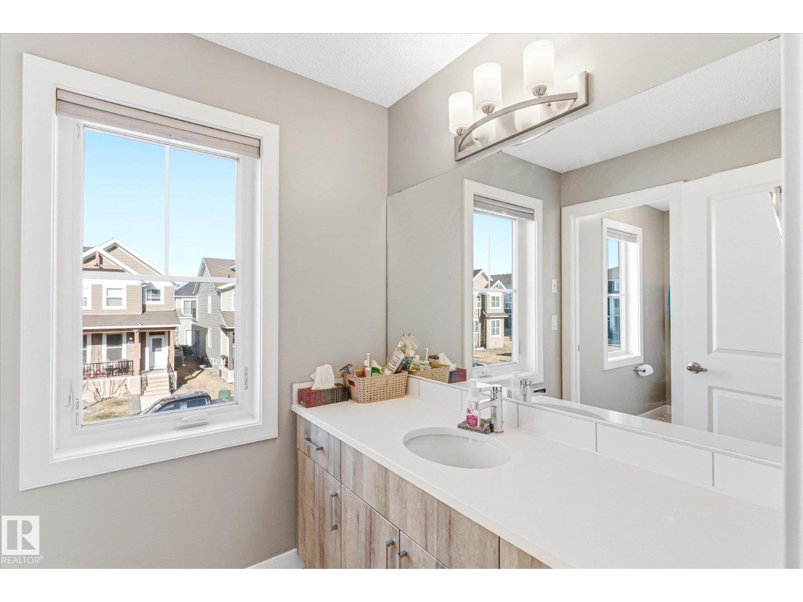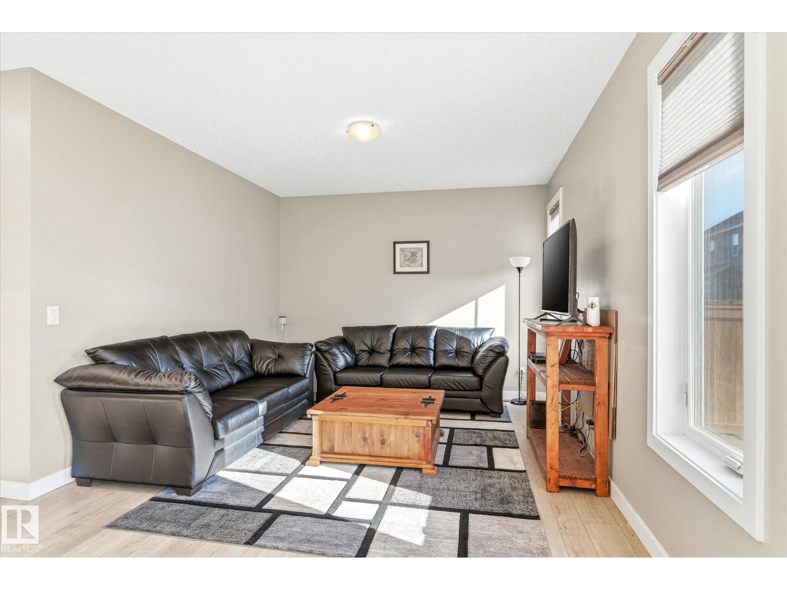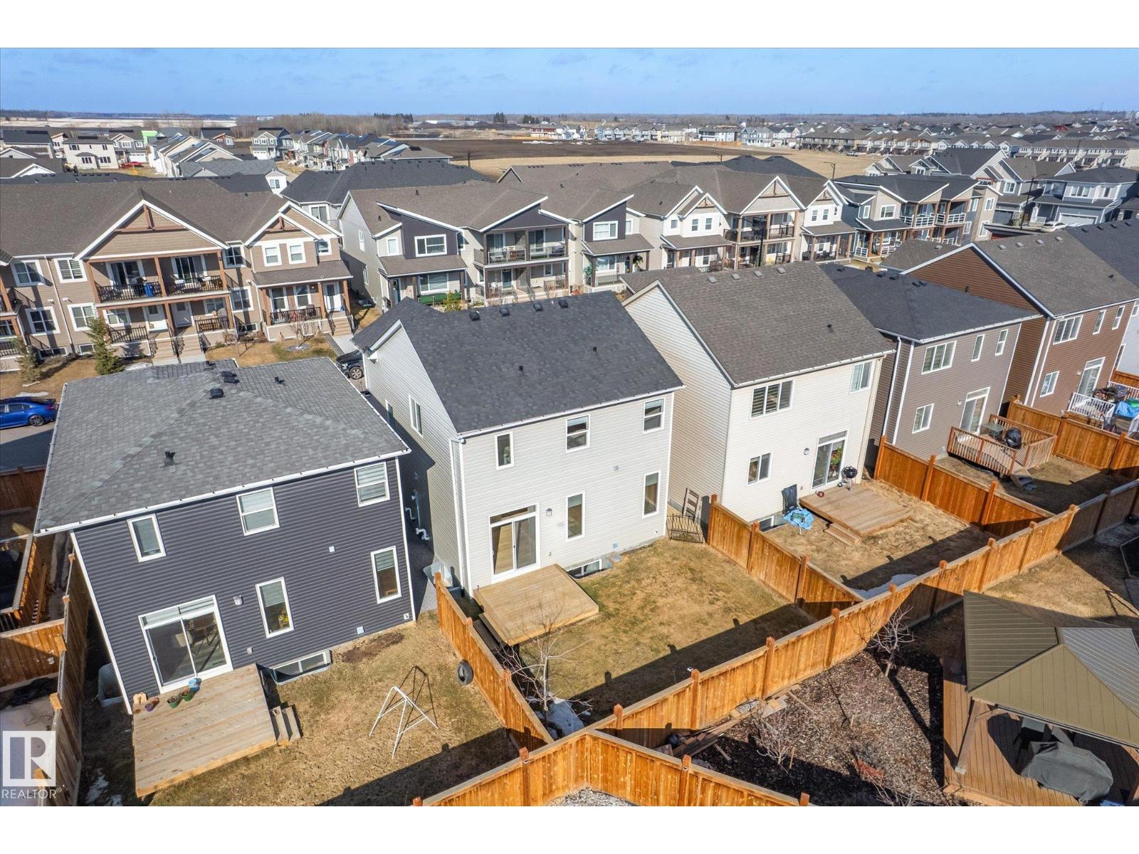 Excellent value and price for a newer detached home with garage and finished basement! Move right in to this turn key low maintenance landscaped and fenced home. 1420 sq ft with 4 bathrooms! The main floor features soaring 9-foot ceilings, luxury vinyl plank flooring, and a gourmet kitchen complete with quartz countertops and stainless steel appliances. The open layout is perfect for entertaining or just for the family to relax in. Upstairs, there is a large main bath with quartz counters plus three generous bedrooms. The expansive main bedroom suite featuring a walk-in closet and ensuite. The upstairs laundry is an added perk. In the basement, you will find a finished space with a rec room and 4th bathroom. Storage space is also an added bonus. Situated on a quiet street, this home is close to a playground, spray park, skating rink, and walking trails. Just a ahort walk to bus stop and easy access to Henday freeway. Exceptional value for a family here! (id:63190)