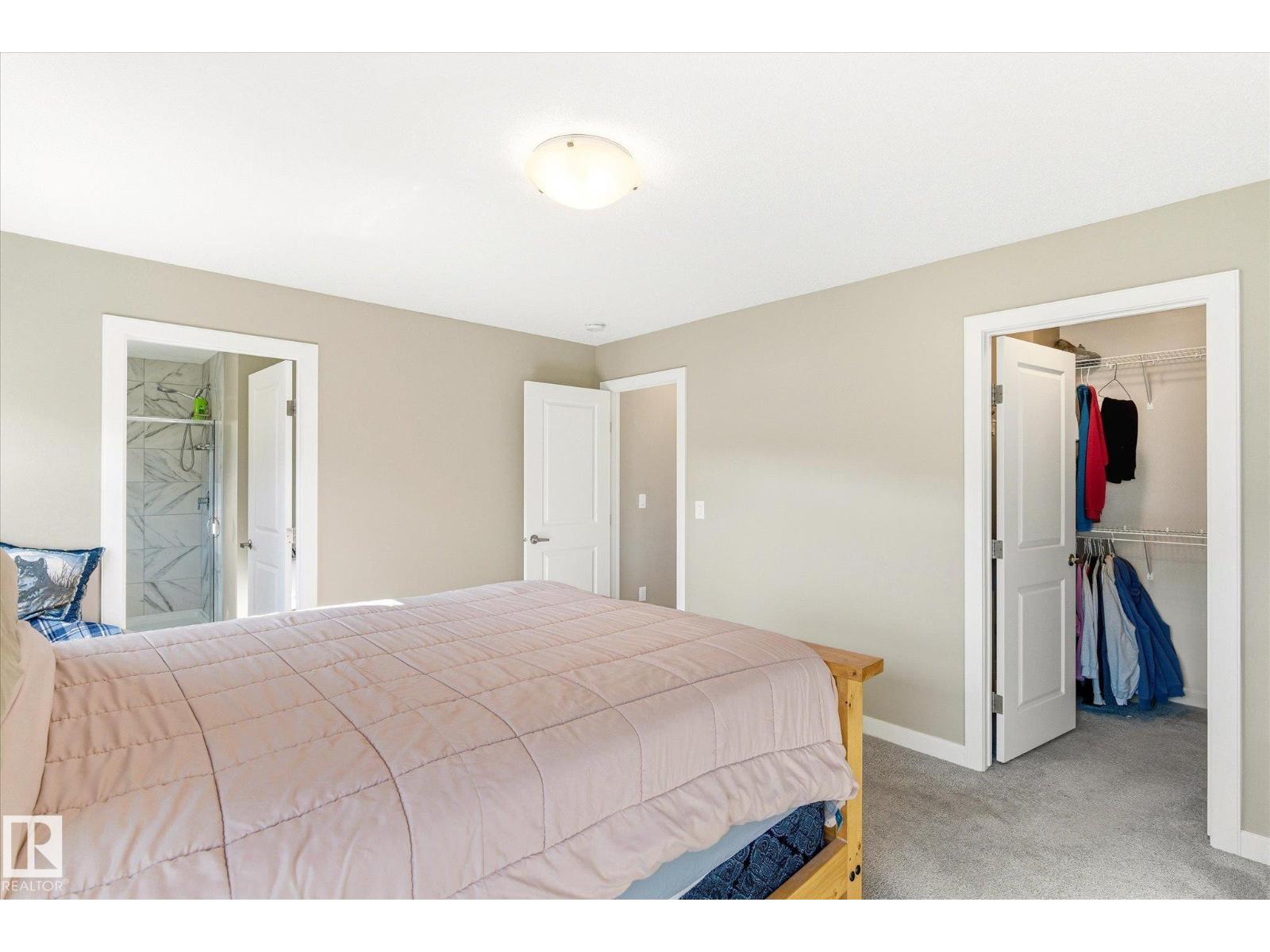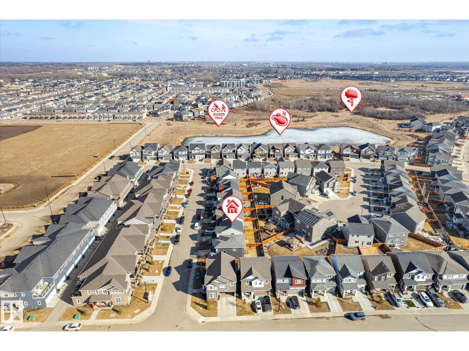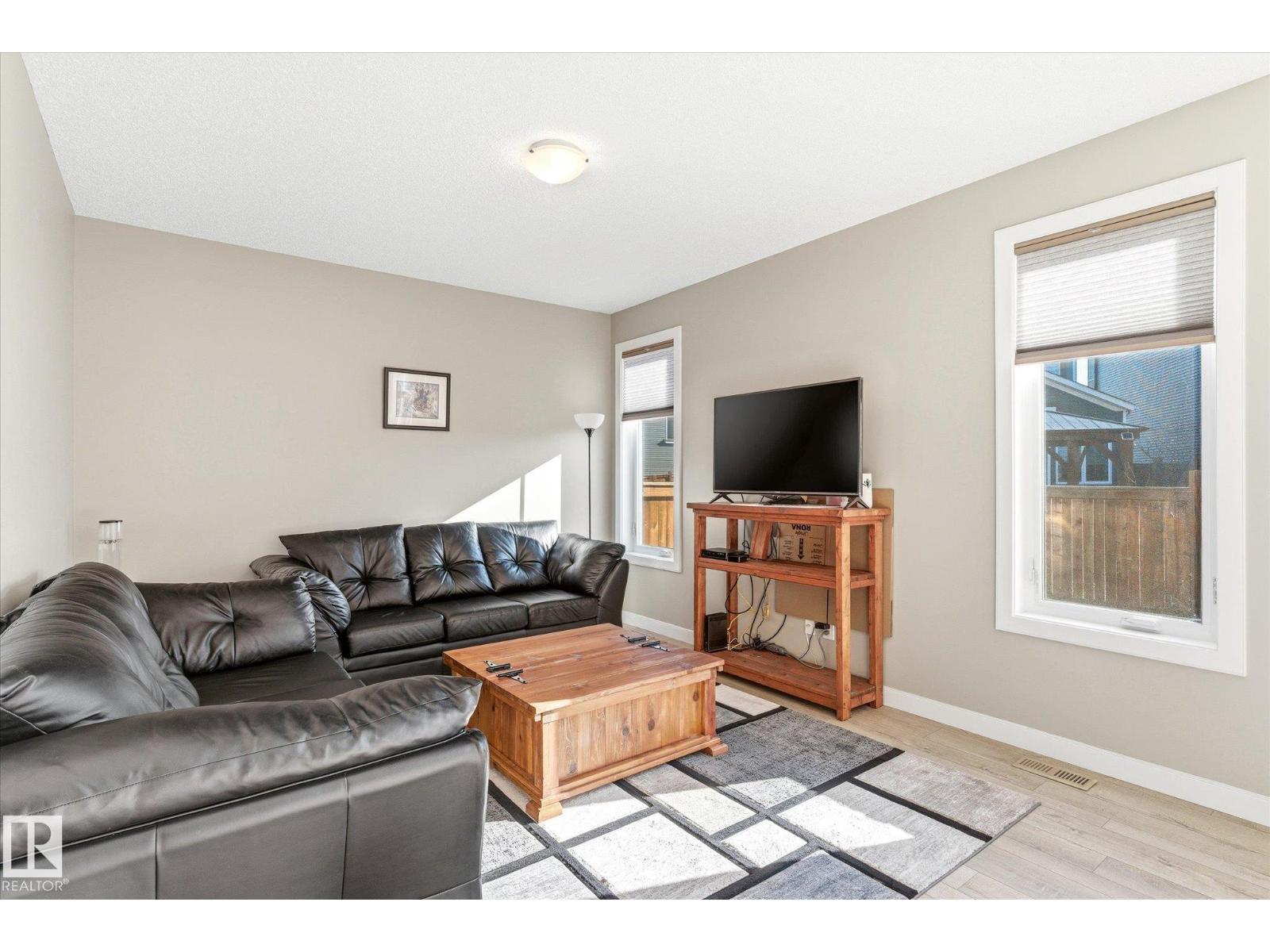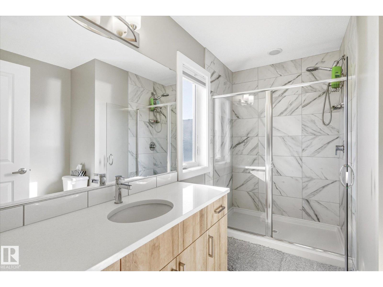 Excellent value and price for a newer detached home with garage and finished basement! Move right in to this turn key low maintenance landscaped and fenced home. 1420 sq ft with 4 bathrooms! The main floor features soaring 9-foot ceilings, luxury vinyl plank flooring, and a gourmet kitchen complete with quartz countertops and stainless steel appliances. The open layout is perfect for entertaining or just for the family to relax in. Upstairs, there is a large main bath with quartz counters plus three generous bedrooms. The expansive main bedroom suite featuring a walk-in closet and ensuite. The upstairs laundry is an added perk. In the basement, you will find a finished space with a rec room and 4th bathroom. Storage space is also an added bonus. Situated on a quiet street, this home is close to a playground, spray park, skating rink, and walking trails. Just a ahort walk to bus stop and easy access to Henday freeway. Exceptional value for a family here! (id:63190)