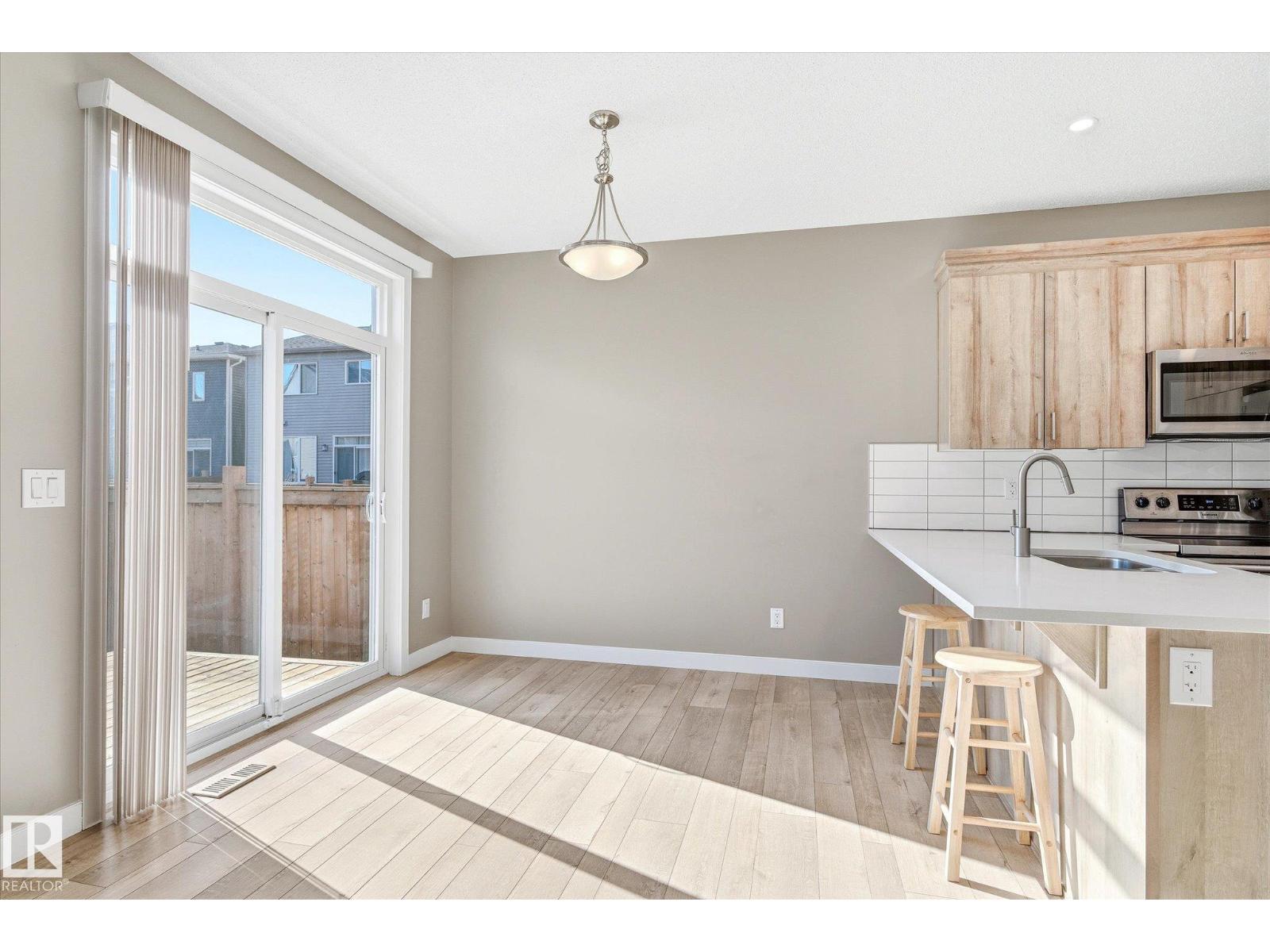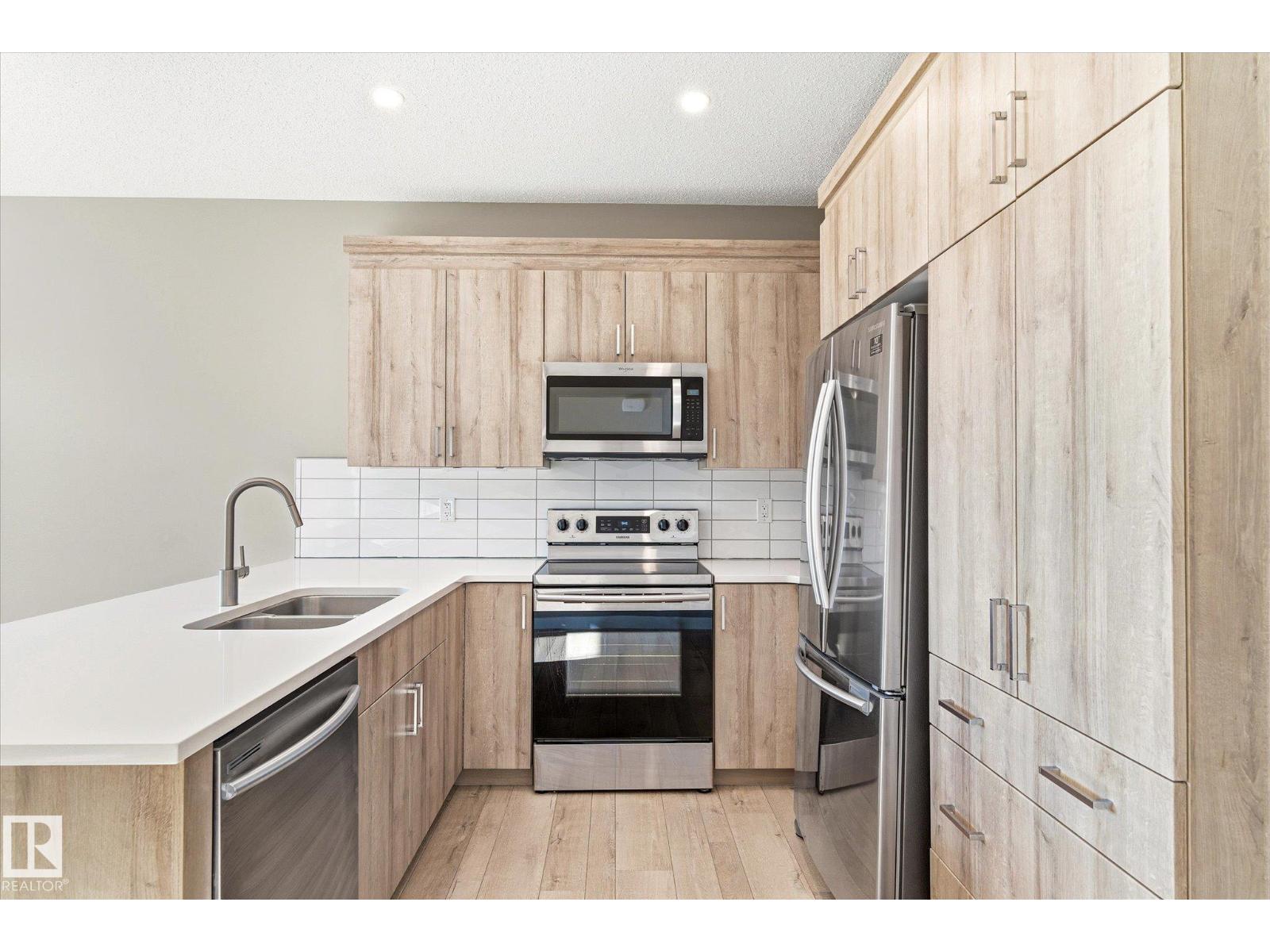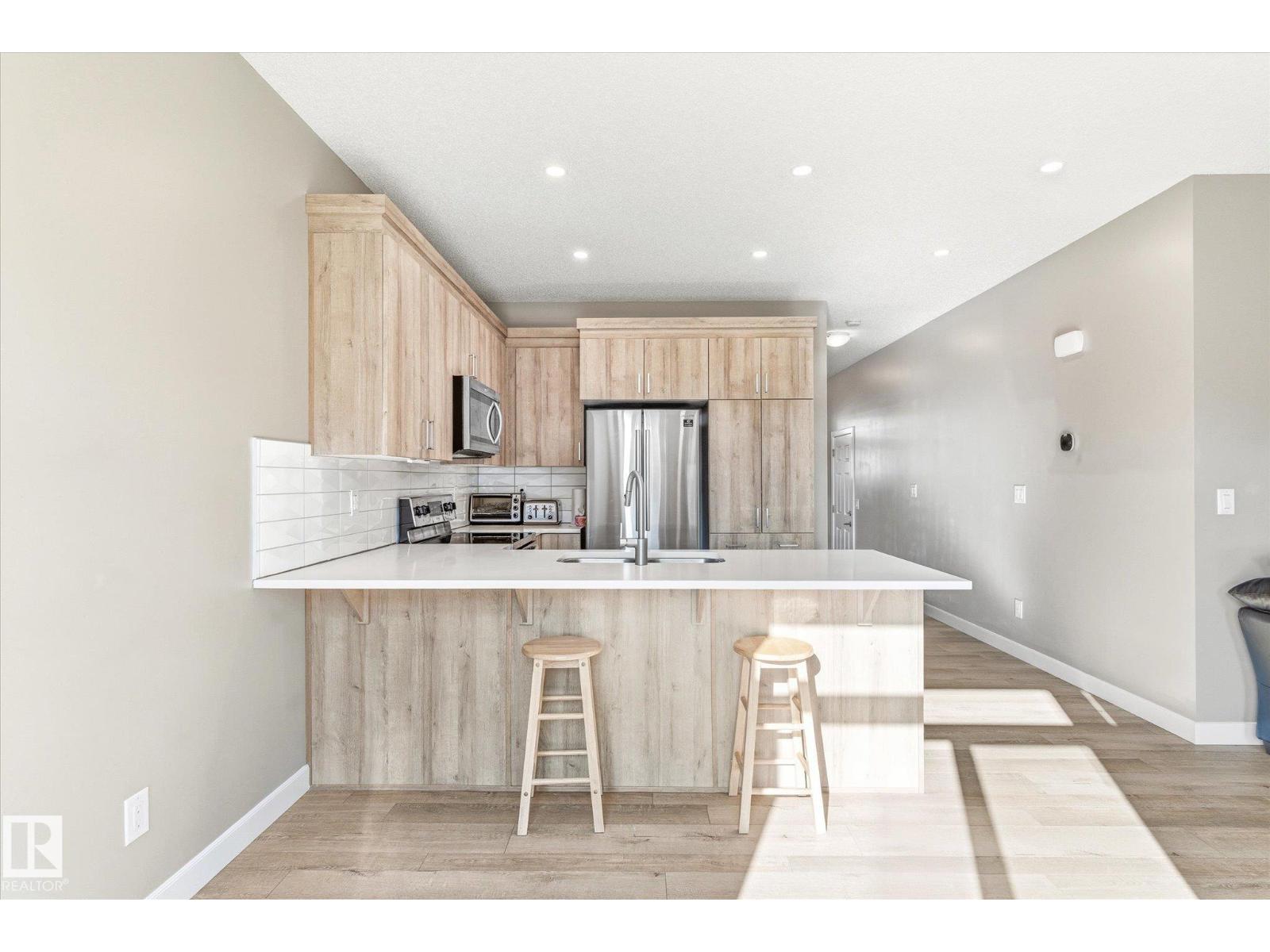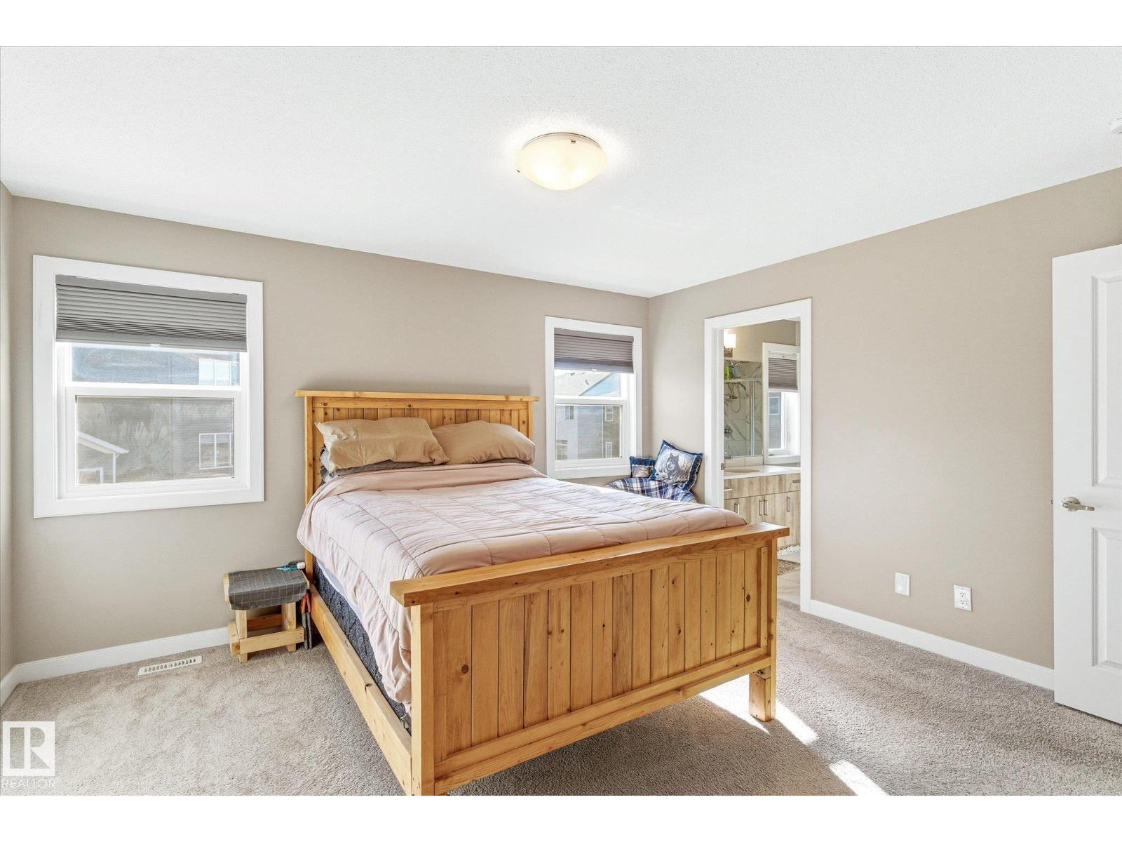 Excellent value and price for a newer detached home with garage and finished basement! Move right in to this turn key low maintenance landscaped and fenced home. 1420 sq ft with 4 bathrooms! The main floor features soaring 9-foot ceilings, luxury vinyl plank flooring, and a gourmet kitchen complete with quartz countertops and stainless steel appliances. The open layout is perfect for entertaining or just for the family to relax in. Upstairs, there is a large main bath with quartz counters plus three generous bedrooms. The expansive main bedroom suite featuring a walk-in closet and ensuite. The upstairs laundry is an added perk. In the basement, you will find a finished space with a rec room and 4th bathroom. Storage space is also an added bonus. Situated on a quiet street, this home is close to a playground, spray park, skating rink, and walking trails. Just a ahort walk to bus stop and easy access to Henday freeway. Exceptional value for a family here! (id:63190)