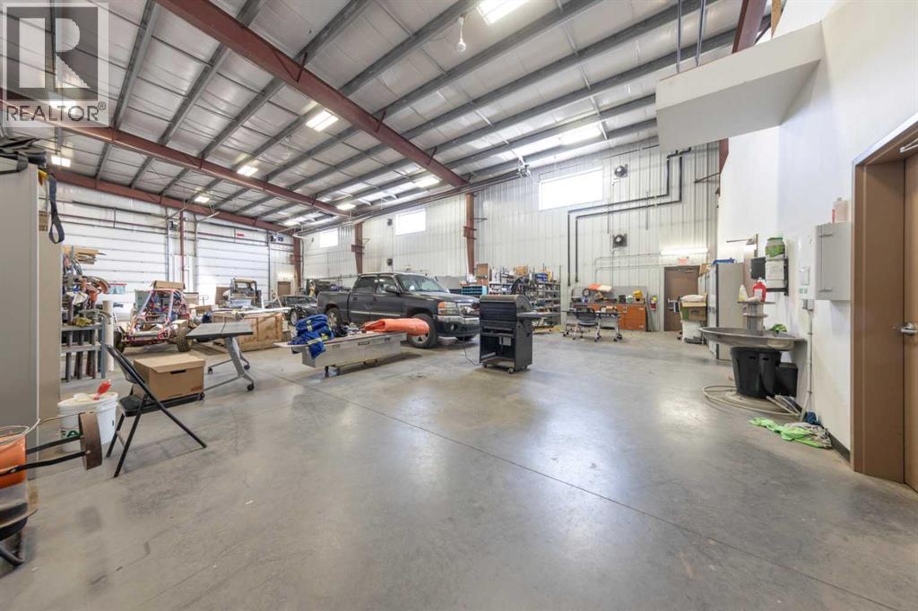 Built in 2013, this steel-frame industrial building offers 6,000 sq. ft. of flexible space for lease. The property features a bright office area with multiple offices, a lunchroom, a boardroom, and a mezzanine for extra storage or workspace. Two 16’ x 14’ overhead doors provide convenient access for large vehicles and equipment. This setup is ideal for companies looking for a combination of office and shop space with modern construction and functional design. This peropty is also avaialble for purchase. (id:63190)
