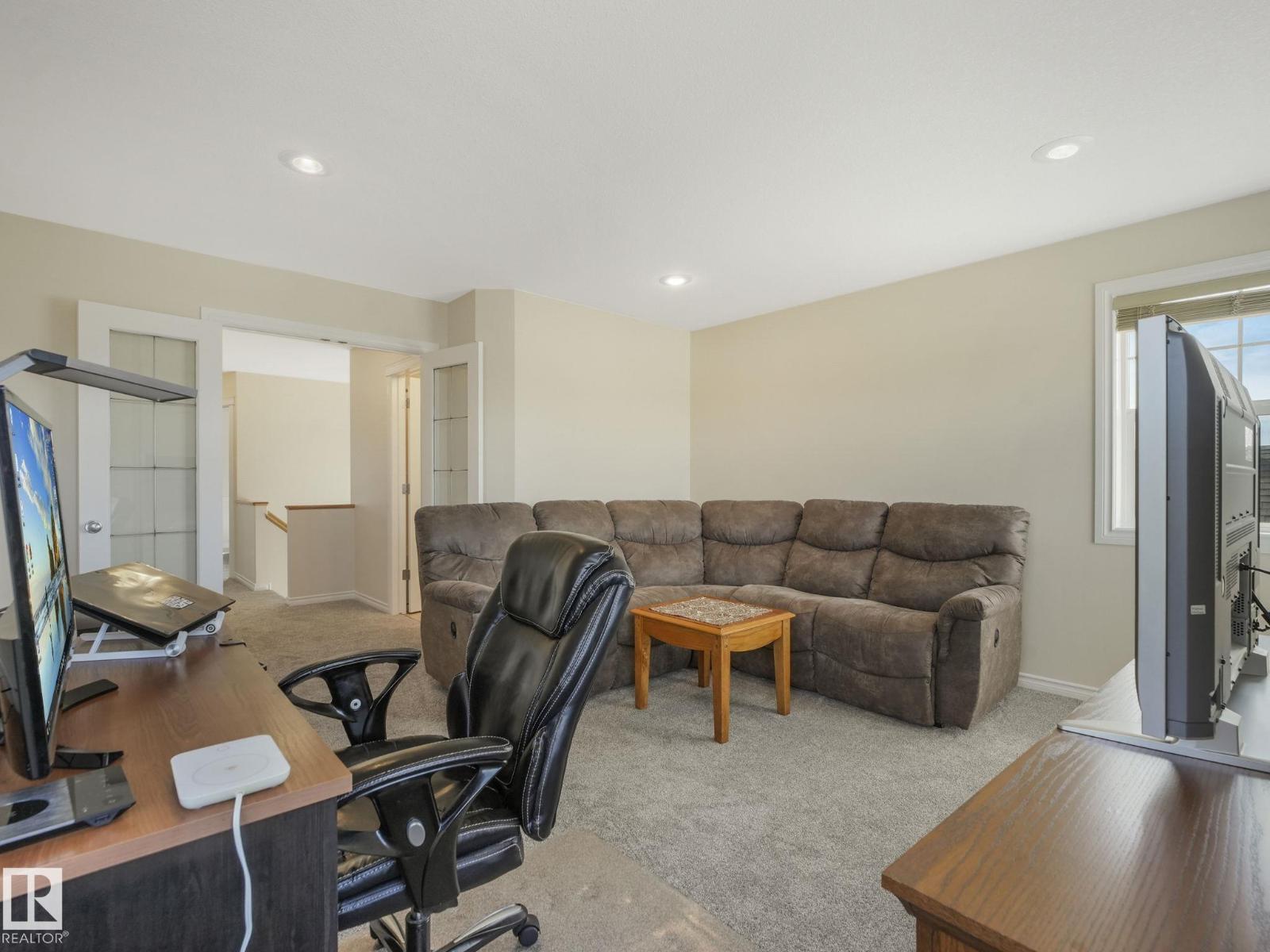 Rarely does an opportunity arise to own an original-owner home in the prestigious community of The Ridge. Impeccably maintained and offered for the first time, this 2,700 Sq-ft of living space, 2-story home features 4 bedrooms, 3.5 baths, and a fully finished basement. The main floor is bathed in natural light and anchored by a cozy gas fireplace surrounded by beautiful built-in shelving. The second level boasts a large, versatile bonus room perfect for family nights. Situated on a 427 m2 lot, the property offers a sunny, south-facing backyard accessed through the bumped-out dining area. The kitchen is a chef’s delight with a gas range and ample prep space. Move-in ready with fresh paint and brand-new carpet (2026), plus major updates including a high-efficiency furnace (2020) and hot water tank (2023). Complete with a double attached garage, this home blends pride of ownership with modern upgrades in one of Sherwood Park’s finest neighbourhoods. An absolute must-see! (id:63190)