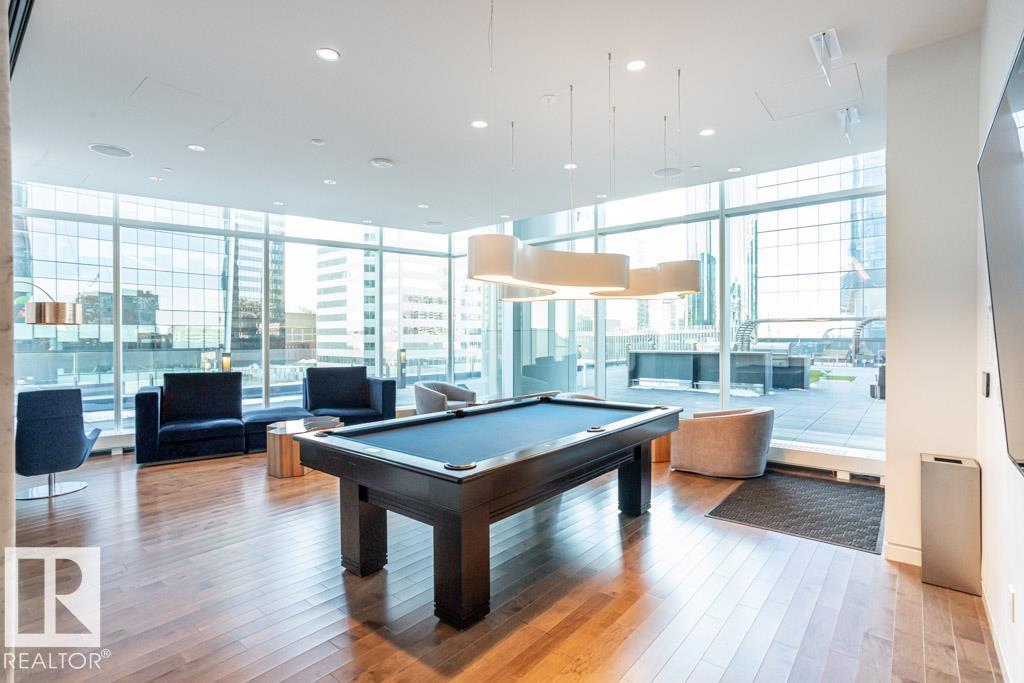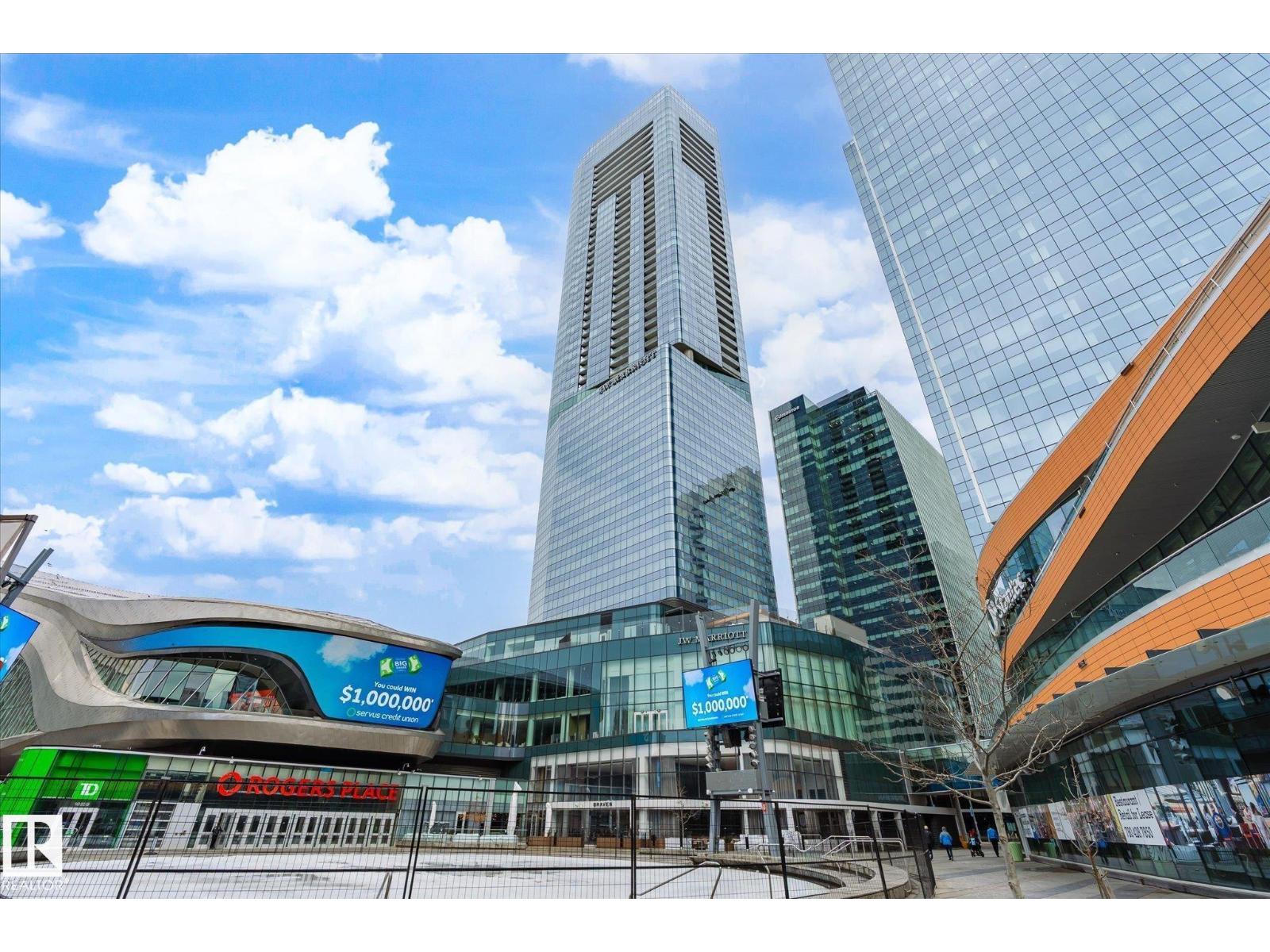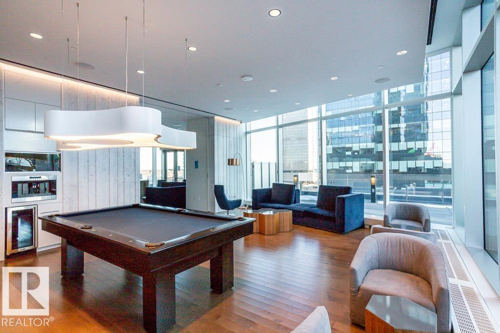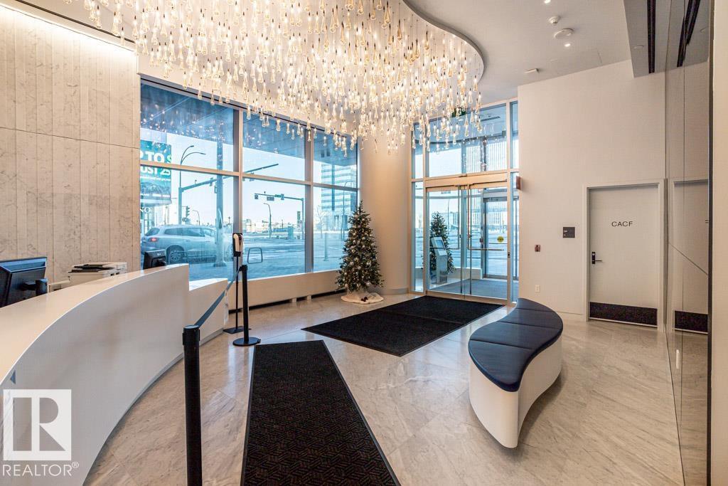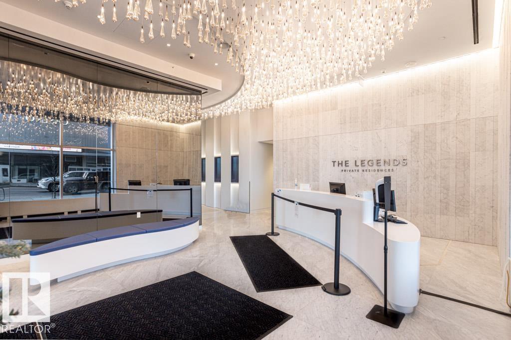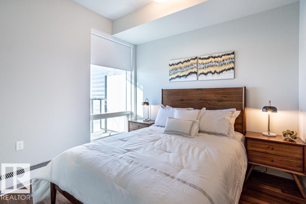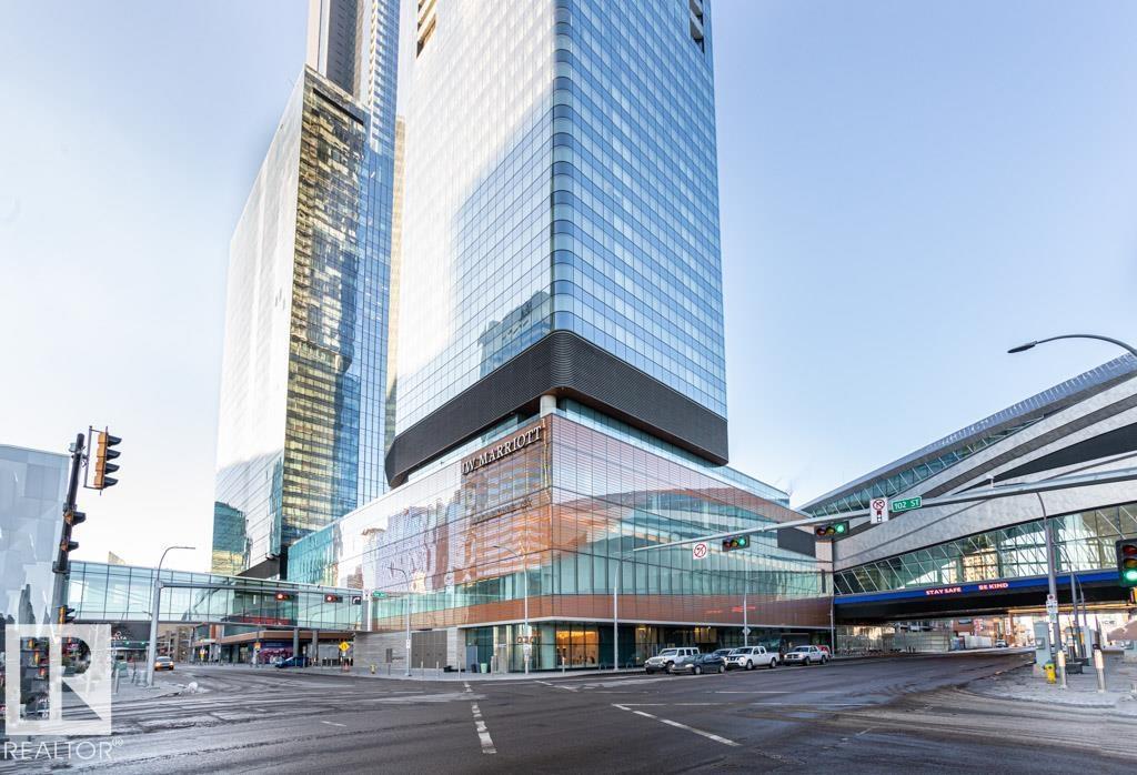 Experience elevated living at The Legends Private Residences atop the JW Marriott Hotel in Edmonton's vibrant ICE District. This 1 bedroom, 1 bathroom unit offers a thoughtfully designed space on the 25th floor with amazing views. Step into an open-concept layout featuring high ceilings, engineered hardwood floors, floor-to-ceiling windows, and premium finishes throughout. The kitchen is equipped with stainless steel appliances, quartz countertops, and chic cabinetry. The bedroom connects to a spa-like 4-piece bathroom. Enjoy in-suite laundry and a private balcony. Building amenities include, indoor pool, rooftop patio, owner's lounge, BBQ area, and 24/7 concierge. Access Rogers Place, City Centre, and LRT via the Pedway. Includes one titled underground parking stall. Can be sold fully furnished. (id:63190)