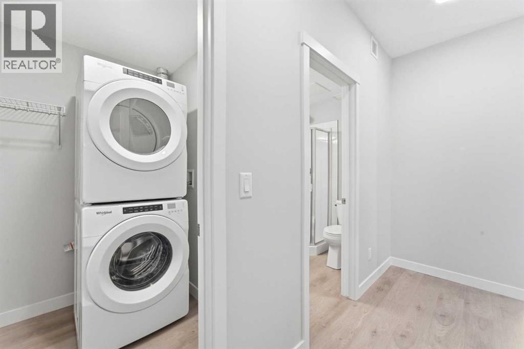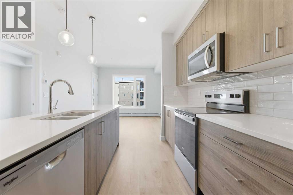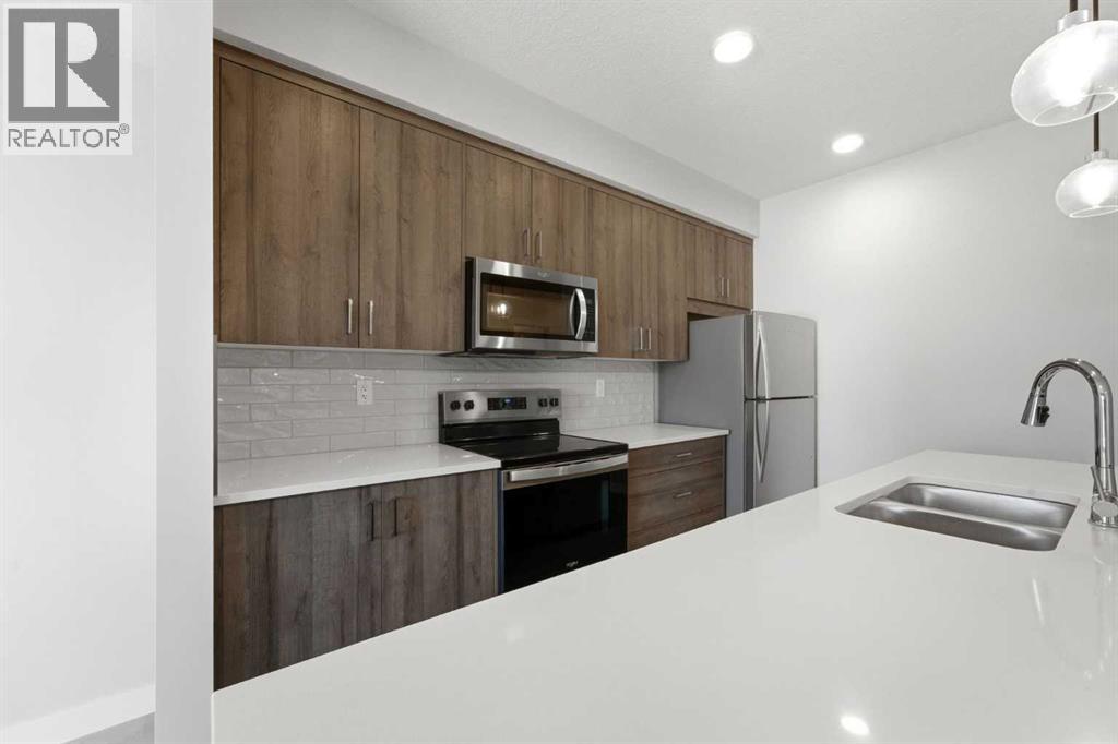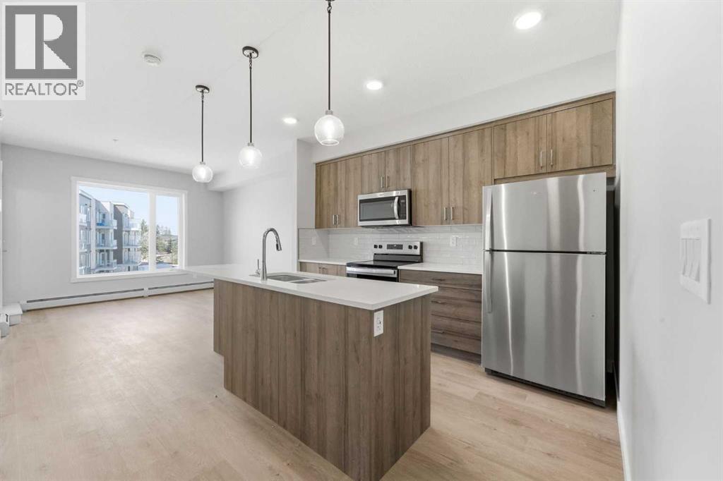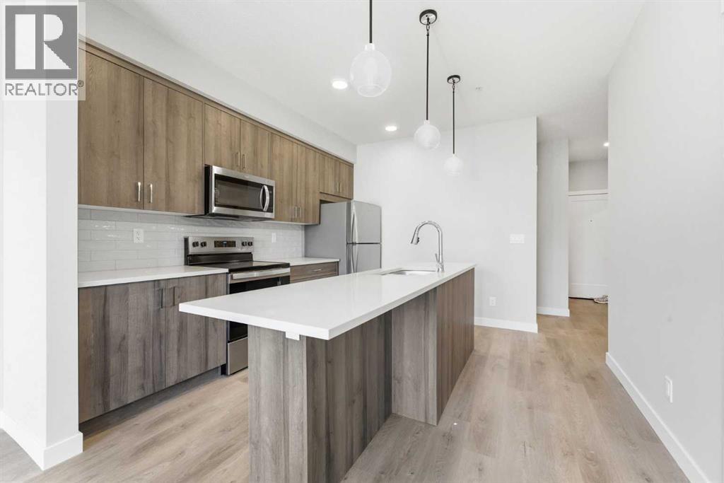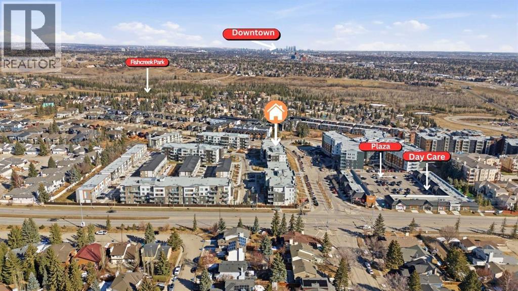 Welcome to this stunning brand-new 2-bedroom, 2-bathroom condo in the highly desirable Fish Creek Exchange community in Shawnee Slopes. Built in 2025, this thoughtfully designed unit offers approximately 742 sq ft (builder size) of modern living space, perfect for first-time buyers, investors, or downsizers.Step inside to discover high ceilings, luxury vinyl plank flooring, and a bright open concept layout that maximizes space and natural light. The contemporary kitchen is beautifully finished with quartz countertops, full-height cabinetry, and stainless steel appliances, making it both stylish and functional.The living area seamlessly extends to a private west-facing balcony, ideal for enjoying evening sunsets, morning coffee, or relaxing outdoors. The primary bedroom features a well-appointed layout, complemented by a second bedroom perfect for guests, family, or a home office.This unit also includes titled underground parking and a secure titled storage locker, offering added convenience and value.Located just steps from the Fish Creek–Lacombe LRT Station and minutes from Fish Creek Provincial Park, you’ll enjoy unmatched access to transit, nature, walking trails, shopping, and everyday amenities.Experience the perfect blend of modern living, convenience, and location in one of Calgary’s most sought-after communities. (id:63190)