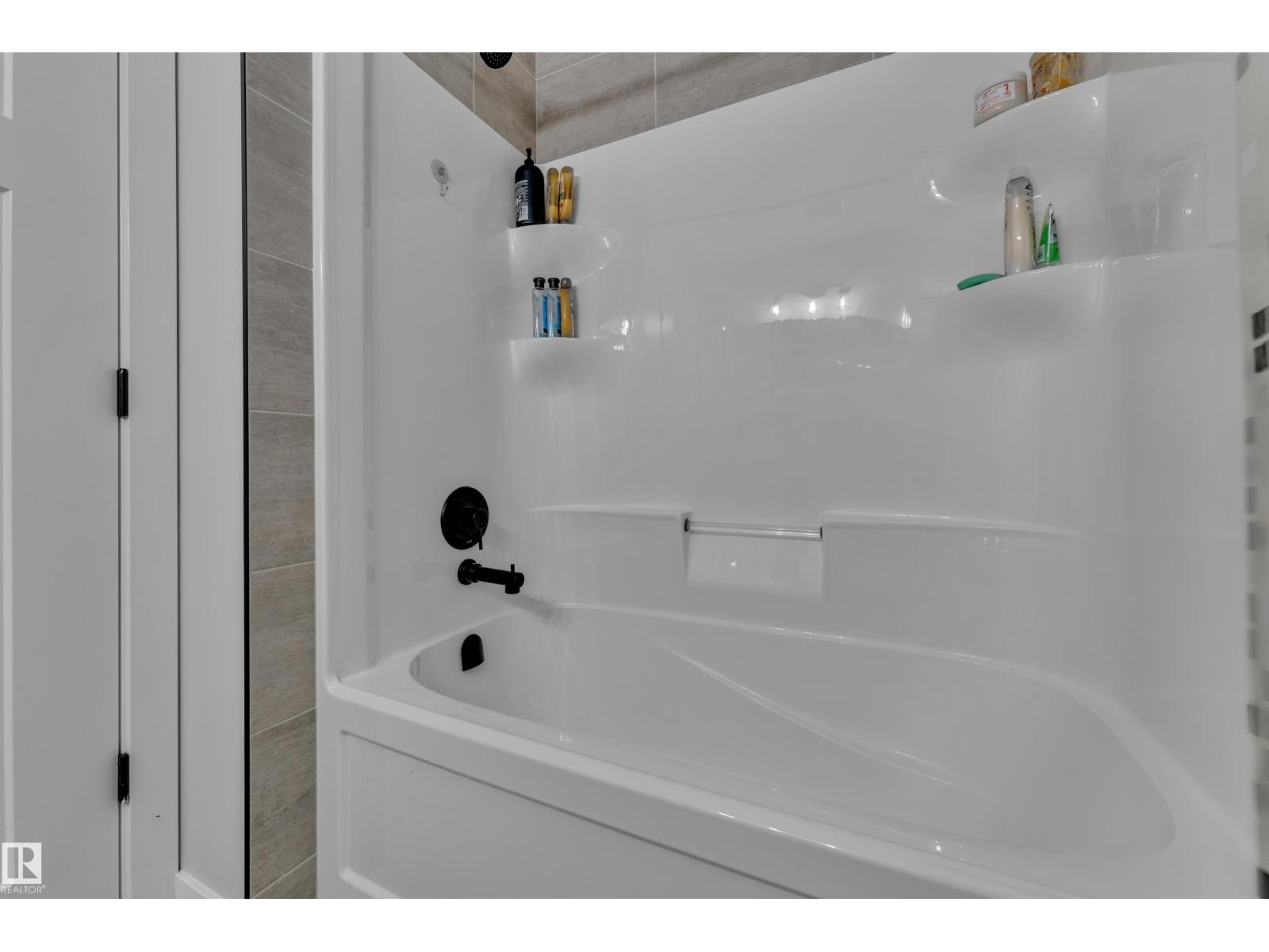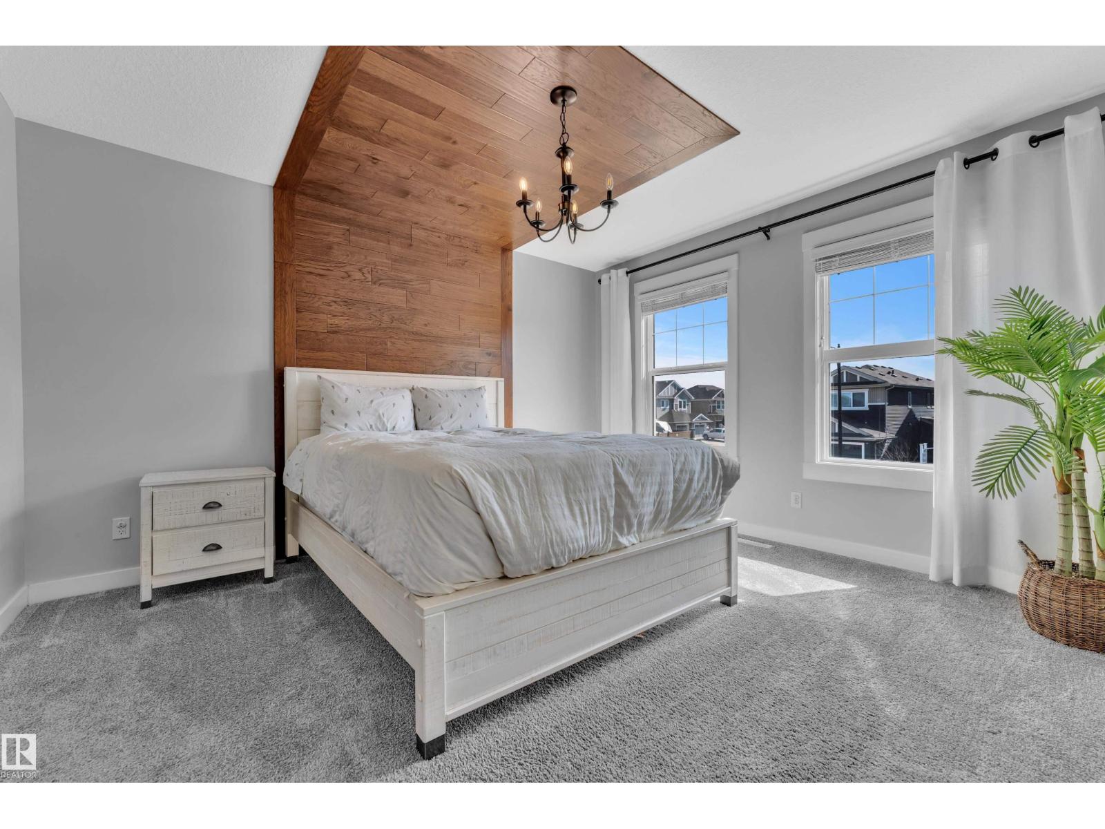 Welcome to this move-in ready City Homes–built duplex that checks all the boxes! This upgraded former show home offers 3 bedrooms, 2.5 baths, and an open-concept main floor with 9-ft ceilings. The spacious kitchen features upgraded cabinets with crown moldings, corner pantry, peninsula island with extended eating bar, pot & pan drawers, gourmet range, chimney hood fan, farmhouse sink, custom tile, and stainless steel appliances. Hardwood & tile flooring throughout the main, plus a rear mudroom and 2-pc bath. The bright great room overlooks the landscaped yard. Upstairs offers 3 spacious bedrooms, a 4-pc bath, and convenient laundry. The primary suite includes a walk-in closet and 4-pc ensuite. Fully finished basement with 4th bedroom, large rec room, and storage. Includes custom blinds and central A/C. Close to parks, trails, and a new school under construction—perfect family community with growing amenities! (id:63190)