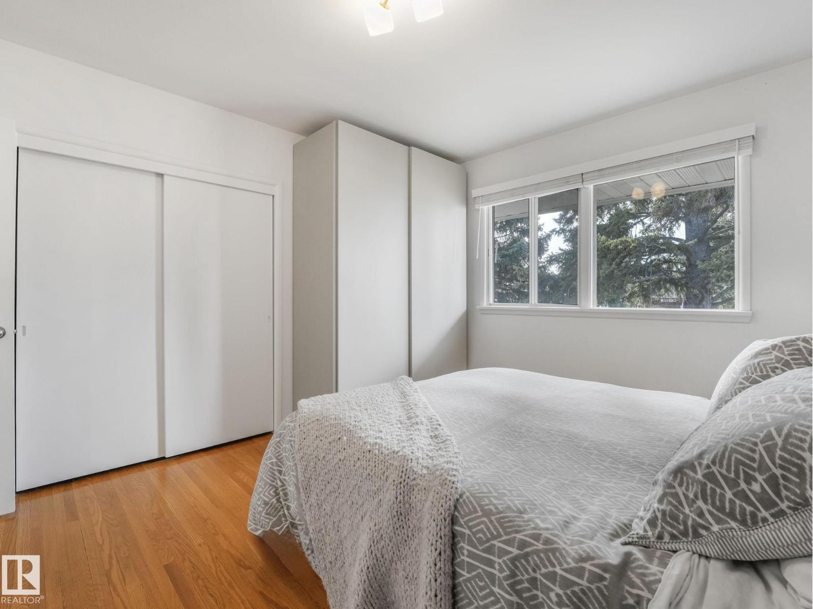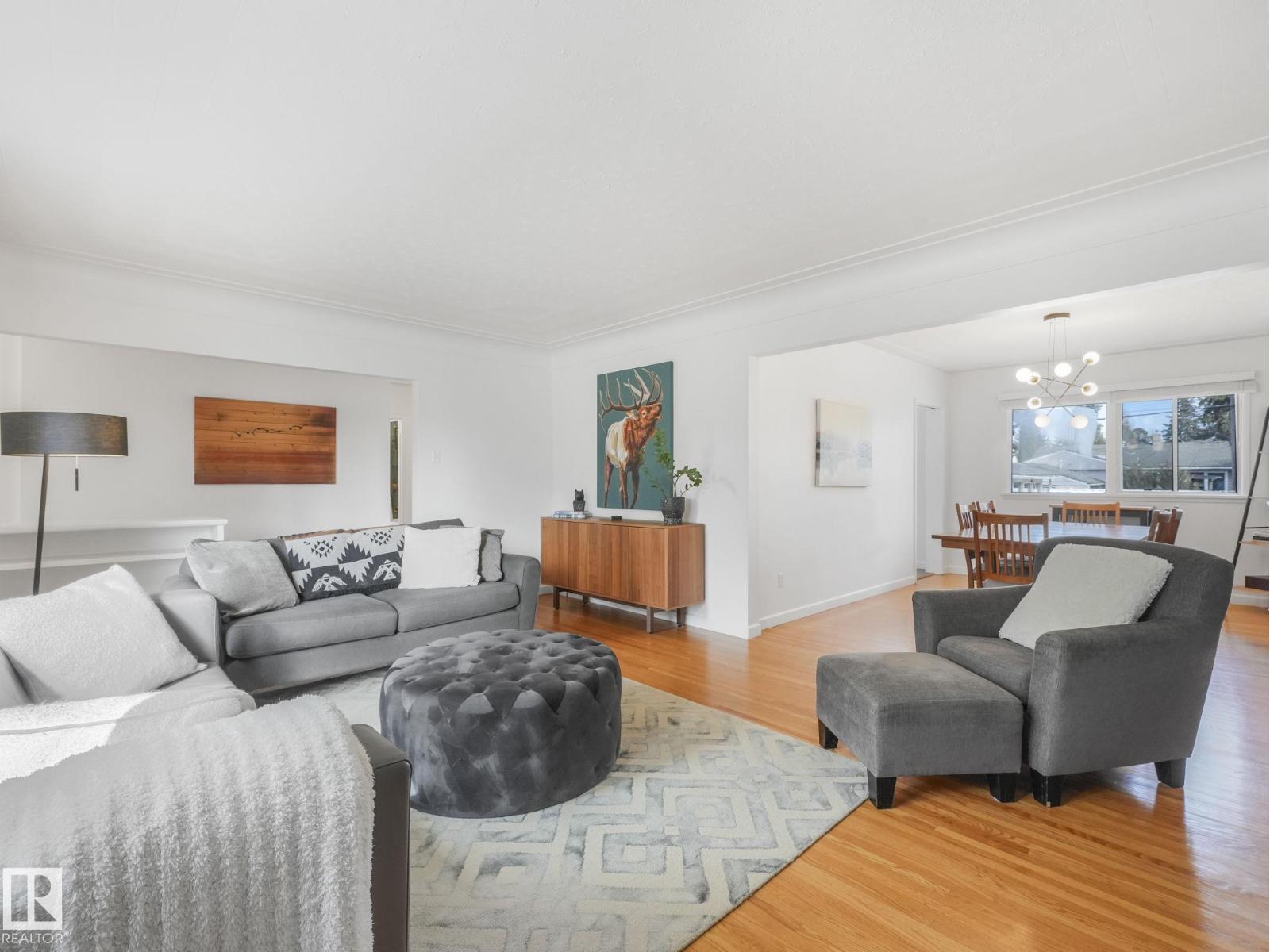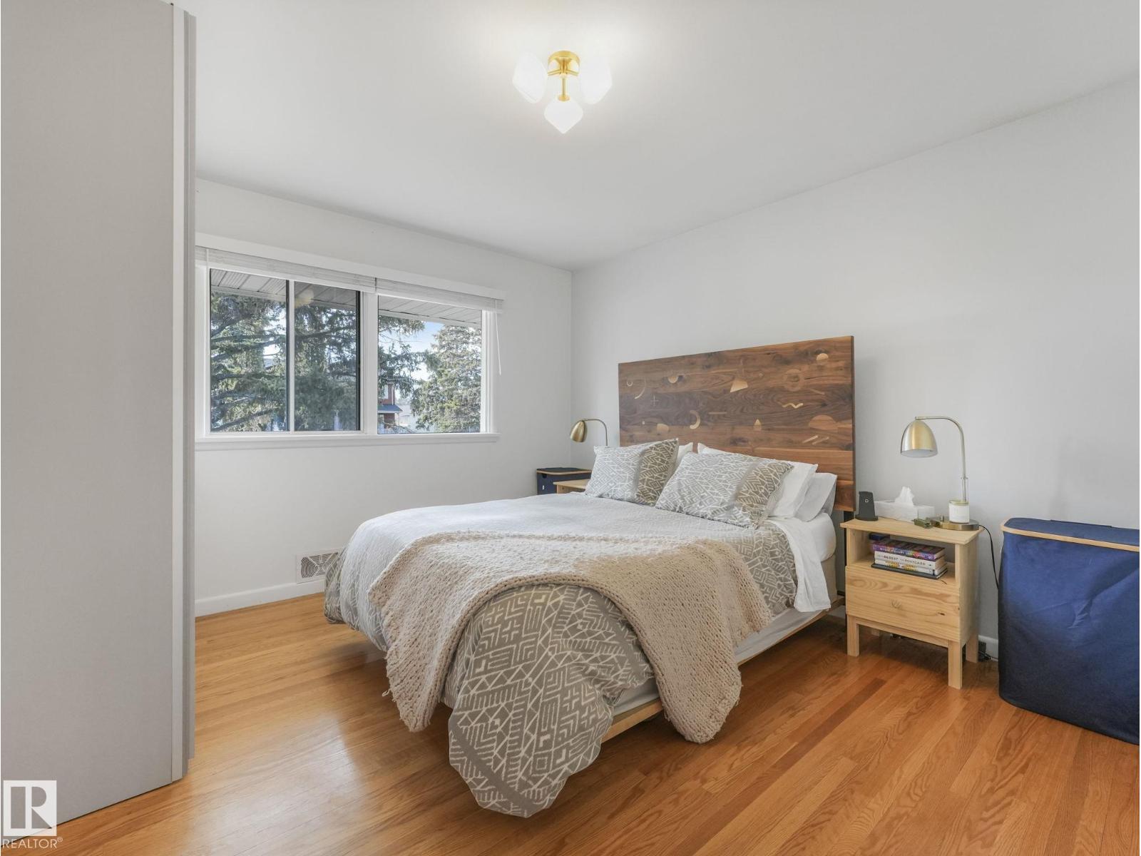 Located in prestigious Crestwood, this updated 3 bedroom, 2 bath bungalow sits just steps from McKinnon Ravine. Main floor features hardwood throughout and refreshed kitchen with granite countertops and stainless steel appliances. Main level offers primary bedroom, second bedroom, and fully renovated 4-piece bath (June 2025). Lower level includes third bedroom, renovated 3-piece bath, family room, laundry, and lots of storage space —ideal for families, empty nesters or investors. Upgrades include: furnace (2022), A/C ( 2022), washer/dryer (2022), cast iron drain replaced with PVC (2023), blinds (2023), hot water tank (2023), dishwasher (2023), microwave hood fan (2024), backyard landscaping (2025). Set on a 50’ x 145’ lot with private, fully landscaped backyard offering outdoor living space or future potential and a 22 x 24 double garage. Walk to parks, top schools, coffee shops & restaurants. A rare opportunity in one of Edmonton’s most sought-after neighbourhoods. Move-in ready with long-term value. (id:63190)