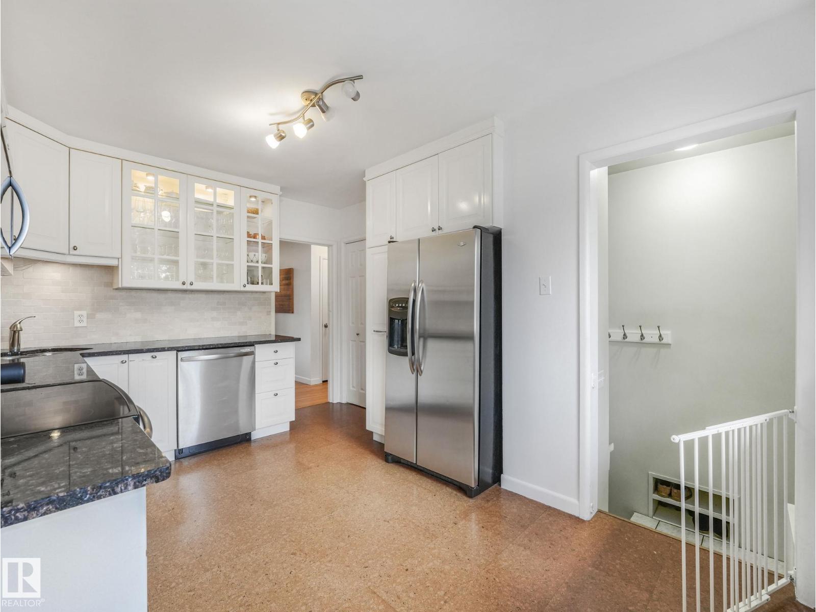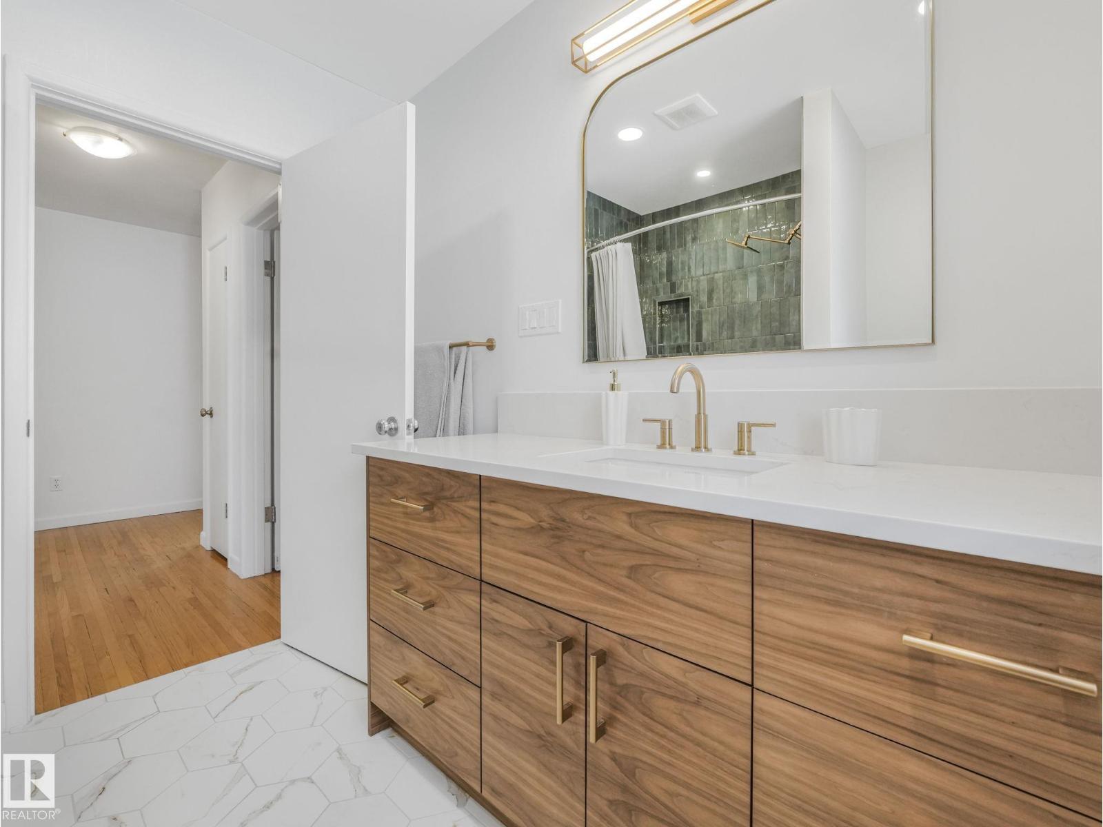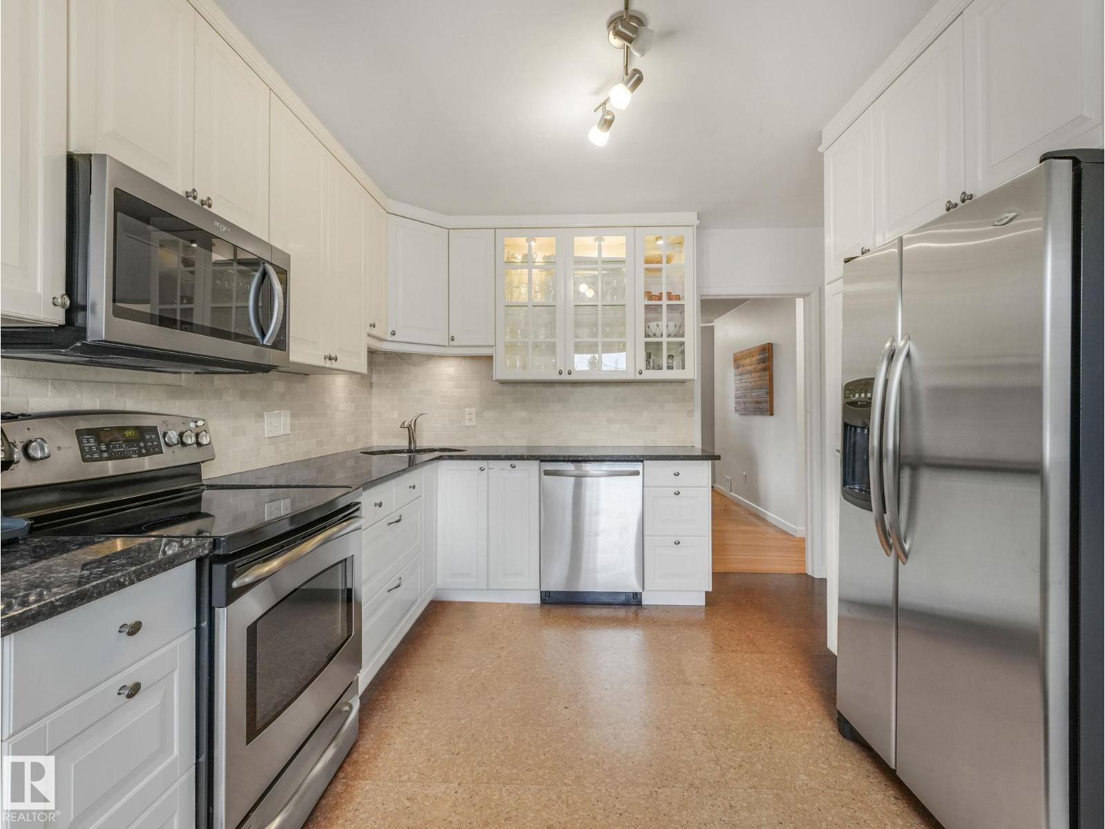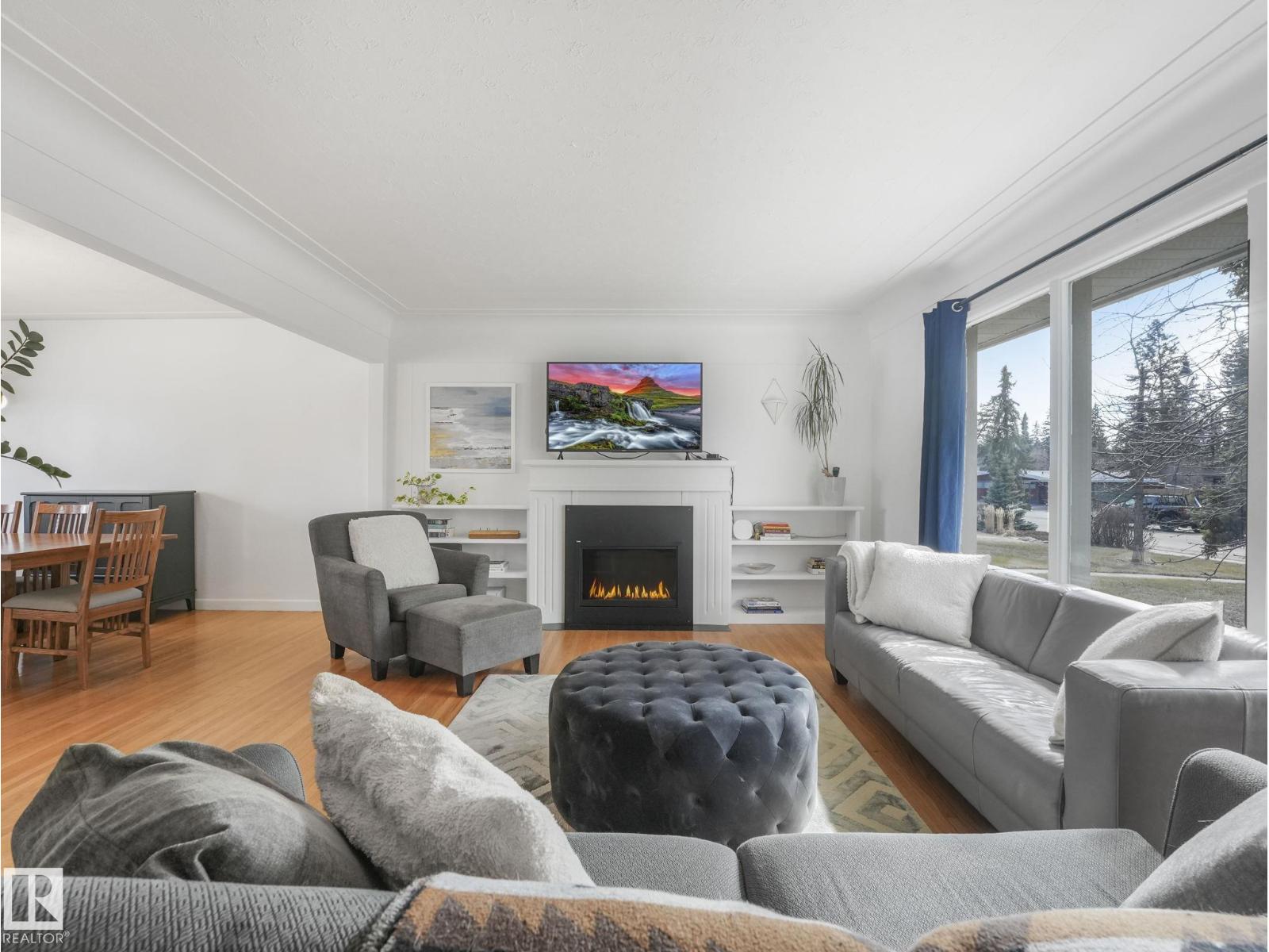 Located in prestigious Crestwood, this updated 3 bedroom, 2 bath bungalow sits just steps from McKinnon Ravine. Main floor features hardwood throughout and refreshed kitchen with granite countertops and stainless steel appliances. Main level offers primary bedroom, second bedroom, and fully renovated 4-piece bath (June 2025). Lower level includes third bedroom, renovated 3-piece bath, family room, laundry, and lots of storage space —ideal for families, empty nesters or investors. Upgrades include: furnace (2022), A/C ( 2022), washer/dryer (2022), cast iron drain replaced with PVC (2023), blinds (2023), hot water tank (2023), dishwasher (2023), microwave hood fan (2024), backyard landscaping (2025). Set on a 50’ x 145’ lot with private, fully landscaped backyard offering outdoor living space or future potential and a 22 x 24 double garage. Walk to parks, top schools, coffee shops & restaurants. A rare opportunity in one of Edmonton’s most sought-after neighbourhoods. Move-in ready with long-term value. (id:63190)