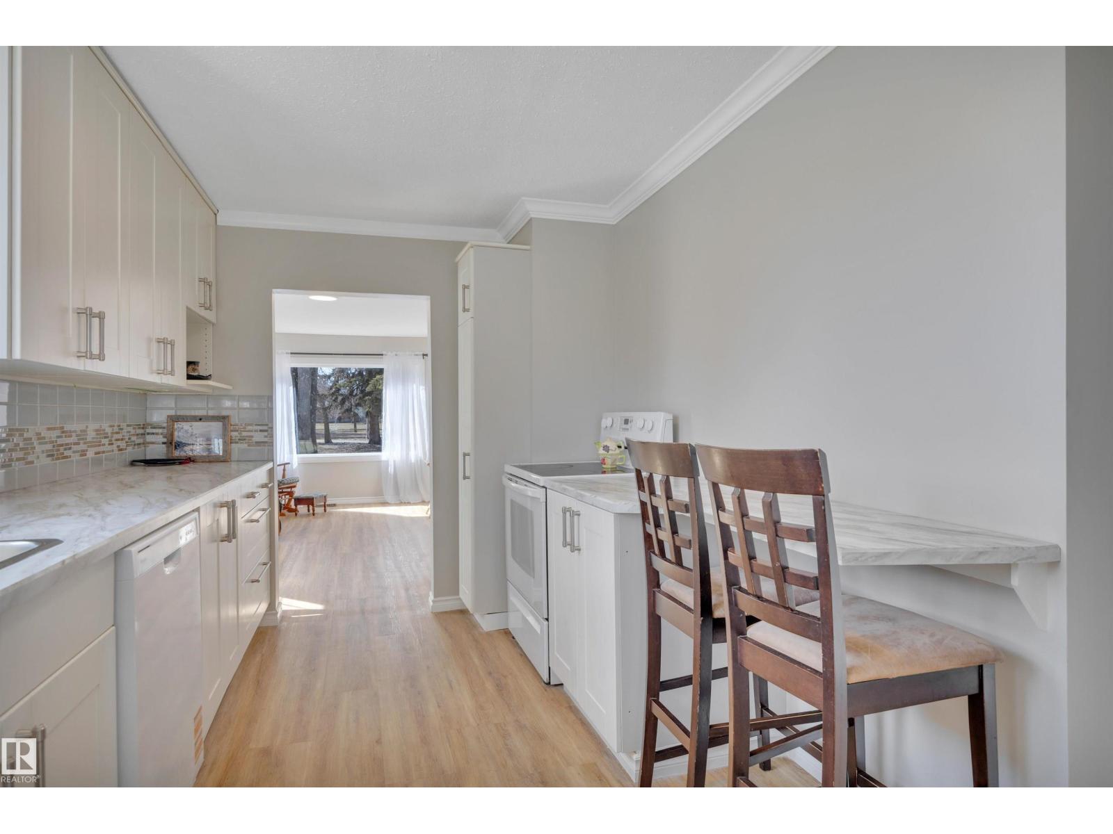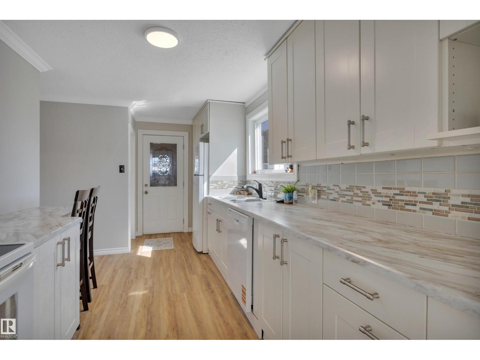 CUTE AS A BUTTON! Searching for that move in ready home on a budget? This 2 bed, 1.5 bath RENOVATED home has been tastefully refreshed with several upgrades! Feat: new vinyl plank flooring, paint, lighting, insulation, bathrooms, kitchen, some cabinetry, countertops, side deck, newer vinyl windows & shingles & more! Mudroom leads into a galley style kitchen w/ tons of countertop space for cooking up a storm! Living / dining space with large windows & views of Ashoro Park! Primary bedroom w/ 2 pce ensuite & closet, a second bedroom / office, beautiful 3 pce bathroom too! The basement is home to laundry, furnace / HWT, and storage. Outside brings a beautifully fenced yard with newer trees planted, 2 sheds, patio, alley access gate, & firepit for summer bonfires. A wonderful property on a quiet street; don't miss it! (id:63190)