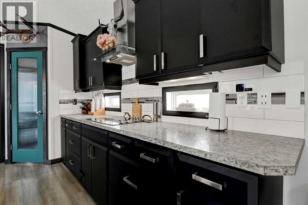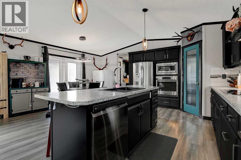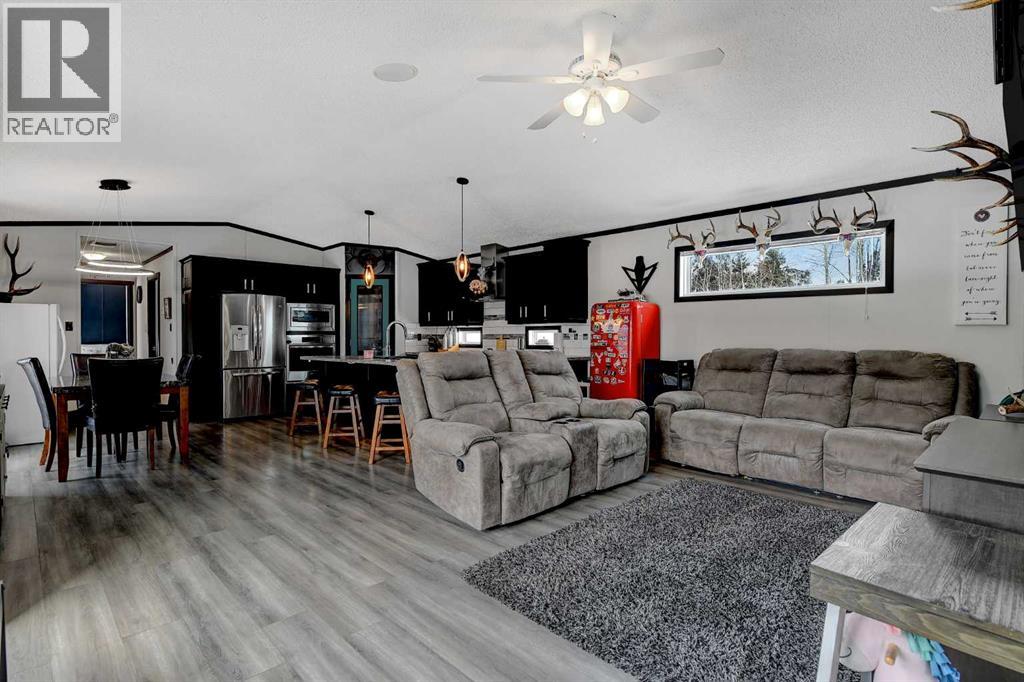 Stunning 3-acre private acreage with incredible lifestyle upgrades! This beautifully designed home welcomes you with a bright, open-concept layout flooded with natural light and finished in modern, inviting tones throughout. From the moment you walk in, you’ll be impressed by the expansive kitchen featuring high-end stainless steel appliances, an oversized island, abundant counter space, and a MASSIVE walk-in pantry—perfect for families or those who love to entertain. The seamless flow into the dining and living areas creates the ideal space for hosting guests or keeping an eye on the kids while preparing meals. The spacious primary suite is a true retreat, offering a large closet and a private ensuite complete with a relaxing jetted tub. Thoughtful upgrades like built-in wireless speakers and USB outlets throughout the home add both convenience and modern functionality. Step outside and enjoy everything acreage living should be with a large deck perfect for summer BBQs, a custom firepit area for evening gatherings, and a fully set-up dog run for pet lovers. The property also features a C-Can for secure storage and the added comfort of air conditioning, making it ideal for year-round living. Surrounded by nature and offering exceptional privacy, this property delivers the perfect blend of comfort, space, and outdoor lifestyle—book your showing today! (id:63190)