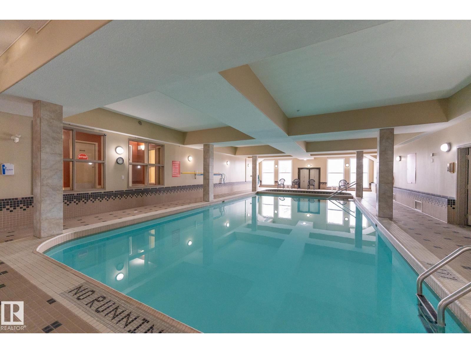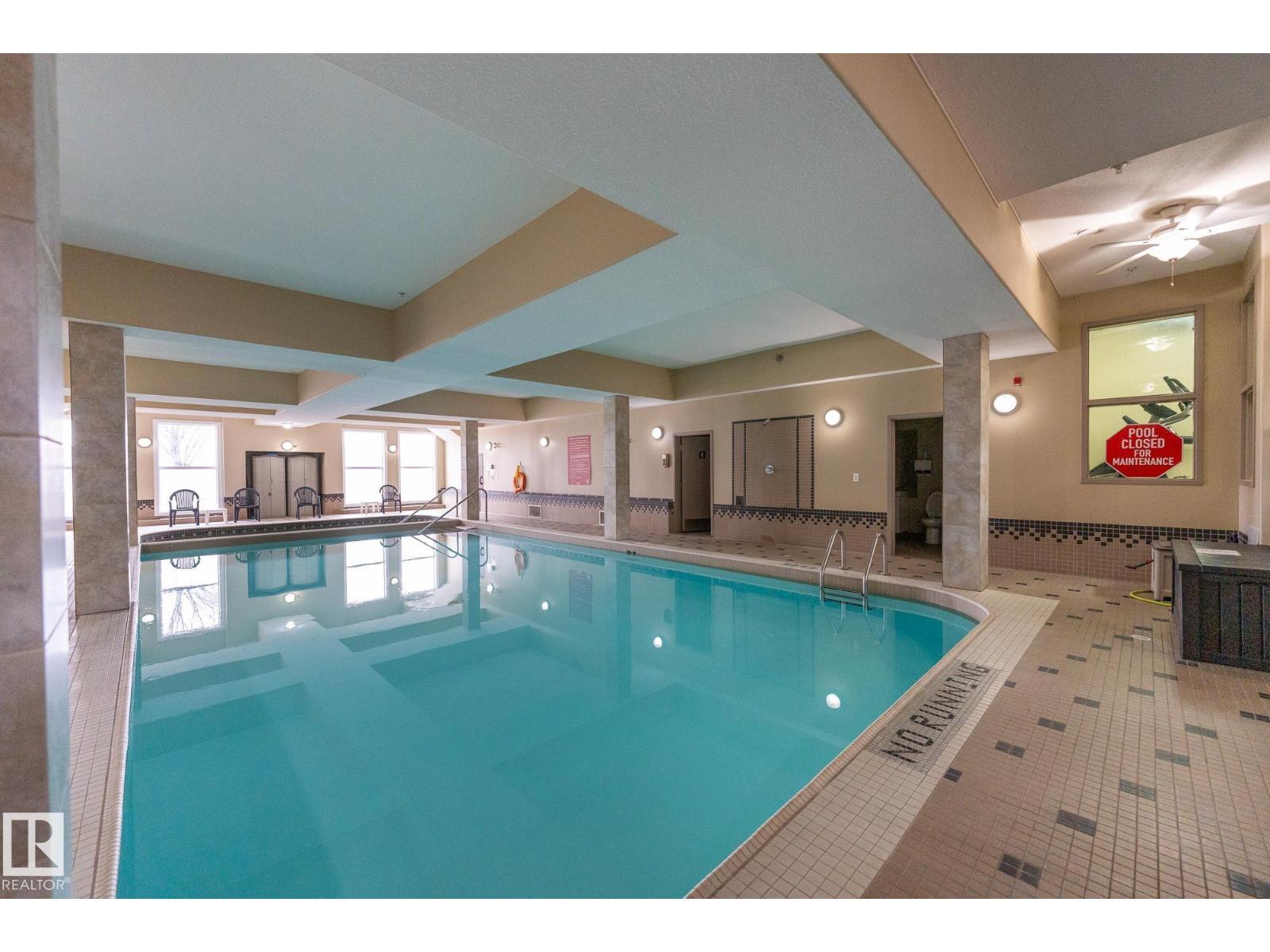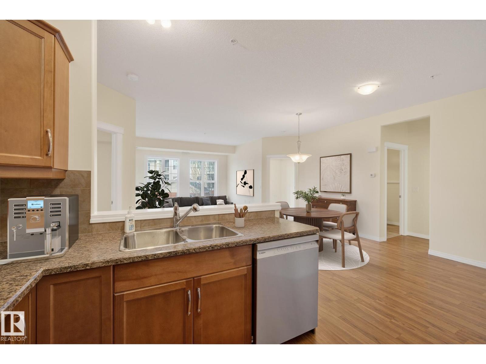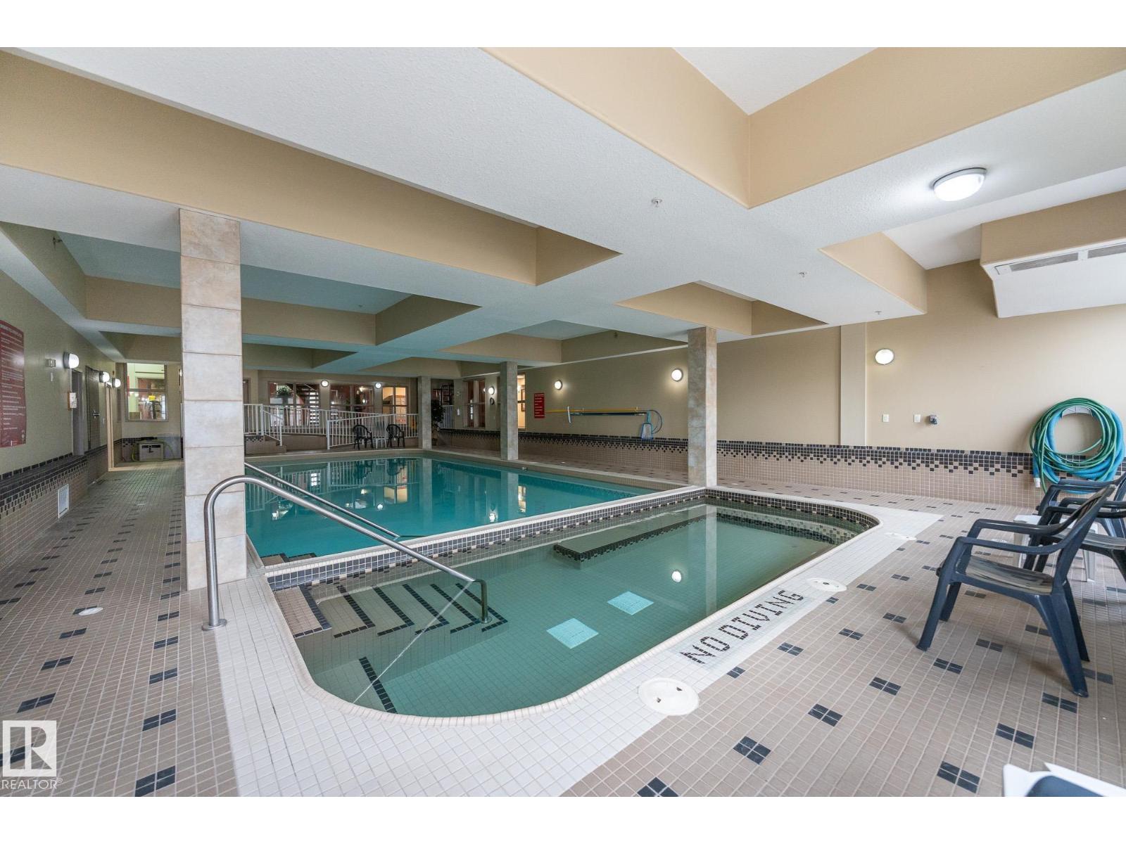 Discover quiet sophistication at the beautifully managed Sierras of Inglewood. This exceptionally run complex offers pristine upkeep and a vibrant resort lifestyle. Your bright, south-facing suite is bathed in natural light. The kitchen features a corner pantry, newer Maytag fridge, and premium Bosch dishwasher. It flows into a spacious living area and out to a covered balcony with a gas line and a new Phantom screen. The primary retreat includes a large walk-in closet and 4-piece ensuite. A second bedroom, 3-piece bath, and laundry room provide flexibility. Freshly painted, it is completely move-in ready. Enjoy daily resort living with an indoor saltwater pool, hot tub, sauna, fitness center, workshop, games room, and indoor car wash. The building also features 3 elevators, central A/C, titled heated underground parking, and secure storage. Positioned in prime St. Albert, you are steps from the hospital, retail, dining, and transit. This is a community built for quality and connection.photo virtual stage (id:63190)