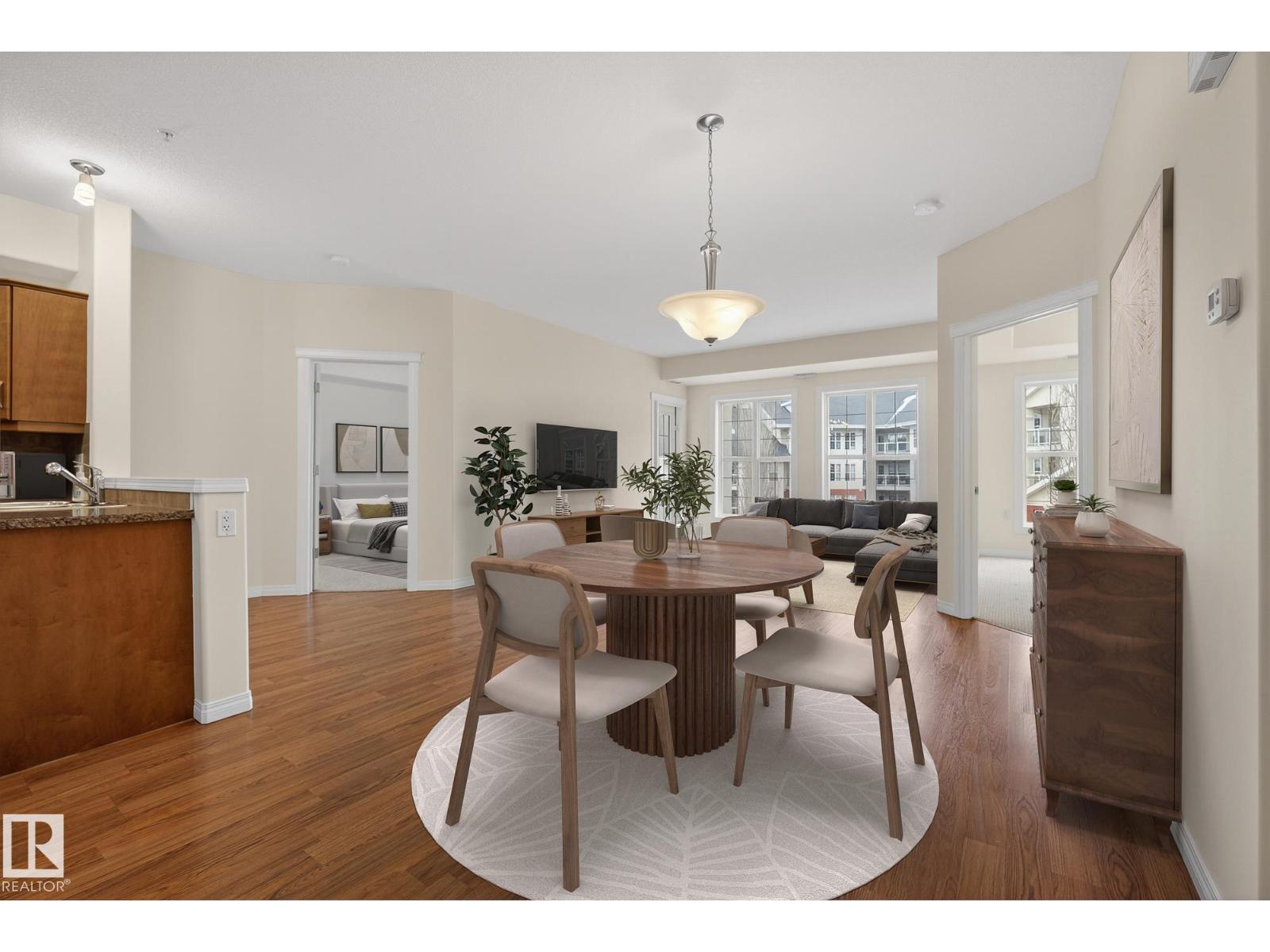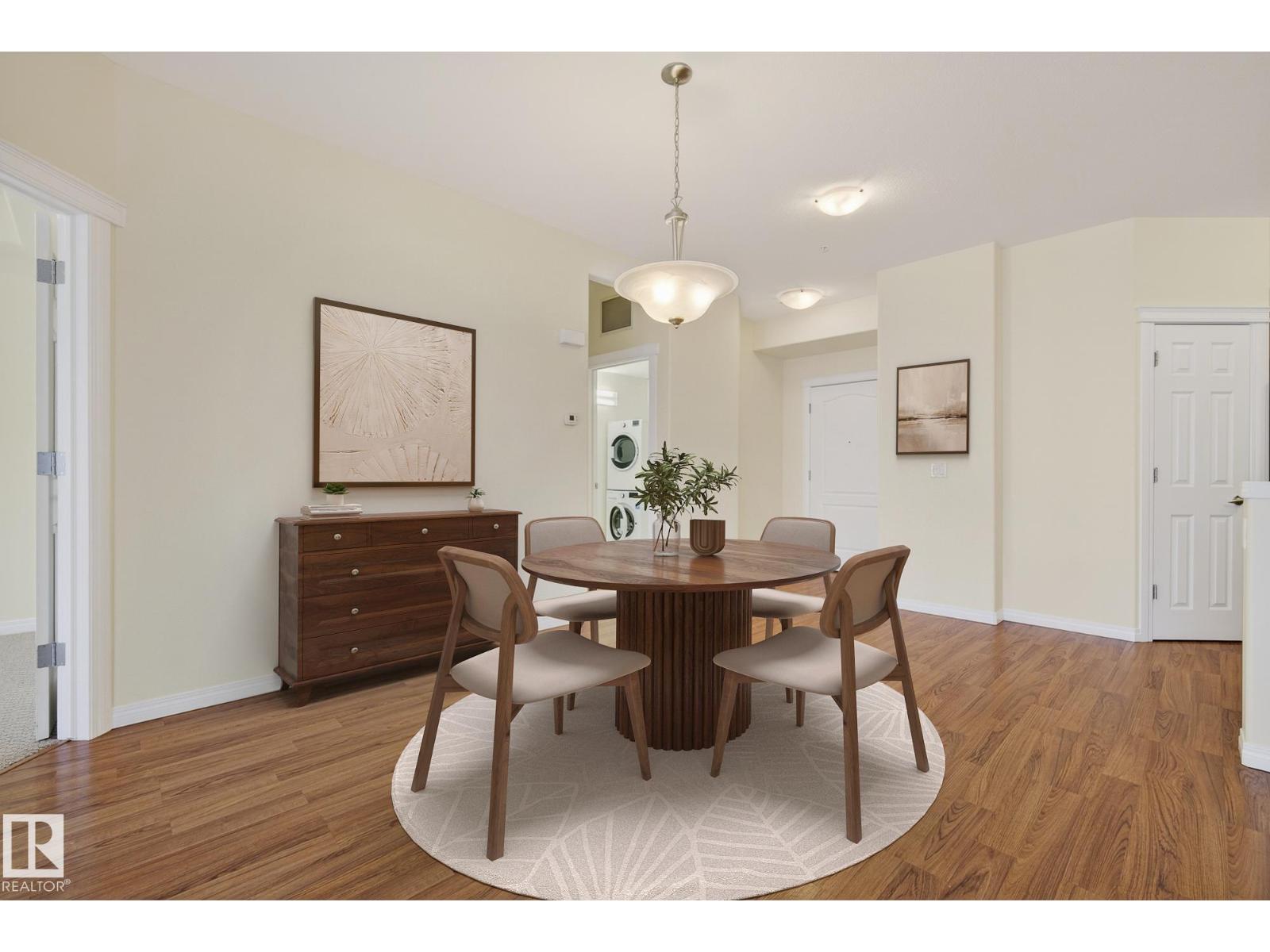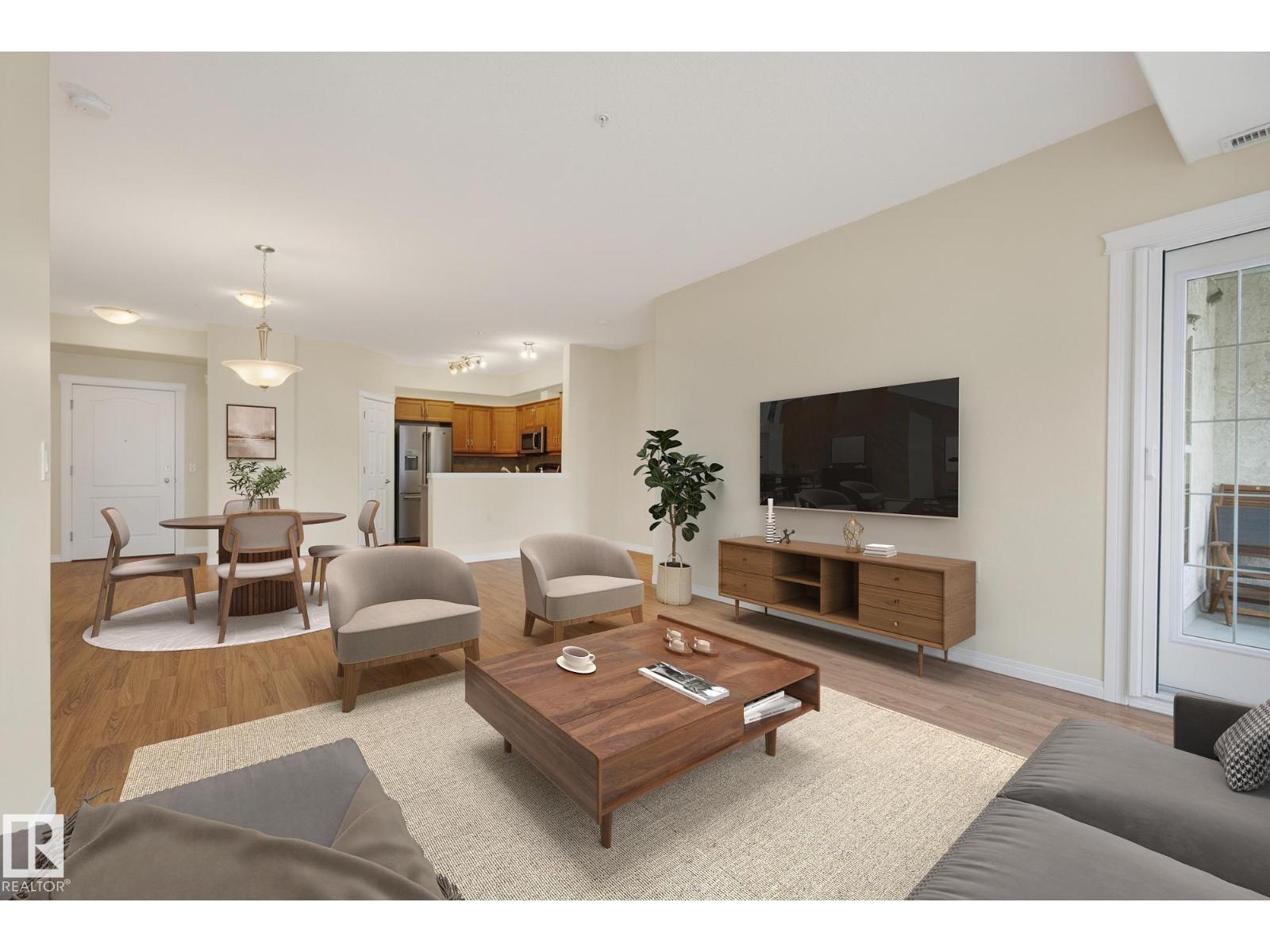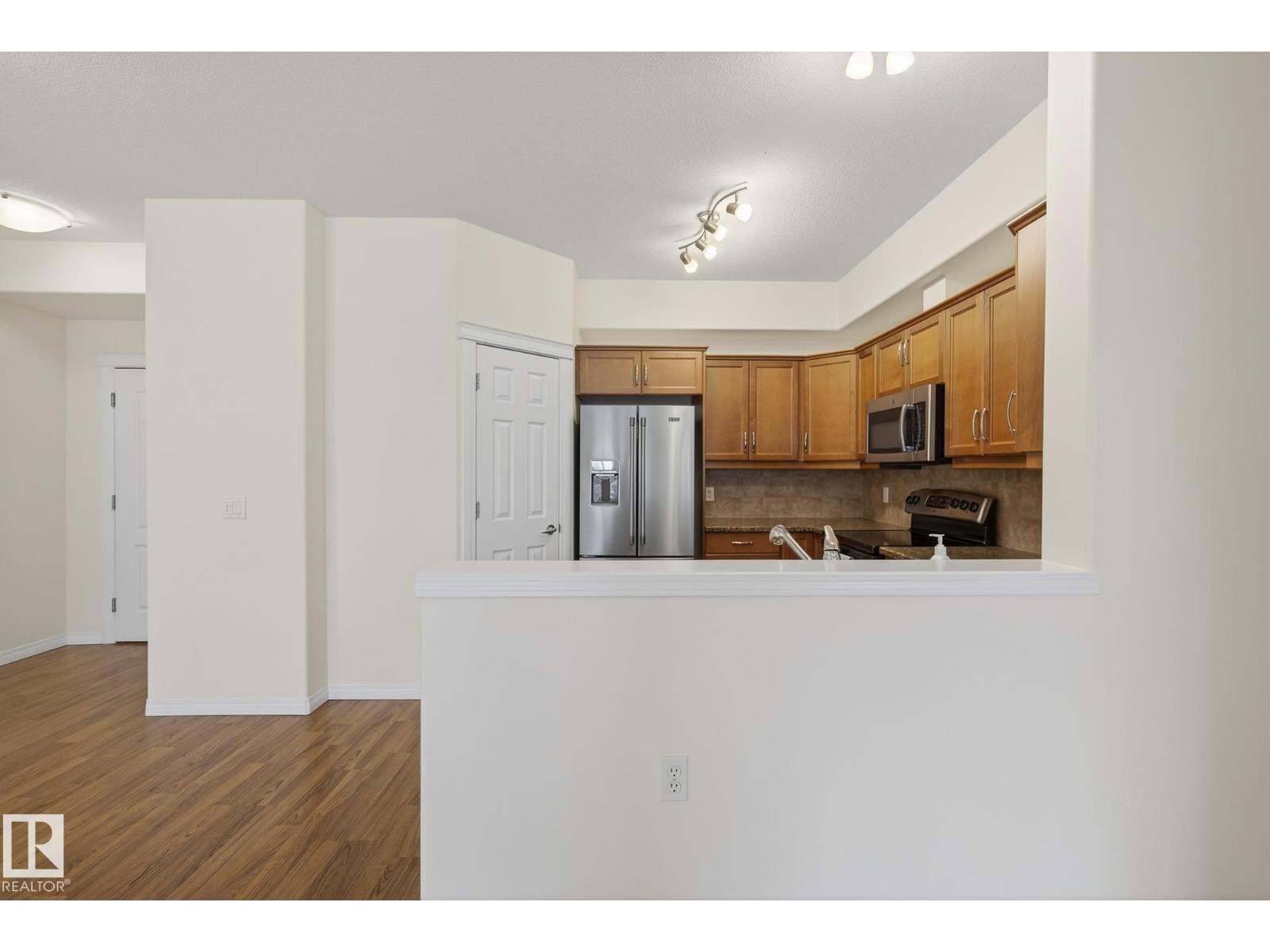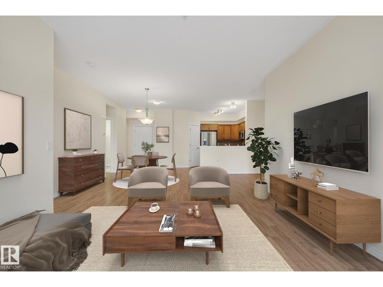 Discover quiet sophistication at the beautifully managed Sierras of Inglewood. This exceptionally run complex offers pristine upkeep and a vibrant resort lifestyle. Your bright, south-facing suite is bathed in natural light. The kitchen features a corner pantry, newer Maytag fridge, and premium Bosch dishwasher. It flows into a spacious living area and out to a covered balcony with a gas line and a new Phantom screen. The primary retreat includes a large walk-in closet and 4-piece ensuite. A second bedroom, 3-piece bath, and laundry room provide flexibility. Freshly painted, it is completely move-in ready. Enjoy daily resort living with an indoor saltwater pool, hot tub, sauna, fitness center, workshop, games room, and indoor car wash. The building also features 3 elevators, central A/C, titled heated underground parking, and secure storage. Positioned in prime St. Albert, you are steps from the hospital, retail, dining, and transit. This is a community built for quality and connection.photo virtual stage (id:63190)
