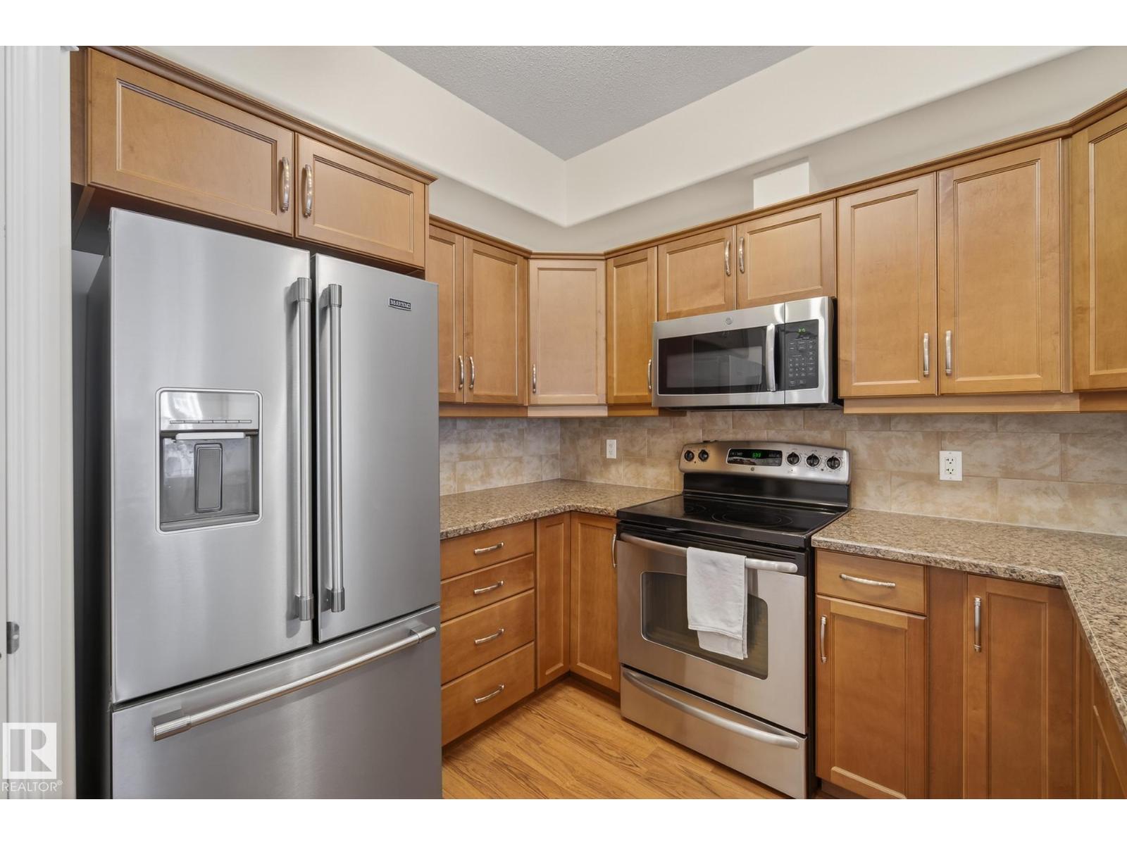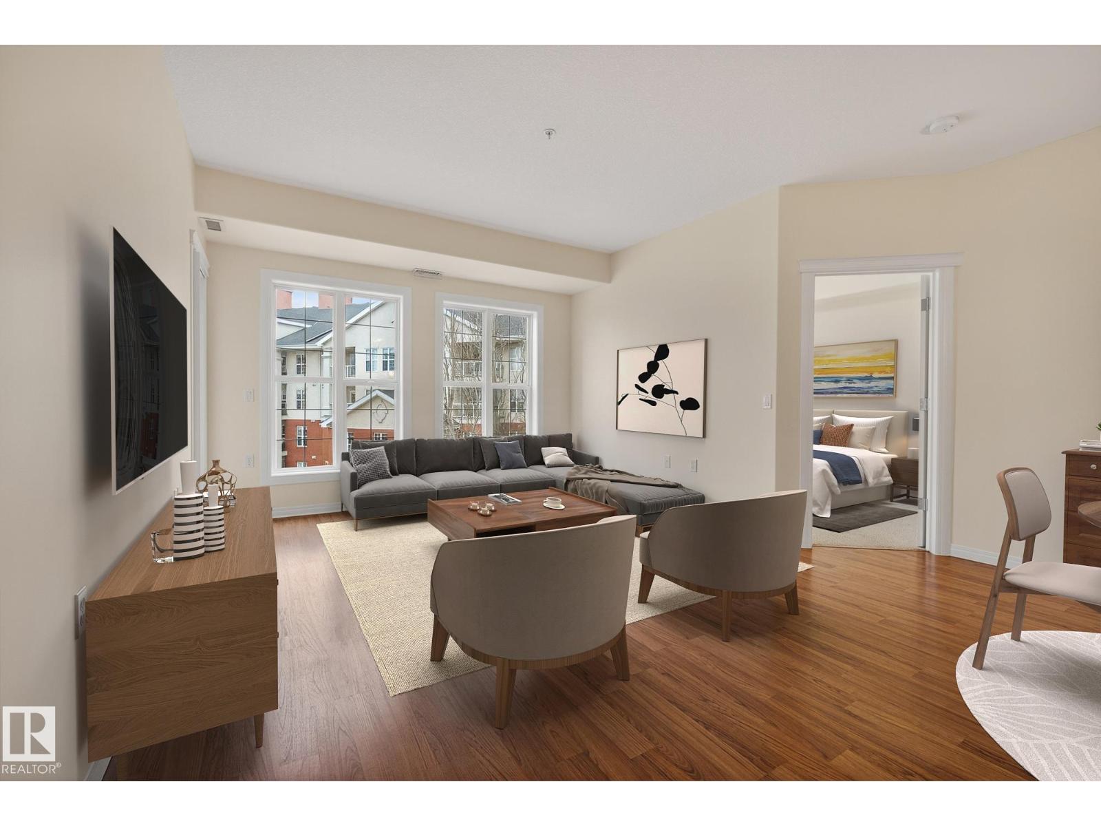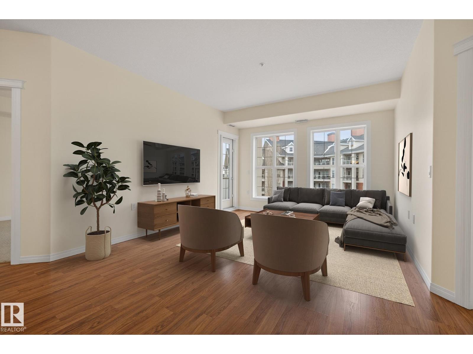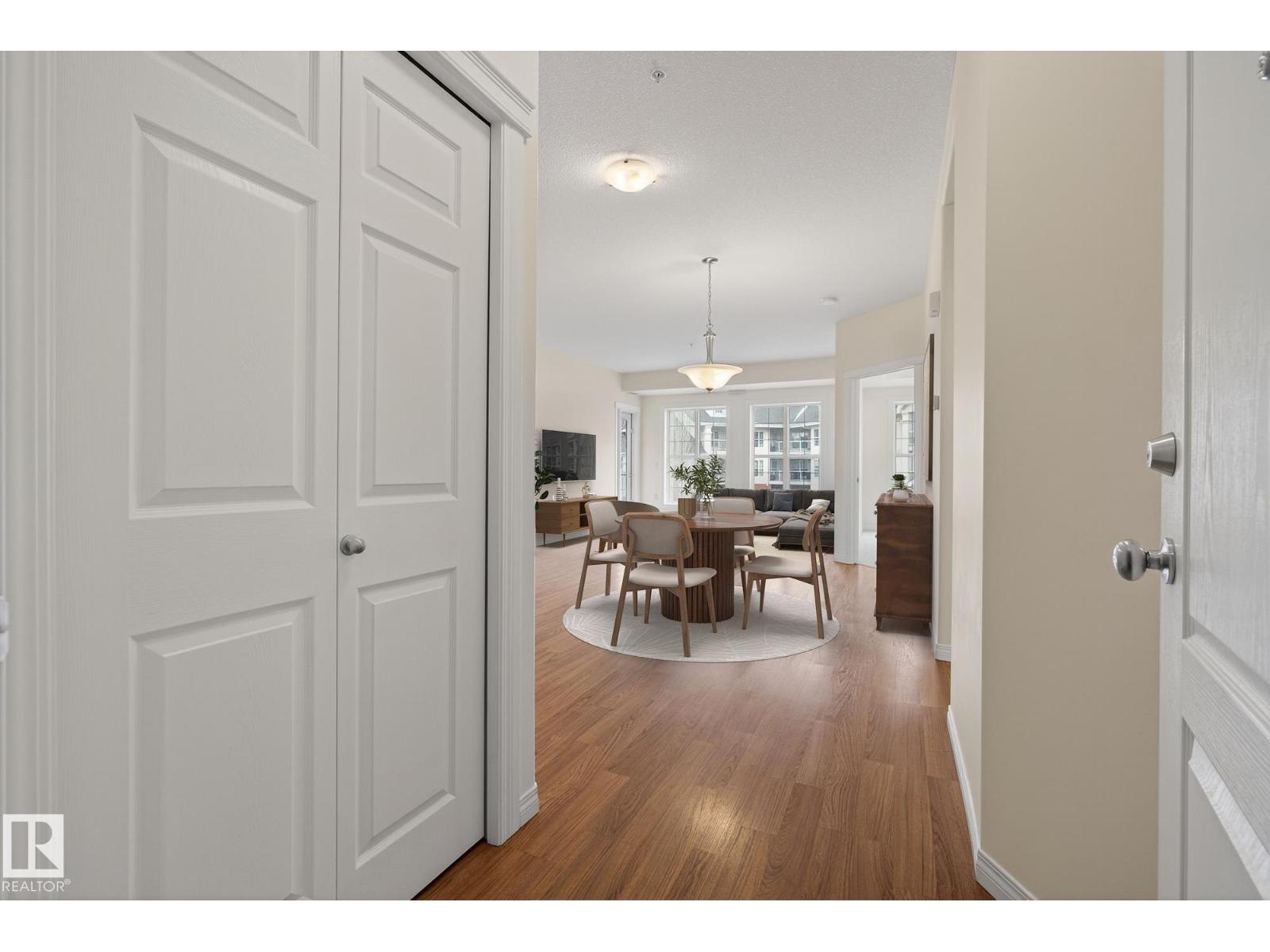Discover quiet sophistication at the beautifully managed Sierras of Inglewood. This exceptionally run complex offers pristine upkeep and a vibrant resort lifestyle. Your bright, south-facing suite is bathed in natural light. The kitchen features a corner pantry, newer Maytag fridge, and premium Bosch dishwasher. It flows into a spacious living area and out to a covered balcony with a gas line and a new Phantom screen. The primary retreat includes a large walk-in closet and 4-piece ensuite. A second bedroom, 3-piece bath, and laundry room provide flexibility. Freshly painted, it is completely move-in ready. Enjoy daily resort living with an indoor saltwater pool, hot tub, sauna, fitness center, workshop, games room, and indoor car wash. The building also features 3 elevators, central A/C, titled heated underground parking, and secure storage. Positioned in prime St. Albert, you are steps from the hospital, retail, dining, and transit. This is a community built for quality and connection.photo virtual stage (id:63190)