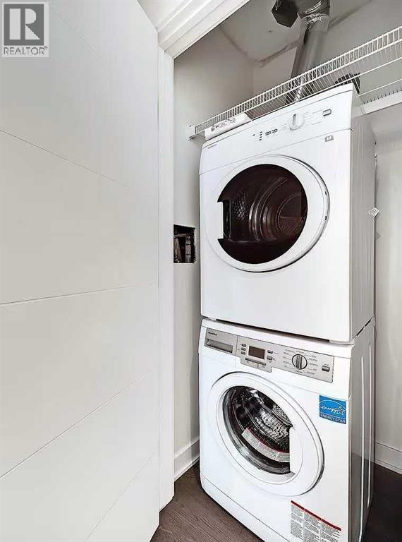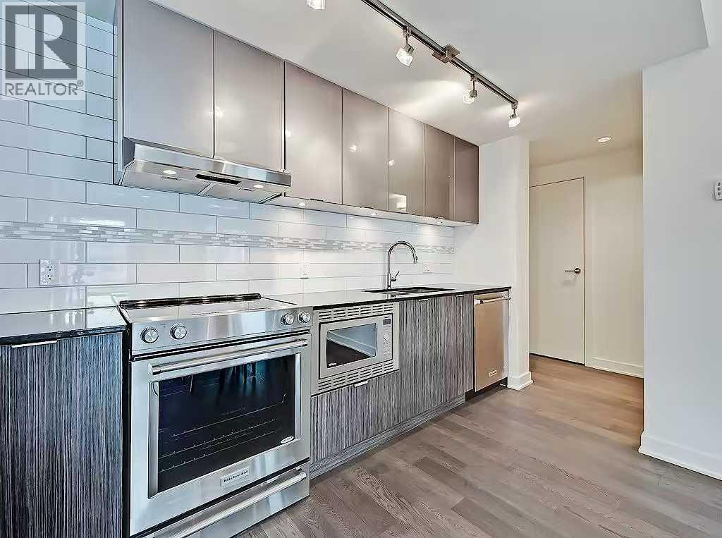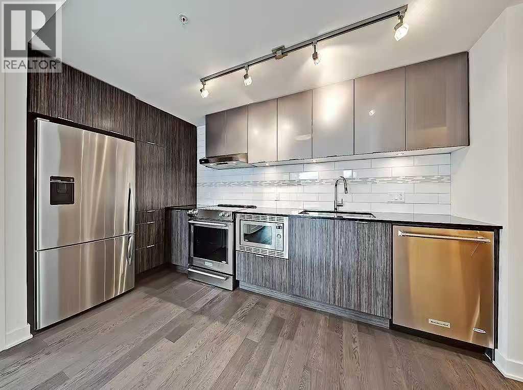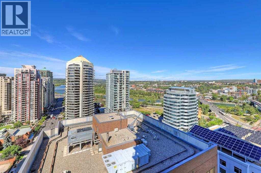 SOUTHWEST-facing 2-bed, 2-bath condo in upscale VOGUE w/ stunning CITY, RIVER & MOUNTAIN VIEWS from the 19th floor! Sun-drenched & open concept, this bright 2-bed/2-bath unit is filled with natural light & has engineered hardwood flooring in the main areas. Two-tone cabinets w/ modern hardware & under cabinet lighting, quartz counters, subway tile backsplash, dual basin undermount S/S sink, & S/S appliances, including a built-in Panasonic microwave, Kitchenaid stove w/ flat cooktop & dishwasher, & a Fisher Paykal fridge can be found in the open kitchen. The open main living area also features painted ceilings, floor-to-ceiling windows, & a sunny balcony w/ gas line for a BBQ & panoramic views. Flanked bedrooms offer extra privacy for roomates or frequent guests as they share no walls with each other. Primary suite features plush carpet, large windows w/ panoramic views, a generous closet, & a 4-pc ensuite w/ hexagon tile floors, modern vanity, quartz counter, undermount sink w/ modern faucet, tile backsplash, & fully tiled tub/shower. The 2nd bedroom also has plush carpet, a generous closet, large windows and quick access to the main 3-pc bath w/ hexagon tile floors, modern vanity, quartz counter, undermount sink w/ modern faucet, & oversized glass shower w/ full height tile. Complete w/ in-suite laundry, titled indoor parking and extra storage in the heated parkade. VOGUE is a high-end building w/ a ton of amenities, including central A/C, an elegant formal lobby, full-time concierge, and 36th floor Sky Lounge complete with fitness centre, billiards, large party room w/ kitchen, studio, & multiple rooftop terraces. Surrounded by parks, transit, the LRT, shopping & more, & within walking distance to the downtown core & all Kensington shops & services – this location offers the best urban lifestyle in the Downtown Commercial Core. (id:63190)