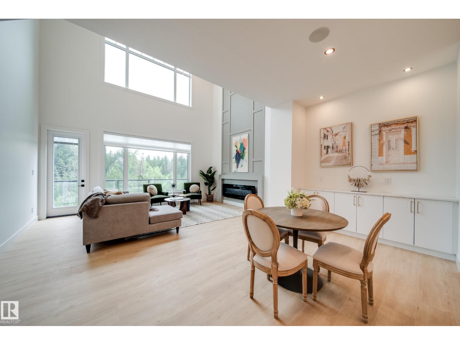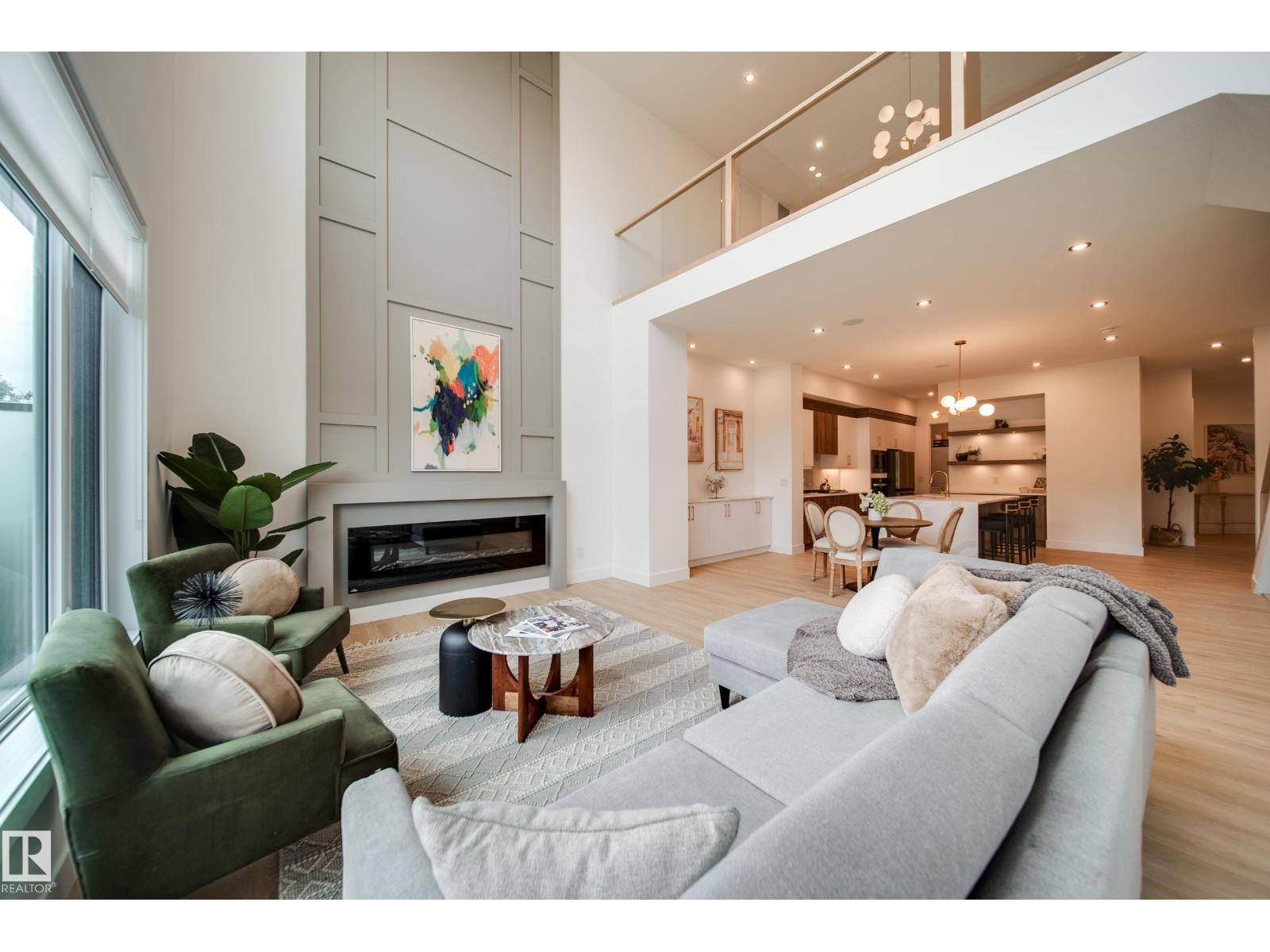 “Luxury Greens” by Spectrum Homes – a premium, Executive-style WALKOUT half-duplex BUNGALOW in sought-after Webber Greens! BACKING THE RAVINE, this custom built home designed by CM Interior Designs showcases resort-style living with 10' ceilings, OPEN TO BELOW, 8' doors, and an open concept layout. The main floor offers 2 bedrooms, 2 full baths, laundry, and a dream kitchen with waterfall island, walk-through pantry, spice racks, garbage pullout, and upgraded appliances. Enjoy the bright living room with massive windows, fireplace, window coverings, and soaring open-to-below ceilings. The primary suite is a retreat with spa-inspired ensuite featuring a freestanding tub, tiled shower, dual sinks & walk-in closet. Upper loft includes built-in wet bar and 2nd fireplace. Fully finished walkout basement features a large rec room, 3rd fireplace, 2 bedrooms, full bath & wet bar. Finished garage w/ 220V EV charger, zoned A/C, WiFi LED gem lights, & exposed aggregate driveway complete this incredible home! (id:63190)
