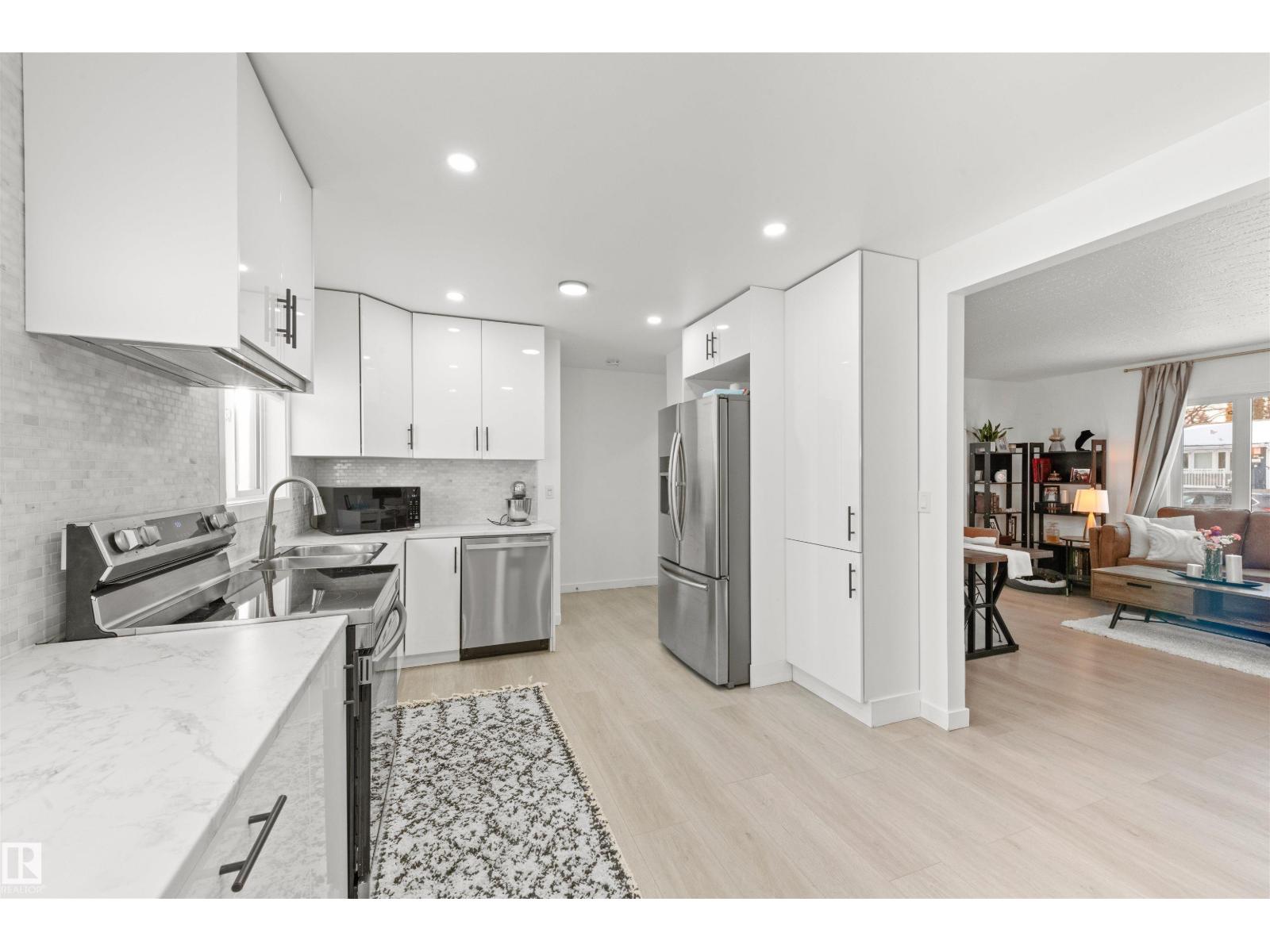 Fully renovated top to bottom, this 5 bedroom bungalow features a non-legal BASEMENT SUITE and major upgrades throughout. Key improvements include an exterior sewer line replacement and new furnace in 2025. The interior has been completely refreshed with vinyl plank flooring, updated cabinetry, tiled bathrooms, and modern appliances. The bright main floor offers two bedrooms, a full bath, and large windows overlooking a quiet, tree-lined street and park beyond the backyard. The fully self-contained lower level includes three bedrooms, a kitchen area, full bath, under stair laundry, and COMES FURNISHED! The backyard features an apple tree, greenhouse, garden beds, and an oversized single garage. Prime location, just a 3 minute walk to Abbott Elementary, 8 minutes to the Yellowhead, and minutes from Rundle Park, Sunridge Ski Area, and river valley amenities. (id:63190)