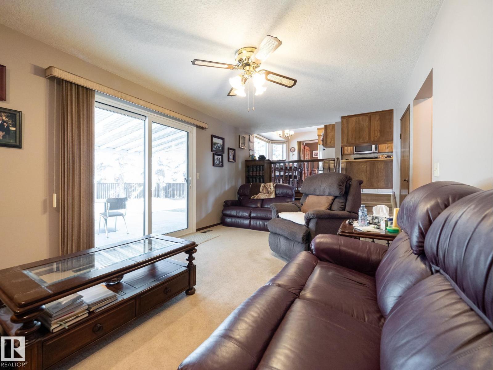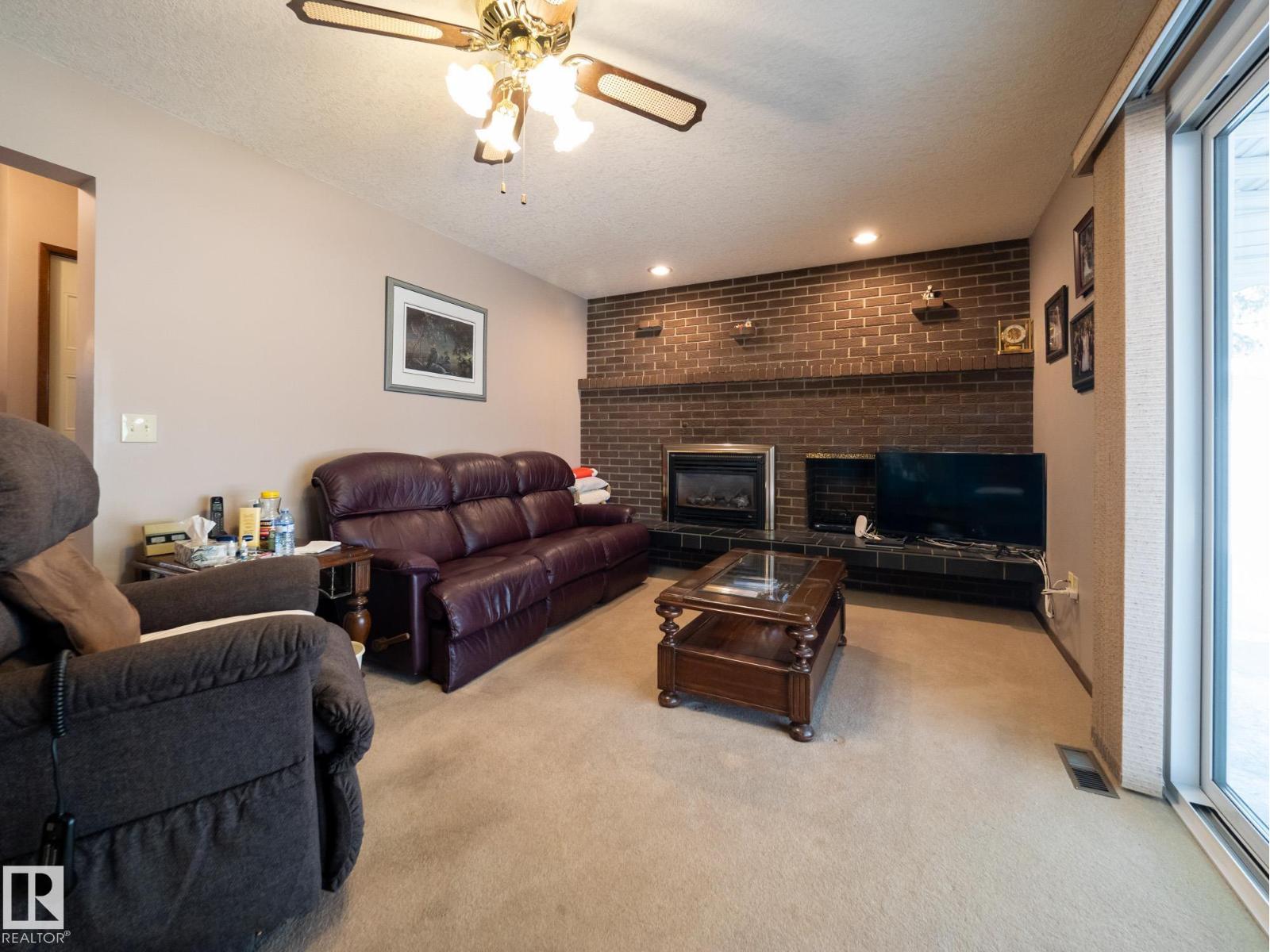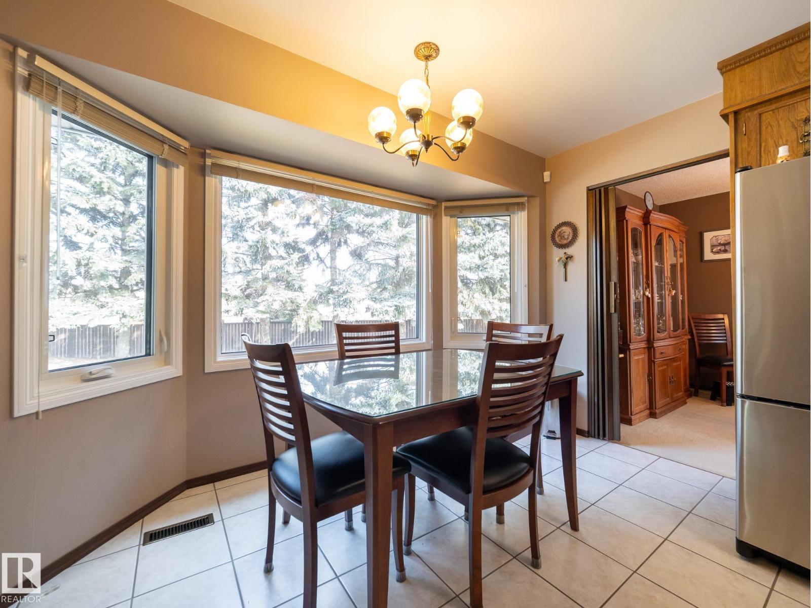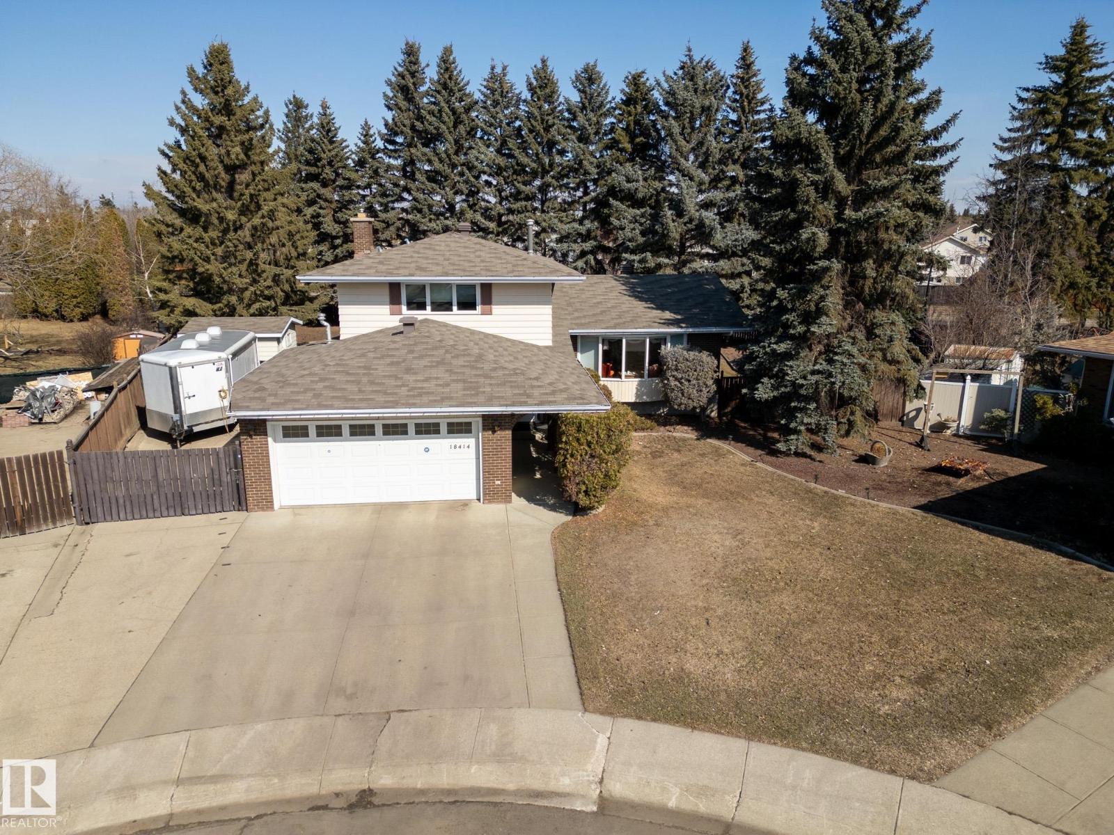 Situated on a rare, oversized pie lot, this 4-level split offers exceptional space, privacy, and mature trees that create a true backyard oasis. Boasting 2020 sqft plus a developed lower level with rec room, den and ample storage this home is perfect for growing families. The upper level features 3 spacious bedrooms, including a primary with 3-piece ensuite, while a 4th bedroom on the main floor adds flexibility. Enjoy a cozy gas fireplace, some newer appliances, upgraded attic insulation, and many updates including shingles, hot water tank, and most windows. The oversized heated double garage includes a floor drain and hot/cold taps, and there’s even RV parking plus two storage sheds—one with 220V wiring. The massive, private yard is truly the showstopper, offering endless potential for entertaining, gardening, or simply relaxing in your own secluded retreat. Close proximity to WEM, the Henday, transit, schools, parks and all kinds of amenities! Truly an ideal family home for a large or expanding family! (id:63190)