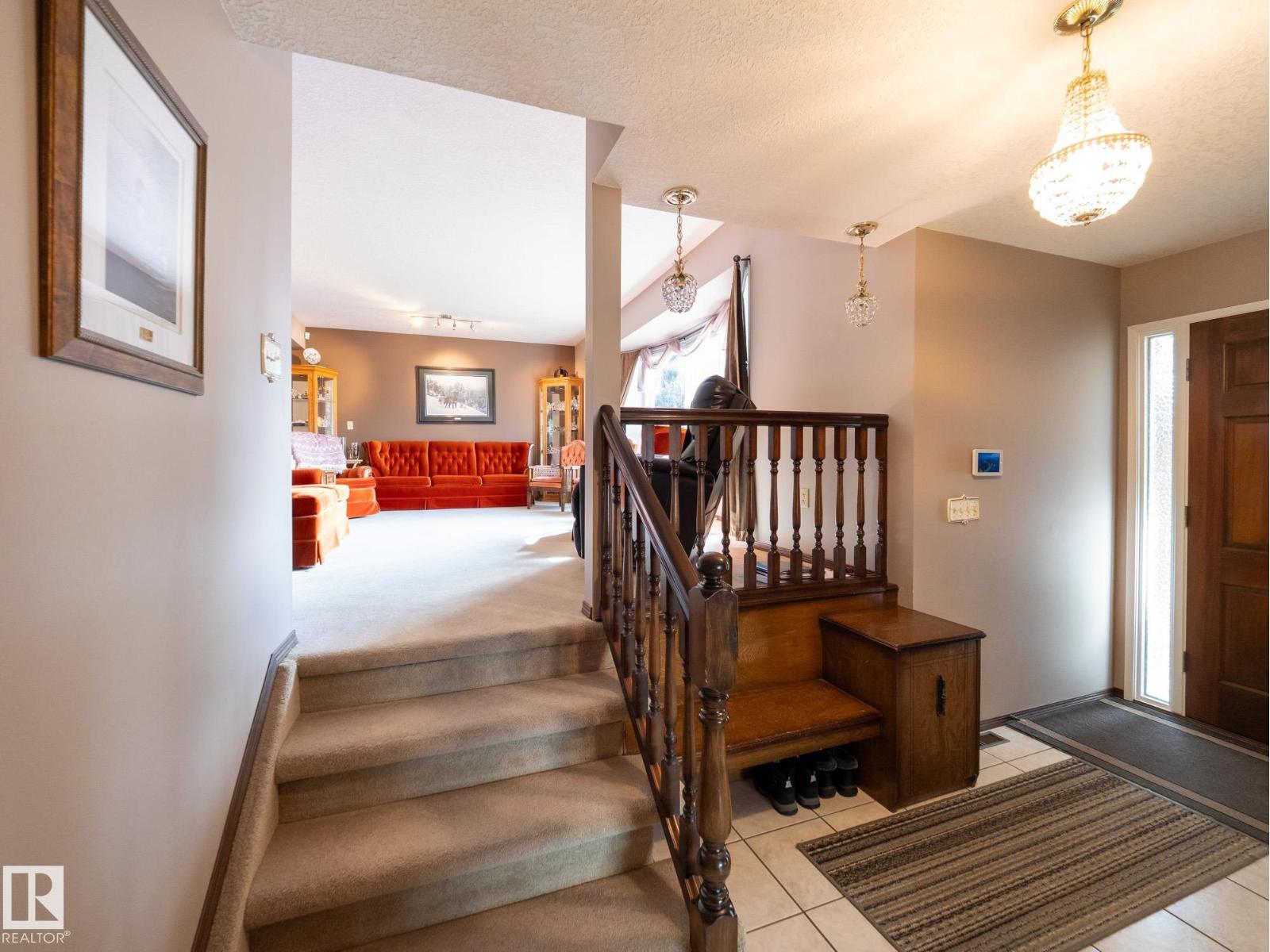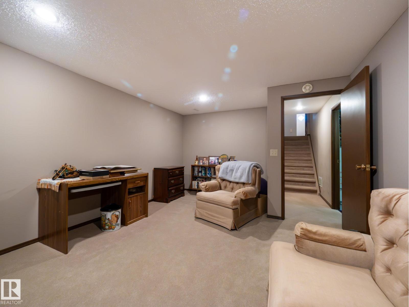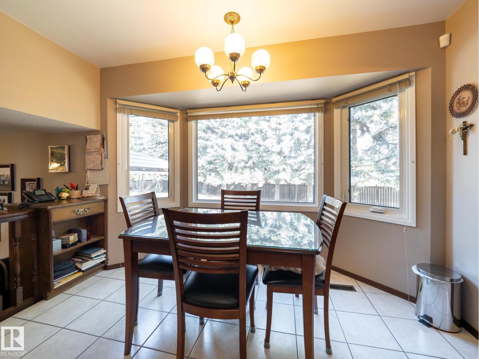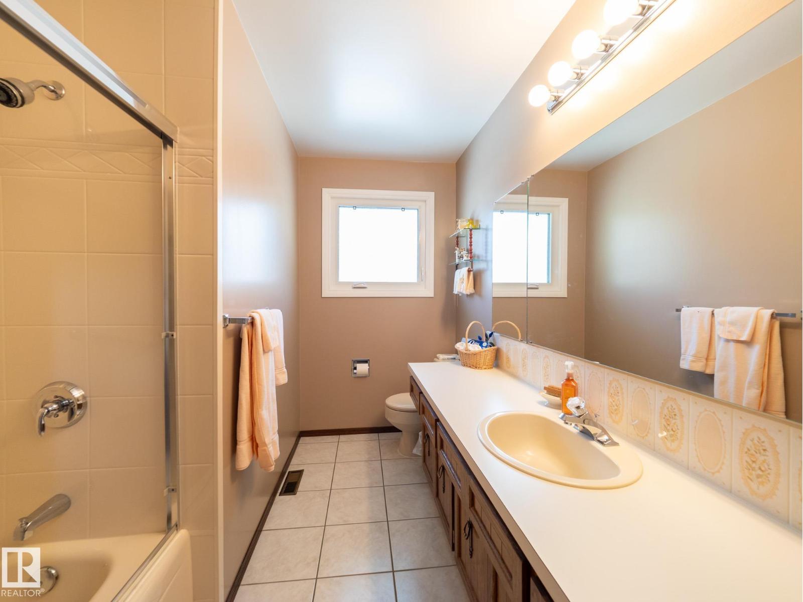 Situated on a rare, oversized pie lot, this 4-level split offers exceptional space, privacy, and mature trees that create a true backyard oasis. Boasting 2020 sqft plus a developed lower level with rec room, den and ample storage this home is perfect for growing families. The upper level features 3 spacious bedrooms, including a primary with 3-piece ensuite, while a 4th bedroom on the main floor adds flexibility. Enjoy a cozy gas fireplace, some newer appliances, upgraded attic insulation, and many updates including shingles, hot water tank, and most windows. The oversized heated double garage includes a floor drain and hot/cold taps, and there’s even RV parking plus two storage sheds—one with 220V wiring. The massive, private yard is truly the showstopper, offering endless potential for entertaining, gardening, or simply relaxing in your own secluded retreat. Close proximity to WEM, the Henday, transit, schools, parks and all kinds of amenities! Truly an ideal family home for a large or expanding family! (id:63190)