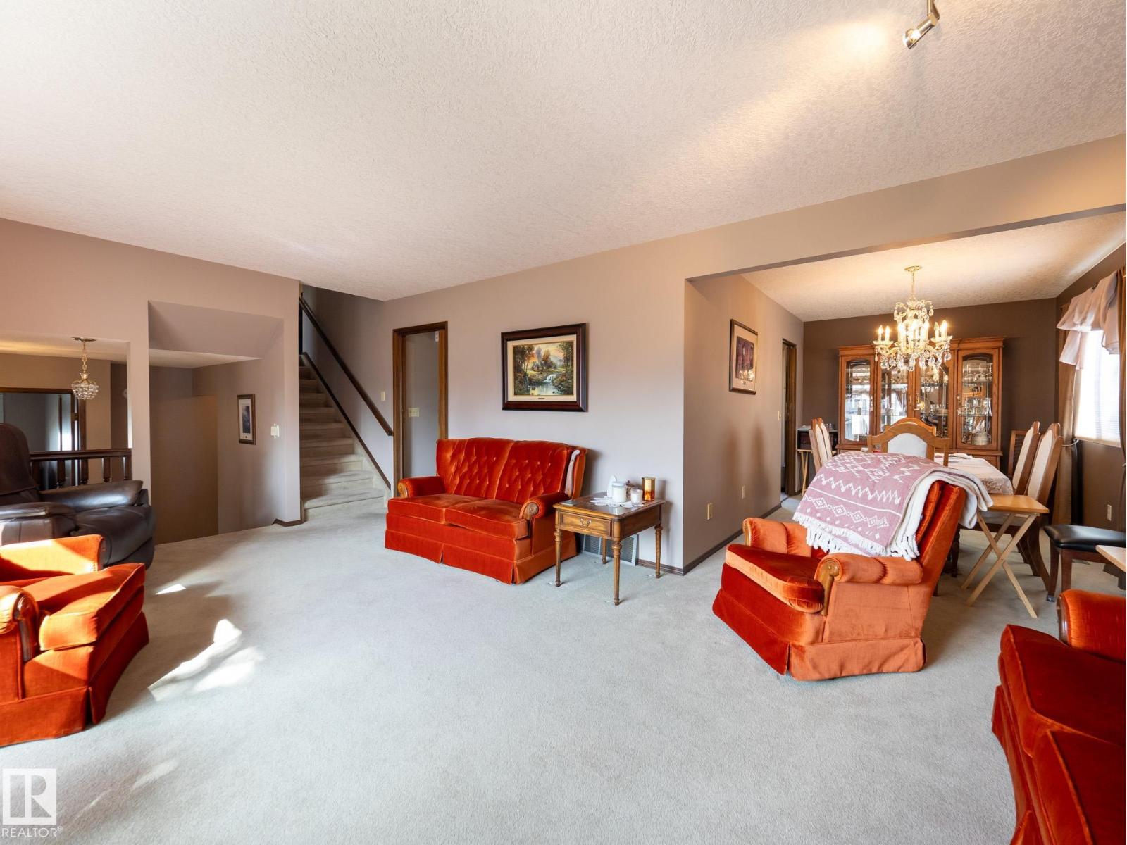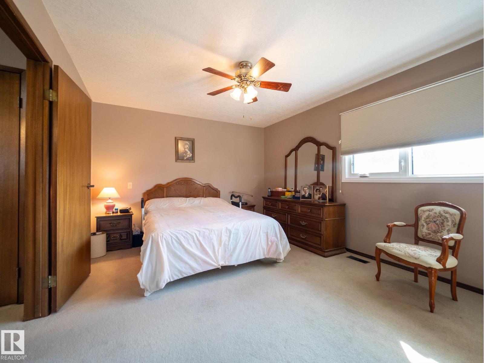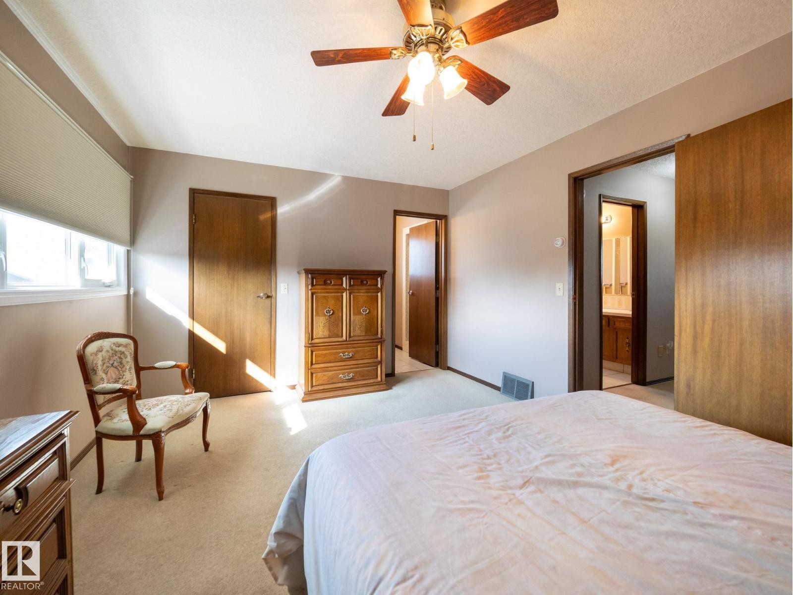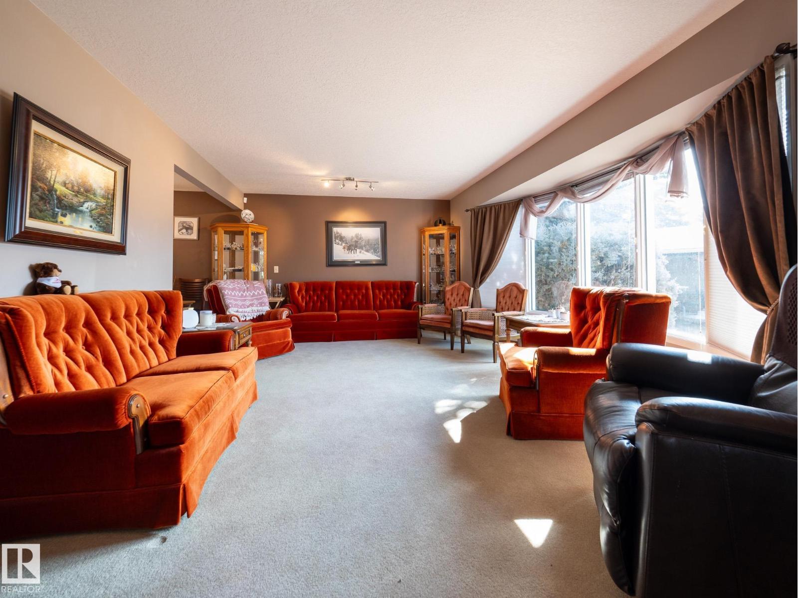 Situated on a rare, oversized pie lot, this 4-level split offers exceptional space, privacy, and mature trees that create a true backyard oasis. Boasting 2020 sqft plus a developed lower level with rec room, den and ample storage this home is perfect for growing families. The upper level features 3 spacious bedrooms, including a primary with 3-piece ensuite, while a 4th bedroom on the main floor adds flexibility. Enjoy a cozy gas fireplace, some newer appliances, upgraded attic insulation, and many updates including shingles, hot water tank, and most windows. The oversized heated double garage includes a floor drain and hot/cold taps, and there’s even RV parking plus two storage sheds—one with 220V wiring. The massive, private yard is truly the showstopper, offering endless potential for entertaining, gardening, or simply relaxing in your own secluded retreat. Close proximity to WEM, the Henday, transit, schools, parks and all kinds of amenities! Truly an ideal family home for a large or expanding family! (id:63190)