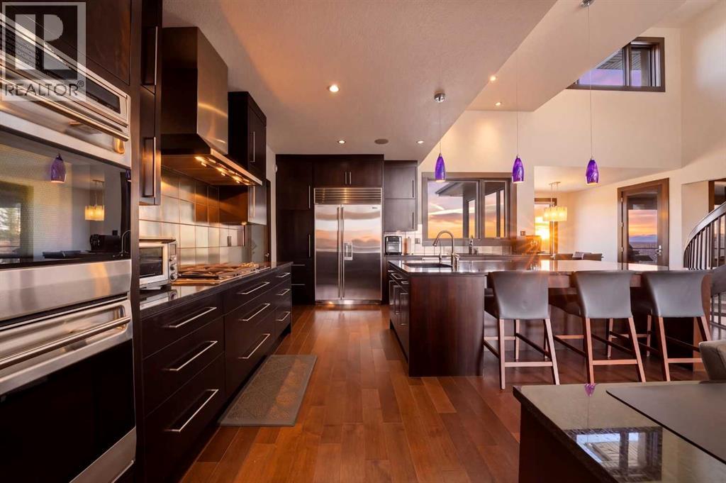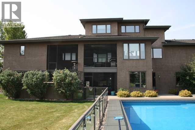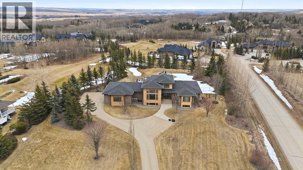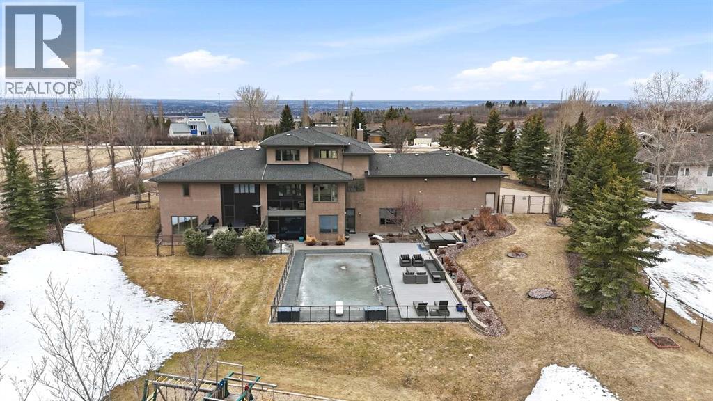 Welcome to this exceptional original owner, custom-built walkout estate in the desirable community of Balmoral Heights! 2 acres featuring a true outdoor oasis complete with a pool, this property offers over 5,800 sq ft of fully developed living space with 5 bedrooms, 5 bathrooms & triple heated garage —a rare combination of space, luxury, & functionality. Built by Bowood Homes, the quality is evident from the moment you arrive. The striking exterior leads into a grand interior highlighted by a spiral staircase centrepiece, beautiful hardwood floors, fresh professional paint throughout, soaring ceilings, an abundance of natural light, and a built-in indoor & outdoor sound system. The main living space is bright and inviting, with stunning city views and a custom gas fireplace, seamlessly flowing into the show-stopping kitchen. Designed for both everyday living and entertaining, the kitchen features Sadona cabinetry, Sub-Zero & Wolf appliances, granite countertops, an oversized pantry with custom shelving, a sink overlooking the pool deck, and a large centre island with prep sink. Large gatherings are effortless with both a formal dining space and a dining nook that leads to the screened-in patio with heaters, allowing for comfortable enjoyment. The primary suite is a true retreat, filled with natural light and complete with a spa-inspired ensuite featuring a soaker tub, oversized tiled shower, in-floor heat, and double vanity with quartz countertops. Two additional upper bedrooms (including one with a walk-in closet) are connected by a Jack & Jill bathroom with separate vanities—ideal for families. Upstairs also offers a versatile office/reading nook, perfect as a bonus space to suit your needs. The fully developed basement is built for entertaining, featuring in-floor heat, a spacious rec area large enough for a pool table, poker setup, theatre space, plus some. The wet bar is a standout with ample cabinetry and counter space, along with access to the wine cellar (c ooling unit new in 2025). The basement continues to impress with two additional spacious bedrooms, including one with its own 4-piece ensuite and walk-in closet—perfect for guests or extended family. Beyond the bedrooms, you’ll find a fully finished gym space along with a versatile family room that functions perfectly as a playroom or additional lounge area. Step outside from the basement to the covered patio featuring a gas fireplace, creating a seamless indoor-outdoor living experience. The backyard is truly a private oasis—fully fenced for peace of mind with kids and pets, and highlighted by a heated pool with upgraded liner and pool deck, hot tub, and beautifully maintained grounds. The ultimate space for entertaining or relaxing all summer long. Additional features: Central A/C, on-demand hot water, reverse osmosis system, high-speed fibre optic, lutron lighting, irrigation along the tree line, dog run, & abundant storage. An estate that checks every box—location, size, quality, and lifestyle. (id:63190)