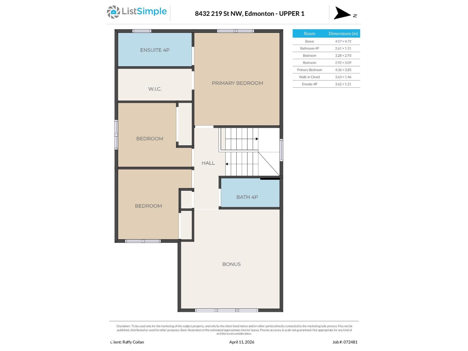 | Primary Bedroom | Upper Level | 4.36 × 3.85 | — |