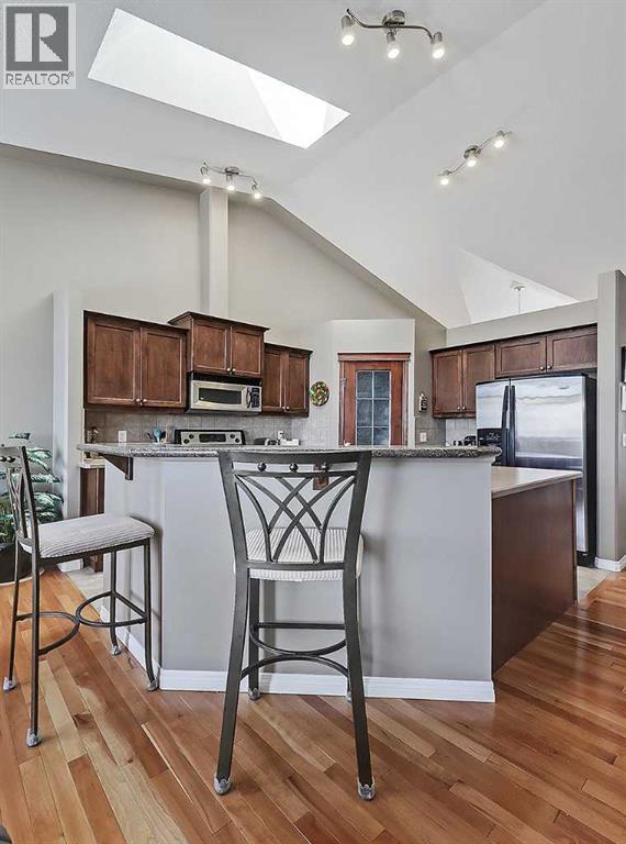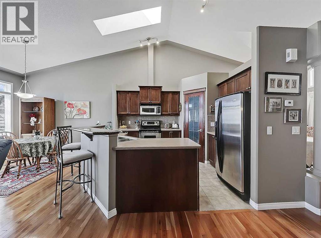 *OPEN HOUSE CANCELLED* Available for the first time since being purchased new in 2004, this gorgeous Villa is a rare offering that features everything you’ve been looking for; Mountain Views, Vaulted Ceilings, fully finished WALK-OUT basement, Double-Garage, a REAL dining room & all in a quality built BUNGALOW found within one of the most sought-after NW communities. Walking inside you may find it hard to believe that this property isn’t new, as it’s been so lovingly cared for & maintained. Gleaming hardwood floors welcome you as you make your way inside, reflecting the outside light & offering just a glimpse of what’s to come. Immediately to your right, a formal dining room awaits, with enough room to host a large family & fill the home with laughter that comes with it. Continuing on, your eyes are instantly drawn to the high pitches of the vaulted ceilings, then to the huge windows & the expansive panoramic views beyond them to the south & west. This open-concept living room & kitchen is so completely filled with natural light from the sunny south exposure & additional skylights above, you’ll rarely need to turn on a lamp before the sun goes down. The central kitchen features an island w/sink & eating bar for room for two to sit, along with a closed pantry & a suite of stainless appliances. It overlooks the living room & breakfast nook, allowing the conversations to flow no matter where you or your guests are. A cozy fireplace completes this perfect setting & (almost) makes you excited for that next big snowfall. Step outside onto the deck & bask in that full day of sunlight. The primary bedroom is found off the living room, featuring more of those vaulted ceilings & with its own views to the SW. A luxurious 5-pc ensuite bathroom awaits, also featuring it's own skylight and large walk-in closet. Back near the front of the home, a 2nd bedroom is found & could easily be a flexible space used as a den/office. A 2pc bathroom is tucked away discretely before the laundr y room, giving access to the garage. Take the stairs to the lower walk-out level & you won’t believe how much space you’ll find! First an expansive second living room, w/additional fireplace & plenty of room for all types of furniture/games/pool table or gym equipment. This level makes for an ideal place for guests or long term visitors with TWO additional bedrooms, one of which being an impressive 18 1/2 x 16’ size & an additional full 4pc bathroom. Unlike most of the other villas, unit 439 benefits from a flat green space beyond it’s walkout patio, allowing gatherings in the lush green grass. Living in this complex means you also get access to the Manor Village building across the street & its many amenities, including a gymnasium, games & movie rooms, and outside you’ll find tennis courts, & half basketball court. Across the street you’ll love taking a stroll around the neighbourhood pond! Only a 5 minute walk to the Tuscany LRT station & 2 min drive to the YMCA & Royal Oak Shopping centres. (id:63190)