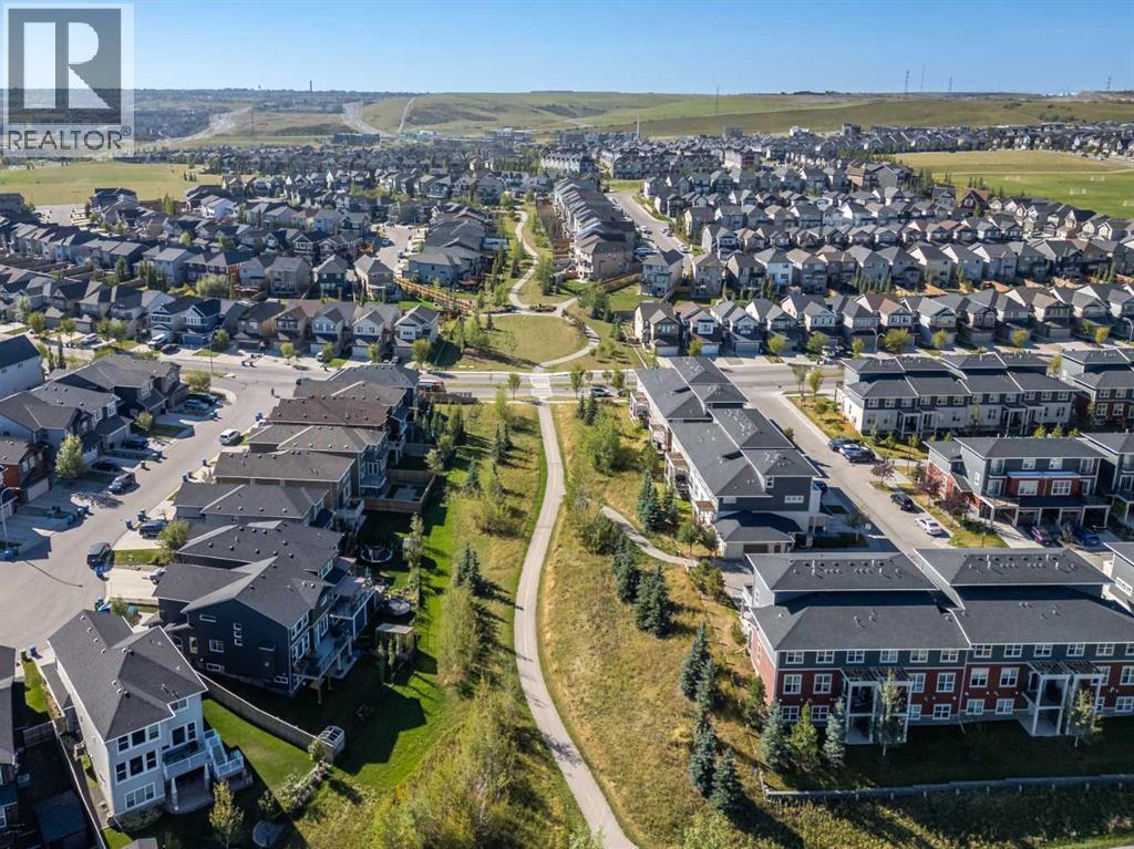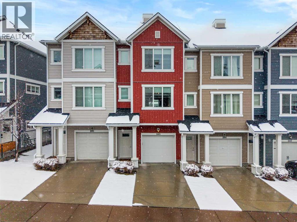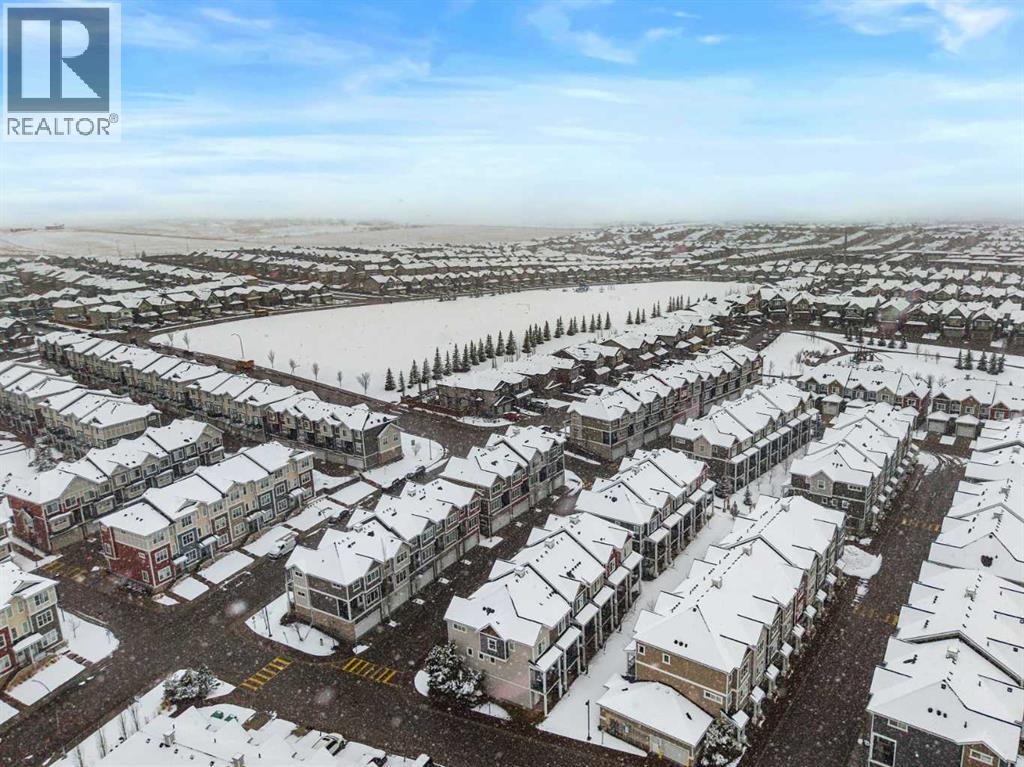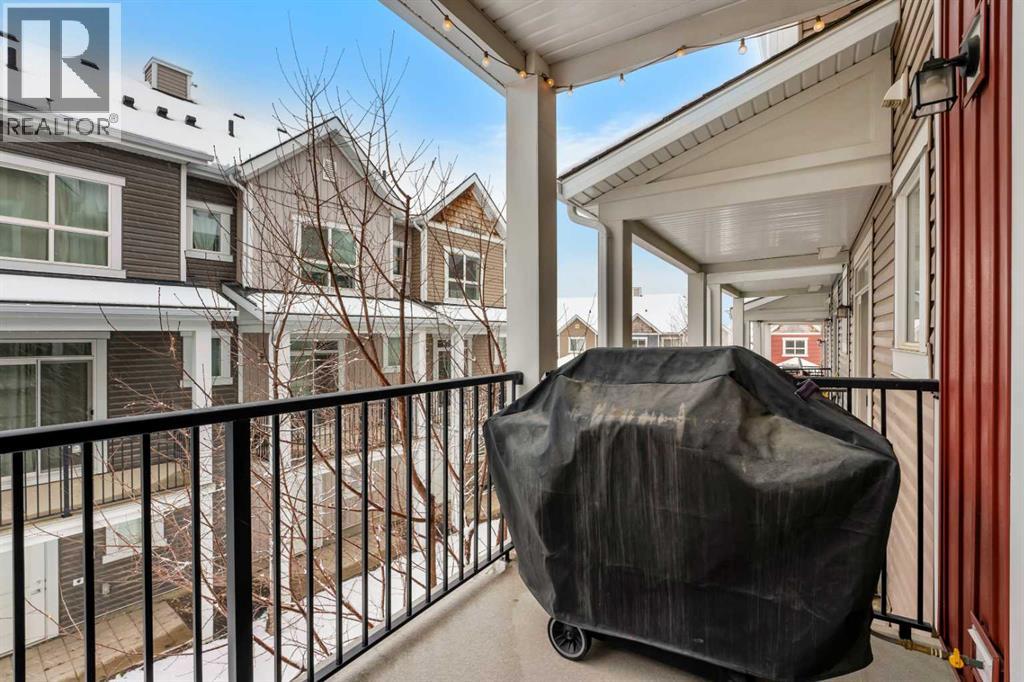 Welcome to this beautifully maintained and thoughtfully upgraded townhouse in the highly sought-after community of Nolan Hill, offering a perfect blend of style, comfort, and functionality. Step inside to discover a bright and inviting open-concept main floor with high ceilings and an open floorplan, where large windows flood the space with natural light and create an airy, welcoming atmosphere. The modern kitchen is both stylish and practical, featuring quartz counters, sleek cabinetry, stainless steel appliances, and a spacious breakfast bar that seamlessly connects to the dining and living areas—perfect for entertaining or everyday living. Just off the kitchen, enjoy a private balcony ideal for morning coffee or evening relaxation, fitted with a gas line for your BBQ! Upstairs, this well-designed layout offers two spacious primary-style bedrooms, each complete with walk-in closets and their own 4-piece ensuites, providing ultimate comfort and privacy; both ensuites have been enhanced with upgraded pot lights above the showers, a thoughtful upgrade completed after possession and not standard in similar floorplans. Additional highlights include air conditioning for year-round comfort, upper-level laundry, and a welcoming lower level with access to the attached tandem garage, offering ample parking and storage. Located close to parks, pathways, shopping, and major routes, this home presents an exceptional opportunity to own in one of NW Calgary’s most desirable communities! (id:63190)