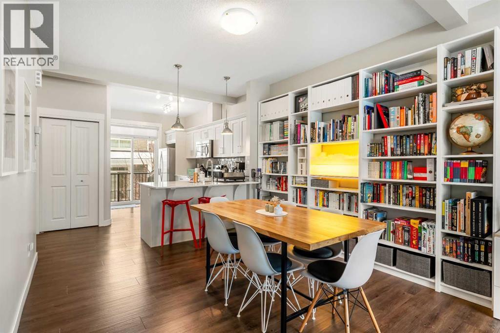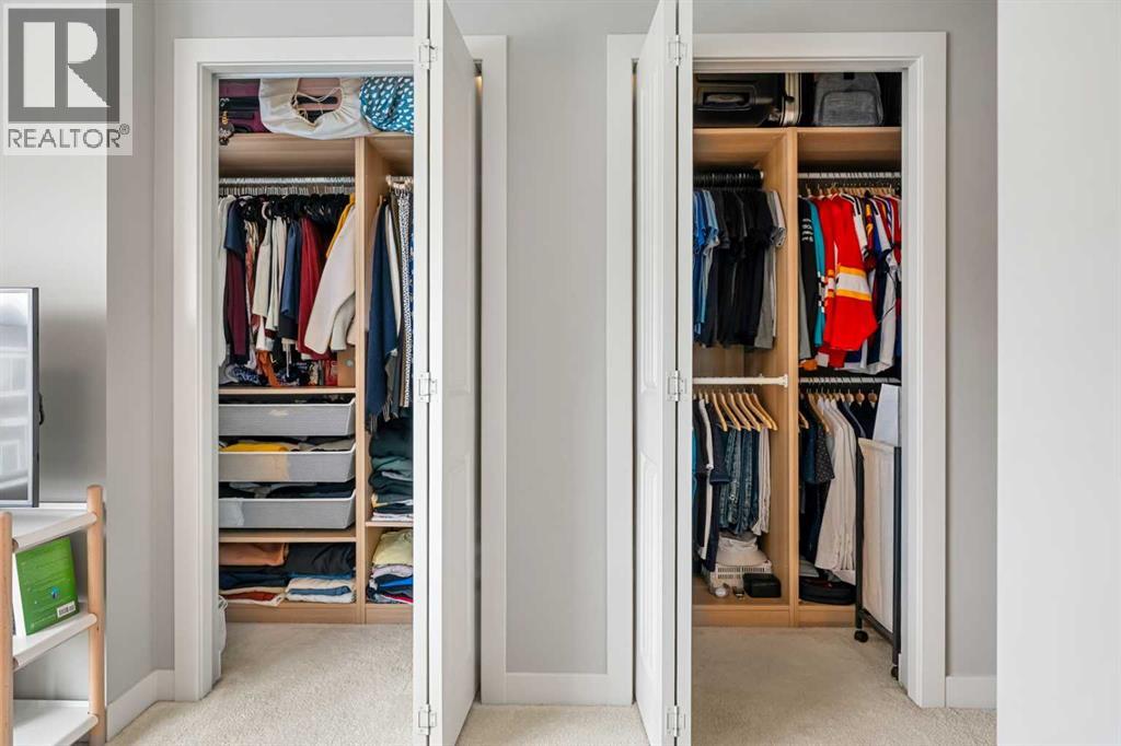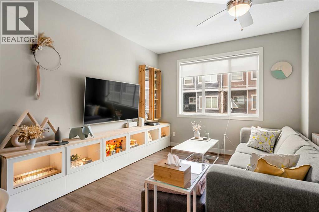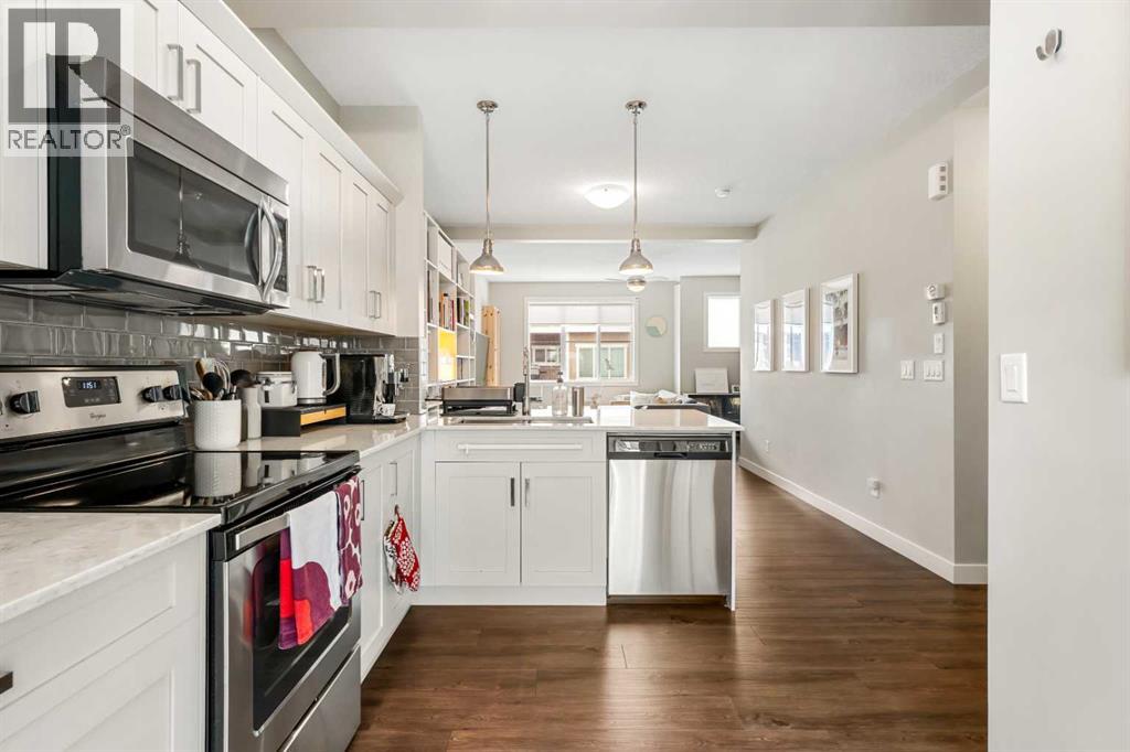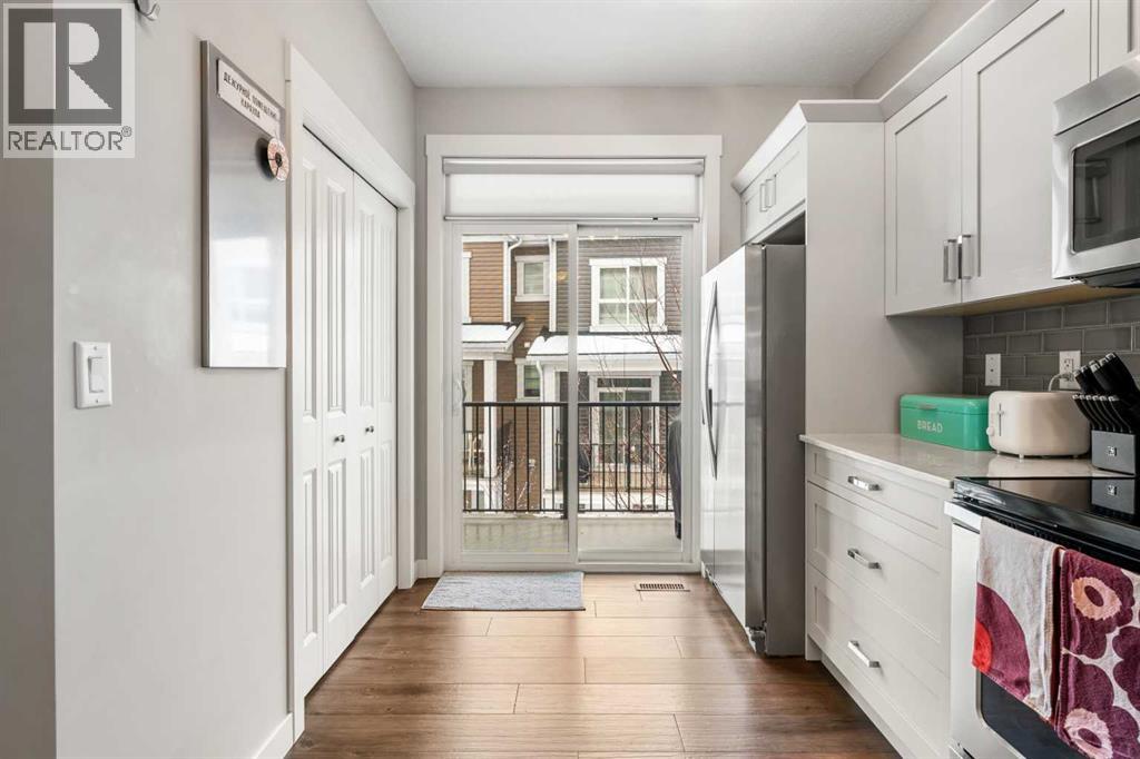 Welcome to this beautifully maintained and thoughtfully upgraded townhouse in the highly sought-after community of Nolan Hill, offering a perfect blend of style, comfort, and functionality. Step inside to discover a bright and inviting open-concept main floor with high ceilings and an open floorplan, where large windows flood the space with natural light and create an airy, welcoming atmosphere. The modern kitchen is both stylish and practical, featuring quartz counters, sleek cabinetry, stainless steel appliances, and a spacious breakfast bar that seamlessly connects to the dining and living areas—perfect for entertaining or everyday living. Just off the kitchen, enjoy a private balcony ideal for morning coffee or evening relaxation, fitted with a gas line for your BBQ! Upstairs, this well-designed layout offers two spacious primary-style bedrooms, each complete with walk-in closets and their own 4-piece ensuites, providing ultimate comfort and privacy; both ensuites have been enhanced with upgraded pot lights above the showers, a thoughtful upgrade completed after possession and not standard in similar floorplans. Additional highlights include air conditioning for year-round comfort, upper-level laundry, and a welcoming lower level with access to the attached tandem garage, offering ample parking and storage. Located close to parks, pathways, shopping, and major routes, this home presents an exceptional opportunity to own in one of NW Calgary’s most desirable communities! (id:63190)