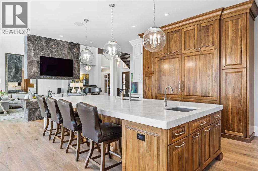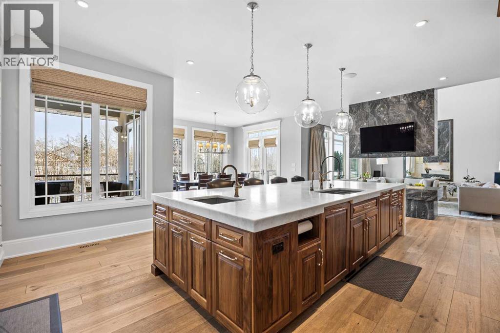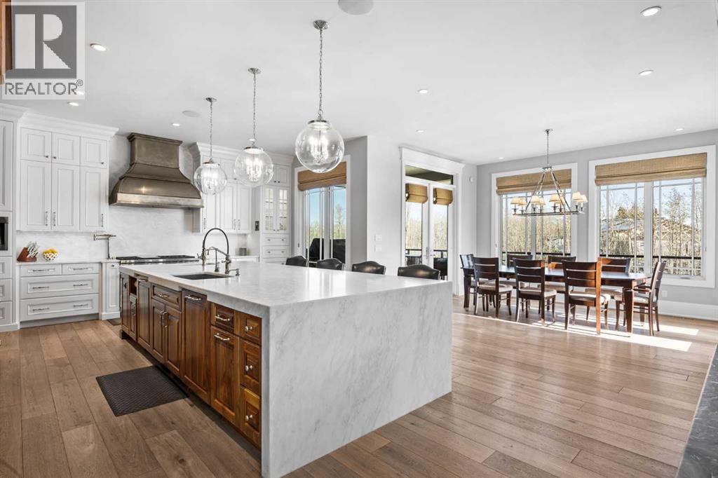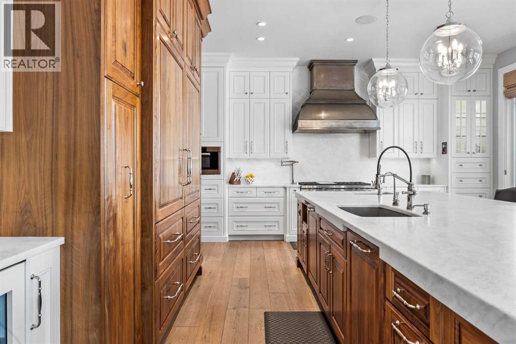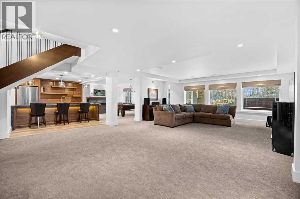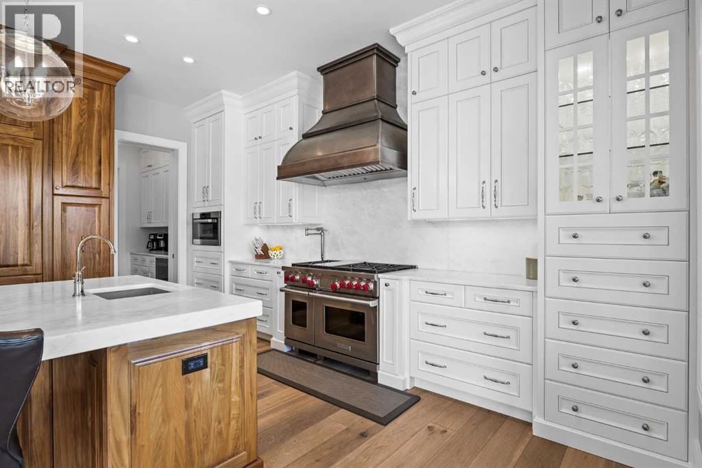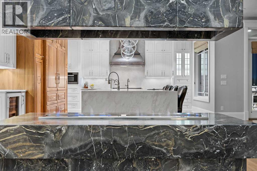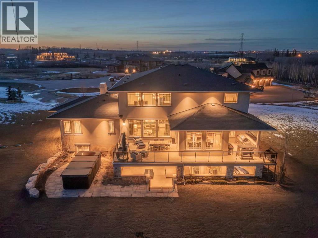 Tucked into a quiet cul-de-sac on 2.2 acres of trees and ravine, this custom-built Maillot home offers a level of privacy, scale, and finish that’s rarely found this close to the city. With 7,425 sq ft of living space, 6 bedrooms, and 4+1 bathrooms, every inch of this property has been thoughtfully designed for how a family actually lives, entertains, and unwinds.From the moment you step inside, the home makes an impression. Soaring ceilings, expansive windows, and a dramatic floor-to-ceiling feature fireplace anchor the main living space, while natural light pours in from every angle, pulling the outdoors in. The layout flows effortlessly, balancing open-concept living with defined, functional spaces including a main floor office and a private primary retreat.The kitchen is a true centrepiece. Fully custom and built to perform, it features dual Sub-Zero fridge/freezer combinations, a Wolf range, steam oven, bar fridge, and a statement Hammersmith hood fan. A massive island invites gathering, while a walk-through pantry and an exceptional mudroom with built-in dog wash and laundry keep everyday life organized behind the scenes.Upstairs, you’ll find generous secondary bedrooms, a central family lounge, and a second full laundry room, creating separation and flexibility for growing families or guests.The walkout lower level is designed for lifestyle. A full recreation space, games area with pool table, temperature-controlled wine room, bar with fridge and dishwasher, and a dedicated gym create an ideal environment for both entertaining and everyday enjoyment. A surround sound system and whole-home Control4 automation extend seamlessly throughout the home, including outdoor spaces.Comfort and efficiency are elevated with features like air conditioning, reverse osmosis water system, in-floor heating in select areas, central vacuum, and integrated audio throughout the home and garage.The exterior is equally impressive. Surrounded by mature trees and backing onto a ravine, the setting is private and peaceful. Enjoy the fully equipped outdoor BBQ kitchen, expansive deck spaces, and a swim spa, along with irrigation systems for both landscaped areas and broader property use. A fully enclosed dog run adds another thoughtful touch for acreage living.Car enthusiasts and hobbyists will appreciate the oversized quad garage with heated slab, natural light, and commercial side-mount openers.This is a home that simply doesn’t compromise. Every detail has been considered, from the custom built-ins and ample storage solutions to the technology, mechanical systems, and overall design.A rare offering where craftsmanship, setting, and functionality come together in a truly meaningful way. (id:63190)