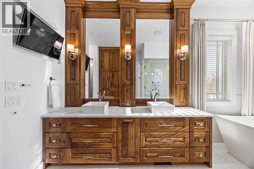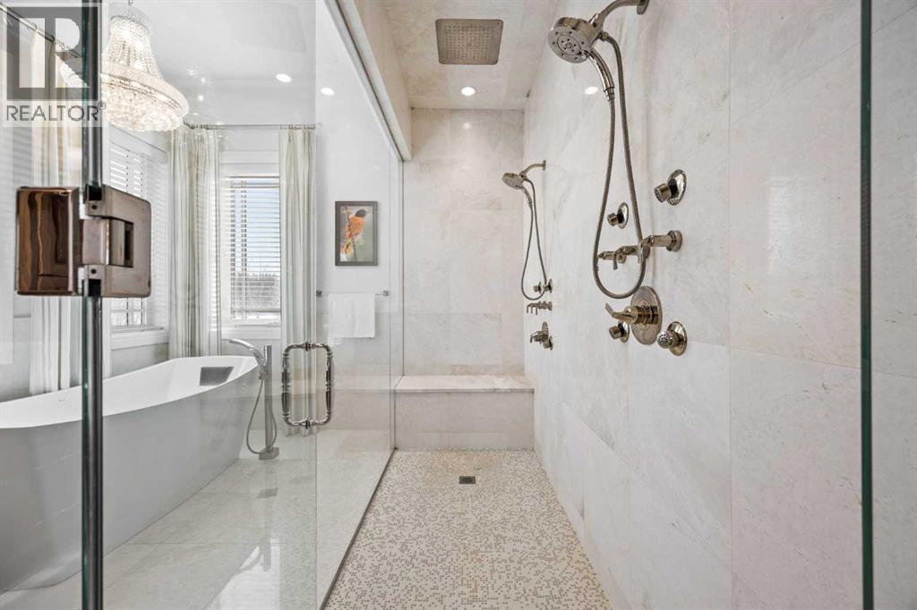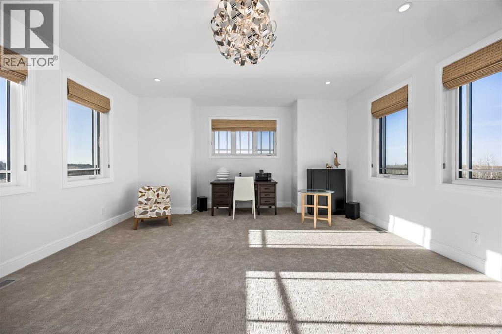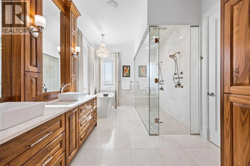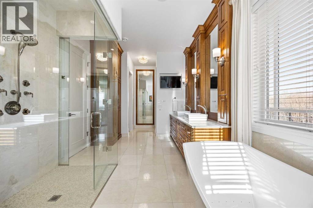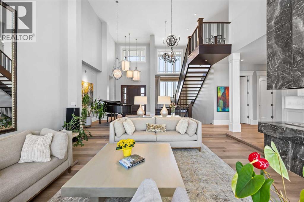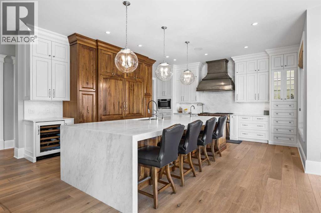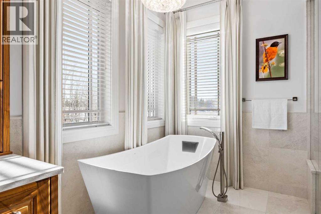 Tucked into a quiet cul-de-sac on 2.2 acres of trees and ravine, this custom-built Maillot home offers a level of privacy, scale, and finish that’s rarely found this close to the city. With 7,425 sq ft of living space, 6 bedrooms, and 4+1 bathrooms, every inch of this property has been thoughtfully designed for how a family actually lives, entertains, and unwinds.From the moment you step inside, the home makes an impression. Soaring ceilings, expansive windows, and a dramatic floor-to-ceiling feature fireplace anchor the main living space, while natural light pours in from every angle, pulling the outdoors in. The layout flows effortlessly, balancing open-concept living with defined, functional spaces including a main floor office and a private primary retreat.The kitchen is a true centrepiece. Fully custom and built to perform, it features dual Sub-Zero fridge/freezer combinations, a Wolf range, steam oven, bar fridge, and a statement Hammersmith hood fan. A massive island invites gathering, while a walk-through pantry and an exceptional mudroom with built-in dog wash and laundry keep everyday life organized behind the scenes.Upstairs, you’ll find generous secondary bedrooms, a central family lounge, and a second full laundry room, creating separation and flexibility for growing families or guests.The walkout lower level is designed for lifestyle. A full recreation space, games area with pool table, temperature-controlled wine room, bar with fridge and dishwasher, and a dedicated gym create an ideal environment for both entertaining and everyday enjoyment. A surround sound system and whole-home Control4 automation extend seamlessly throughout the home, including outdoor spaces.Comfort and efficiency are elevated with features like air conditioning, reverse osmosis water system, in-floor heating in select areas, central vacuum, and integrated audio throughout the home and garage.The exterior is equally impressive. Surrounded by mature trees and backing onto a ravine, the setting is private and peaceful. Enjoy the fully equipped outdoor BBQ kitchen, expansive deck spaces, and a swim spa, along with irrigation systems for both landscaped areas and broader property use. A fully enclosed dog run adds another thoughtful touch for acreage living.Car enthusiasts and hobbyists will appreciate the oversized quad garage with heated slab, natural light, and commercial side-mount openers.This is a home that simply doesn’t compromise. Every detail has been considered, from the custom built-ins and ample storage solutions to the technology, mechanical systems, and overall design.A rare offering where craftsmanship, setting, and functionality come together in a truly meaningful way. (id:63190)