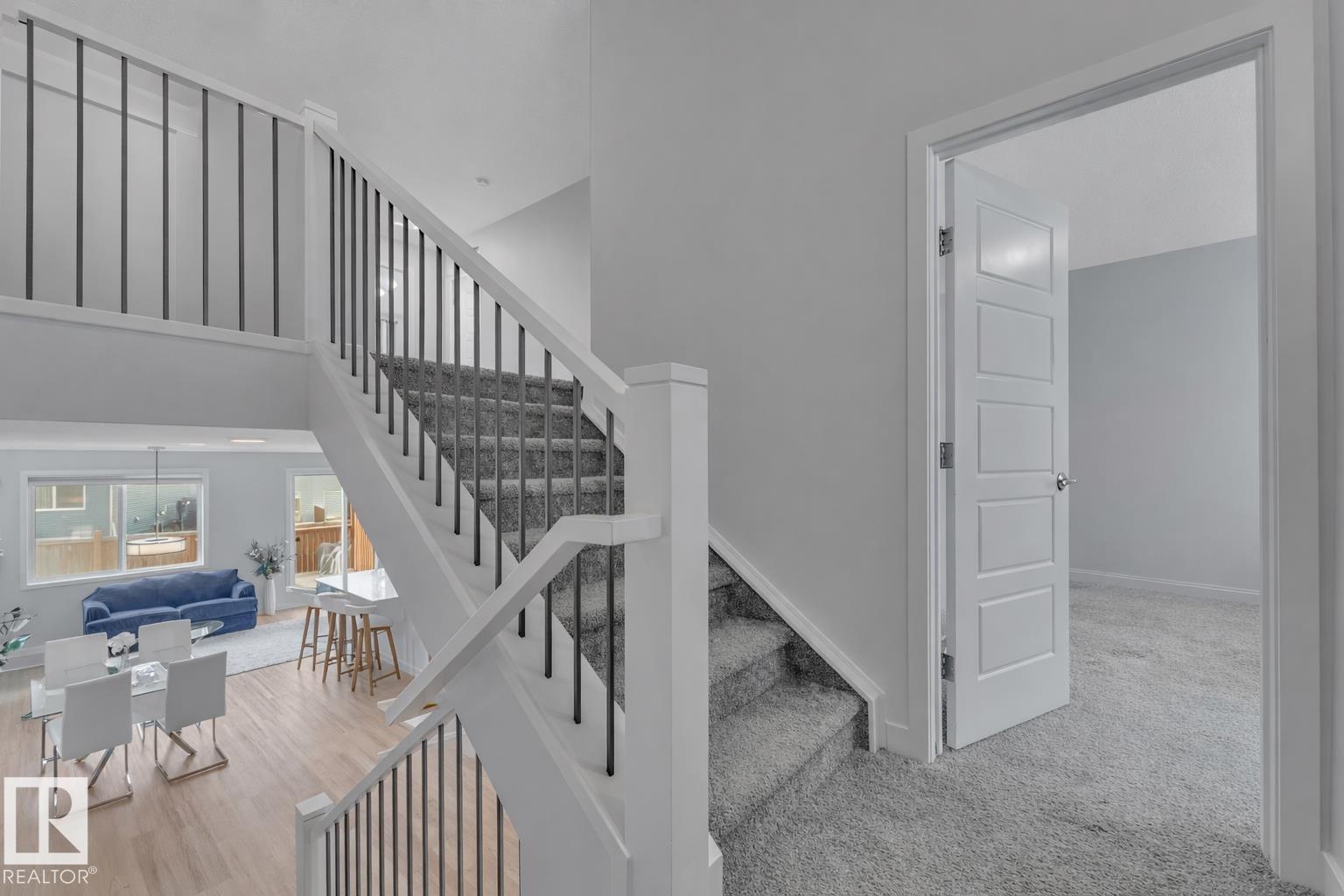 An exceptional opportunity in the sought-after SW Edmonton- Chappelle community! Offering nearly 1,700 sq ft, w/3beds, 3 bathrooms + bonus room, this beautifully designed half duplex is ideal for first-time buyers, savvy investors, or those looking to downsize without compromise. Step inside to an inviting, light-filled layout featuring oversized windows, LVP flooring, & a cozy fireplace that anchors the elegant living space. The modern kitchen impresses w/ ceiling-height cabinetry, a walk-in pantry, sleek slate appliances, & a large island complete w/built-in wine storage. Upstairs, retreat to your spacious primary suite with a walk-in closet & private ensuite. A few steps up, you have your versatile bonus room, convenient upper-floor laundry, & two additional bedrooms with a full bath. The unspoiled basement w/a large window offers endless future potential. Outside, enjoy a landscaped yard & a large deck, attached garage! Located just 4 mins to school, & quick access to Henday Dr, and YEG Airport. (id:63190)