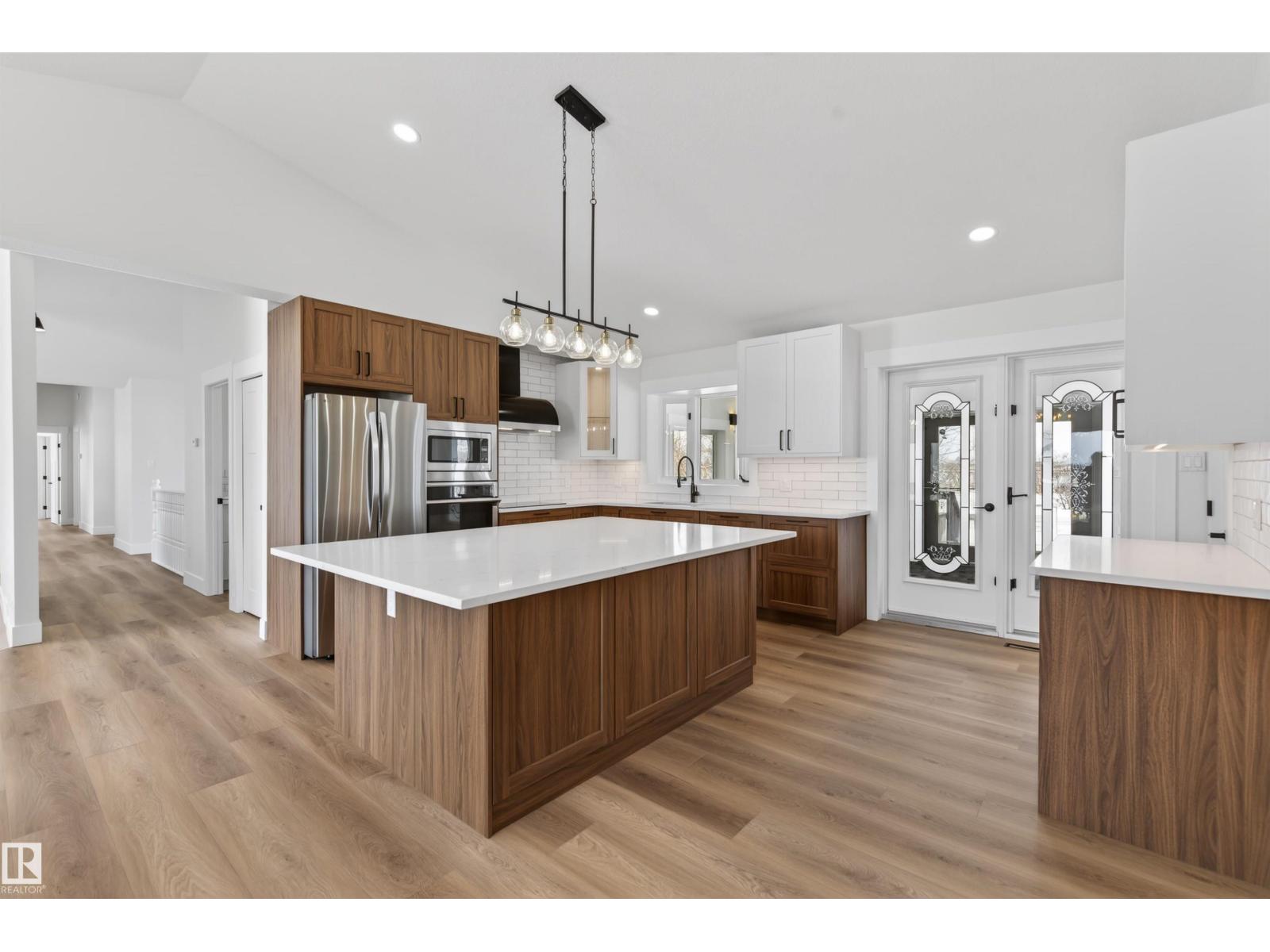 This spacious bungalow only 1 1/2 miles north of Bonnyville is situated on 20.24 acres. This home has been redone from sub floor to ceilings! The kitchen features 2 tone cabinets, marble countertops, under cabinet lighting, with vaulted ceilings, large island lots of cabinets for storage. The living room is a great place for the family to gather with a new gas fireplace. Just off the kitchen is a beautiful sunroom. 3 bedrooms on the main floor, including the master suite with large 5 pc ensuite with soaker tub. Through out this home is all new plumbing, flooring, trim, paint, lighting, most windows, all 4 baths have been redone. The basement has a wonderful family space with kitchenette, 4 pc bathroom, a large 4th bedroom with a flex room that can be used as a theatre room and more storage. A double attached heated garage with access to the back yard. New Well 2025, The yard is meticulously looked after with a fire pit area, acres to run! Concrete pad ready for your shop. Barn for the furry friends. (id:63190)