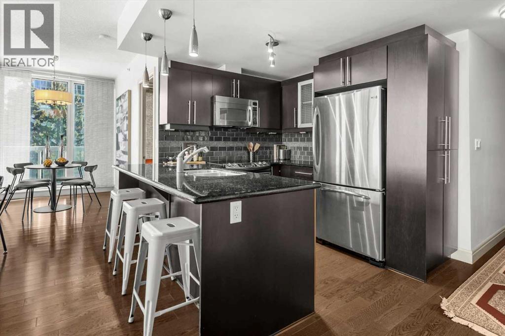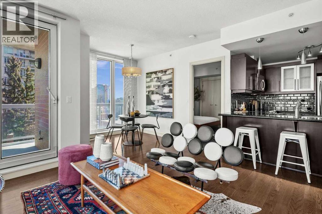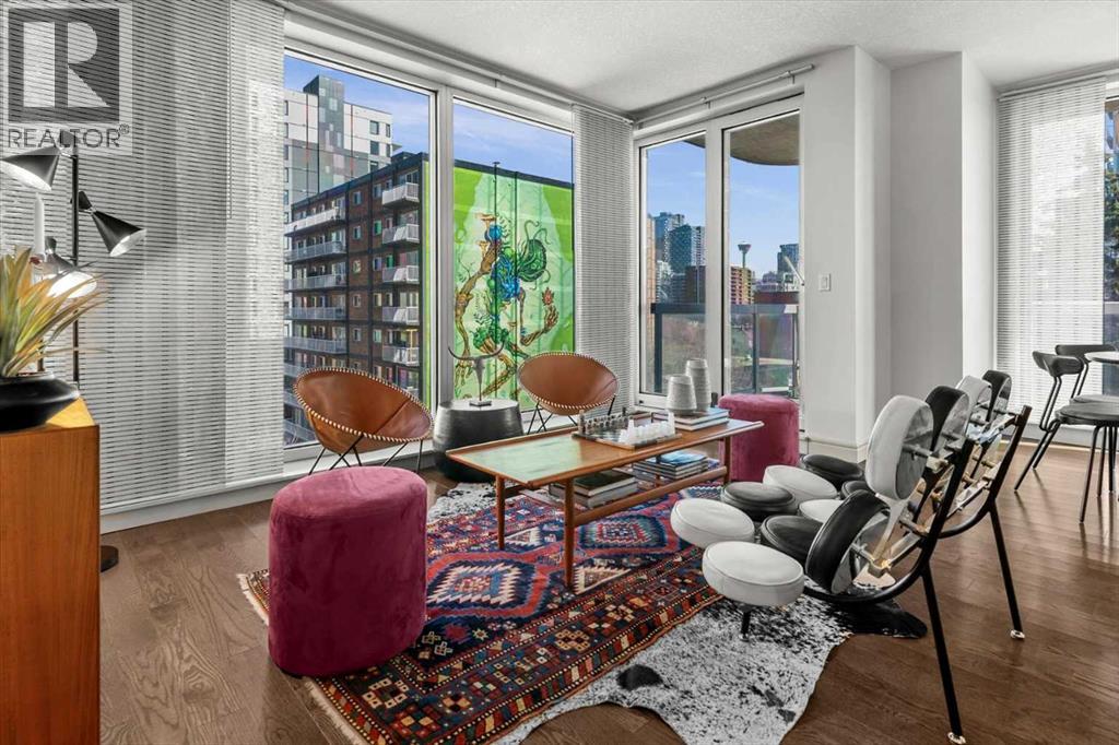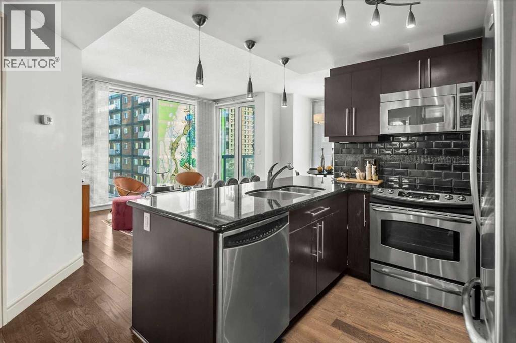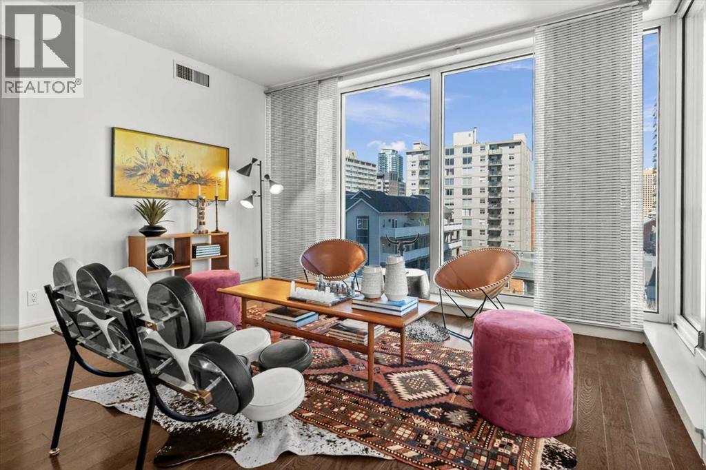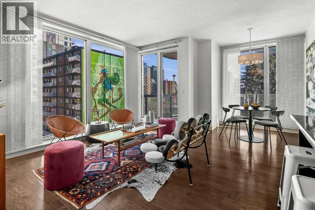 Bright, quiet, and impeccably positioned on the 5th floor, this nearly 900 sq ft corner suite offers a refined urban lifestyle in one of Calgary’s most sought-after inner-city locations. Featuring two bedrooms and two full bathrooms, the home strikes a rare balance between downtown energy and everyday tranquility, sitting just steps from the excitement of 17th Avenue while staying thoughtfully set back from the bustle of city life. Living here means embracing a truly walkable lifestyle. Start your mornings with coffee from a nearby café, pick up groceries or fresh produce just around the corner, or head to your favourite yoga studio or boutique gym, all without ever needing your car. Commuting is effortless, whether you work downtown, attend meetings across the core, or rely on nearby transit routes for easy access throughout the city. In the evenings, stroll to award-winning restaurants, lively patios, cocktail lounges, and local boutiques, then return home to a peaceful retreat elevated above the street. Inside, the open-concept layout is flooded with natural light thanks to floor-to-ceiling windows and a desirable corner orientation. Hardwood floors, central air conditioning and heating, in-suite laundry, and a thoughtful split-bedroom design create a space that feels both stylish and highly functional. The primary bedroom offers excellent privacy with a generous closet and a well-appointed ensuite, while the second bedroom and full bathroom are ideally positioned for guests, roommates, or a dedicated home office. Step onto the private balcony off the living room and enjoy your own outdoor space, complete with a gas BBQ hookup…perfect for relaxed evenings, summer grilling, or entertaining friends before heading out on 17th Ave. The home also includes titled underground parking and a separate storage locker, adding everyday convenience and peace of mind. The Montana is a standout building in Calgary’s urban landscape, known for its timeless architectural design an d quality concrete construction that provides superior soundproofing and long-term value. Residents enjoy a low-maintenance, luxury lifestyle with a 7-day concierge, a newly updated fitness centre, and condominium fees that include heat, water, insurance, and more. Beautifully maintained and move-in ready, this residence is ideal for professionals, downsizing, or urban enthusiasts seeking sophisticated downtown living without compromise. This is a home that truly complements the vibrant, connected lifestyle that downtown Calgary is known for. (id:63190)