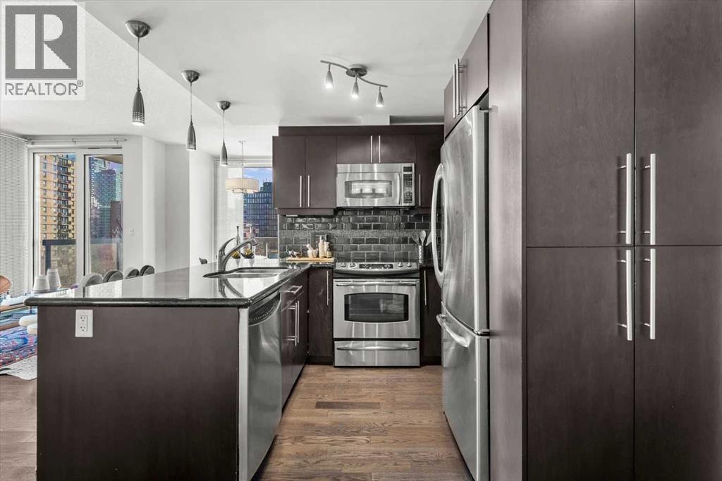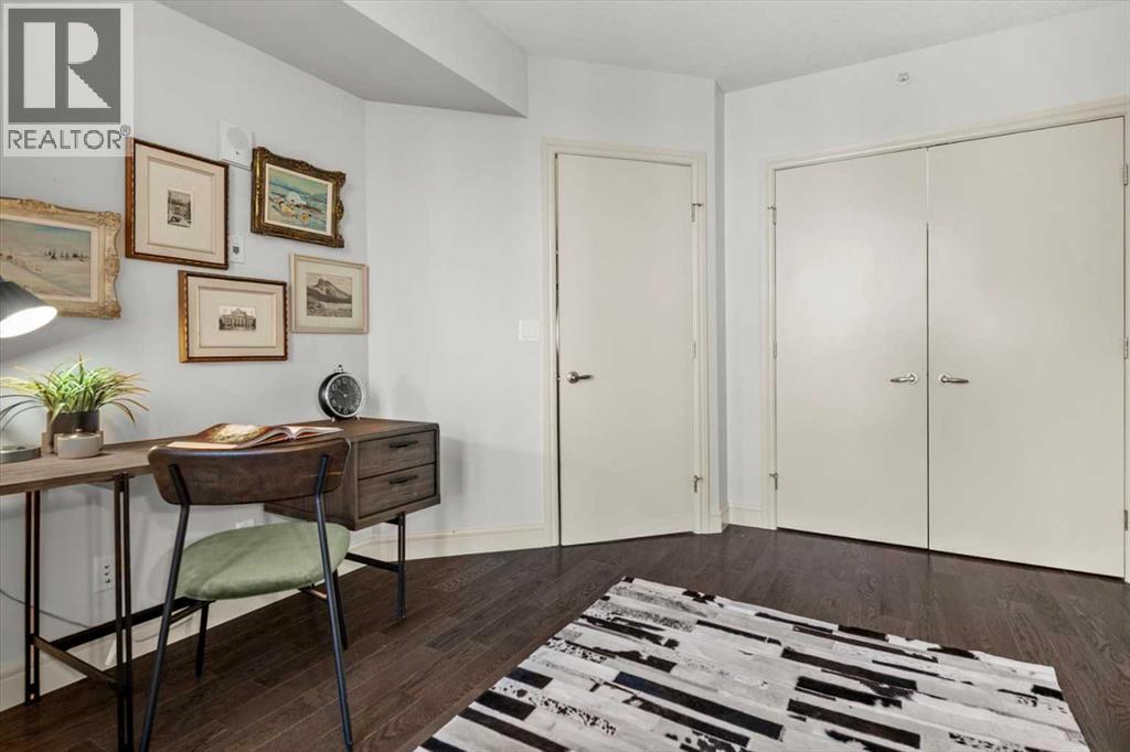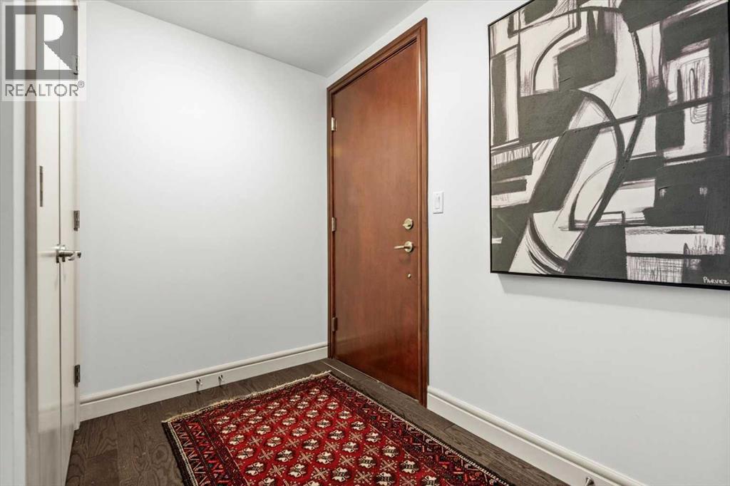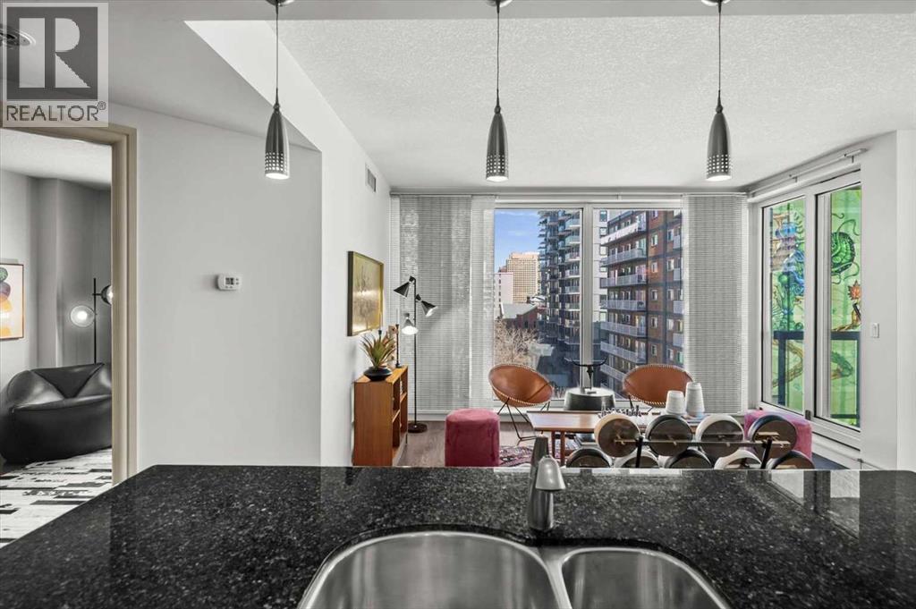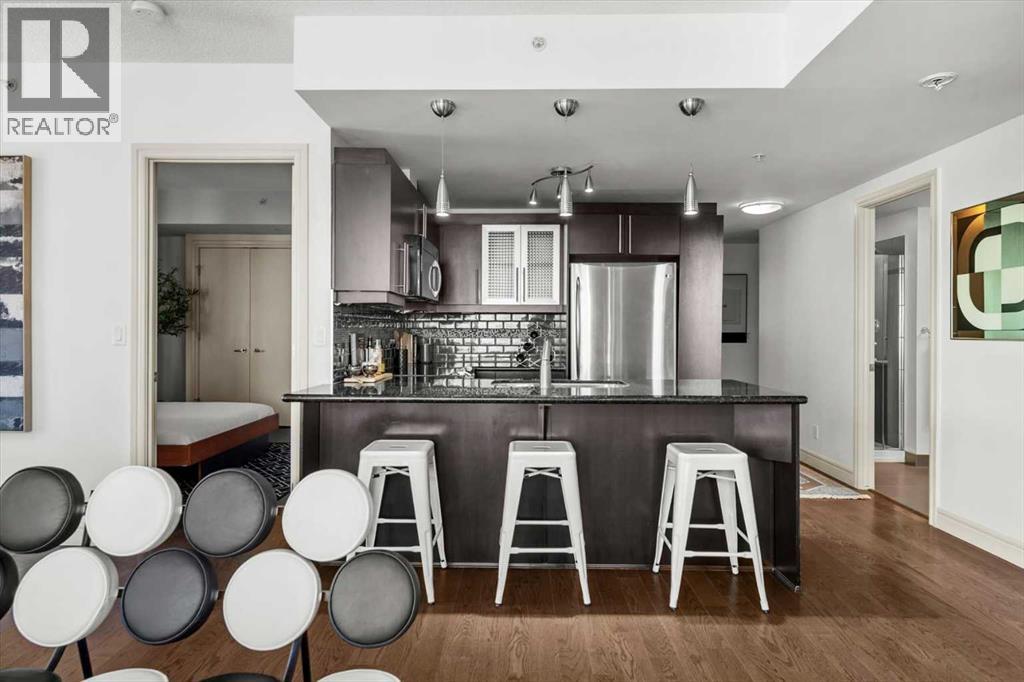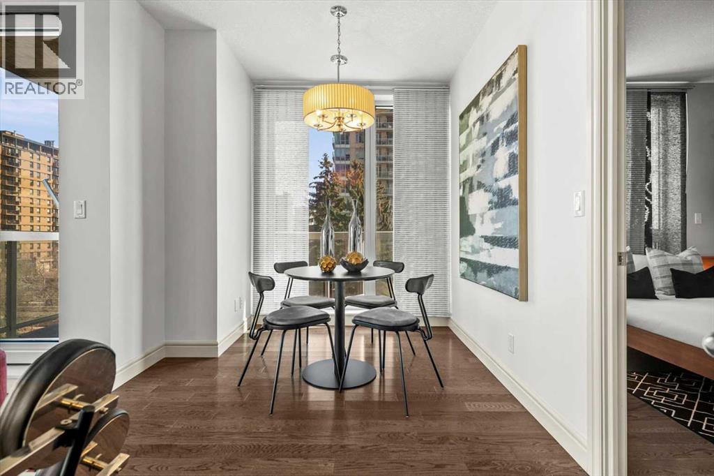 Bright, quiet, and impeccably positioned on the 5th floor, this nearly 900 sq ft corner suite offers a refined urban lifestyle in one of Calgary’s most sought-after inner-city locations. Featuring two bedrooms and two full bathrooms, the home strikes a rare balance between downtown energy and everyday tranquility, sitting just steps from the excitement of 17th Avenue while staying thoughtfully set back from the bustle of city life. Living here means embracing a truly walkable lifestyle. Start your mornings with coffee from a nearby café, pick up groceries or fresh produce just around the corner, or head to your favourite yoga studio or boutique gym, all without ever needing your car. Commuting is effortless, whether you work downtown, attend meetings across the core, or rely on nearby transit routes for easy access throughout the city. In the evenings, stroll to award-winning restaurants, lively patios, cocktail lounges, and local boutiques, then return home to a peaceful retreat elevated above the street. Inside, the open-concept layout is flooded with natural light thanks to floor-to-ceiling windows and a desirable corner orientation. Hardwood floors, central air conditioning and heating, in-suite laundry, and a thoughtful split-bedroom design create a space that feels both stylish and highly functional. The primary bedroom offers excellent privacy with a generous closet and a well-appointed ensuite, while the second bedroom and full bathroom are ideally positioned for guests, roommates, or a dedicated home office. Step onto the private balcony off the living room and enjoy your own outdoor space, complete with a gas BBQ hookup…perfect for relaxed evenings, summer grilling, or entertaining friends before heading out on 17th Ave. The home also includes titled underground parking and a separate storage locker, adding everyday convenience and peace of mind. The Montana is a standout building in Calgary’s urban landscape, known for its timeless architectural design an d quality concrete construction that provides superior soundproofing and long-term value. Residents enjoy a low-maintenance, luxury lifestyle with a 7-day concierge, a newly updated fitness centre, and condominium fees that include heat, water, insurance, and more. Beautifully maintained and move-in ready, this residence is ideal for professionals, downsizing, or urban enthusiasts seeking sophisticated downtown living without compromise. This is a home that truly complements the vibrant, connected lifestyle that downtown Calgary is known for. (id:63190)