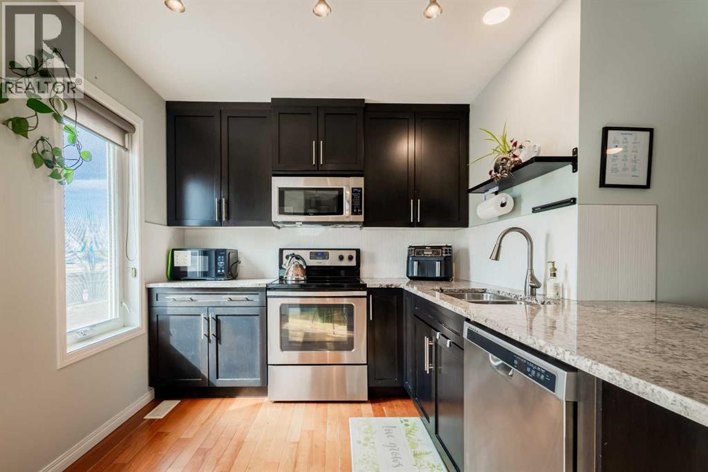 Unlock exceptional value in this one-of-a-kind end-unit townhouse, where comfort meets the best of lake community living. Thoughtfully designed, this home features a spacious kitchen with stainless steel appliances, rich cabinetry, and elegant granite countertops—ideal for both everyday living and entertaining.The dining area overlooks a sunken living room with soaring ceilings and expansive windows, complete with automated blinds that fill the space with natural light from the front garden. This level also includes a pantry, a convenient half bath, and a built-in office area, offering both style and functionality.Automated lighting is featured throughout the entire home, adding comfort and modern convenience in every space. Upstairs, you’ll find a laundry area and two generously sized primary bedrooms, each with its own private 4-piece ensuite and walk-in closet, providing exceptional comfort and privacy.The lower level offers excellent storage space and direct access to the double attached garage. Located in a vibrant four-season lake community, this home is just steps from shopping, a movie theatre, pubs, and dining, with easy access to Deerfoot and Stoney Trail. You’ll also enjoy walking distance to the South Health Campus and the lake entrance.Don’t miss your opportunity to own this exceptional home offering style, convenience, and outstanding value! (id:63190)