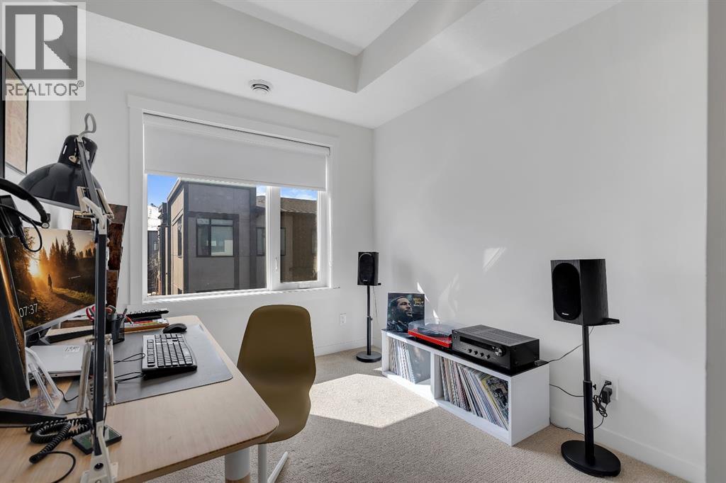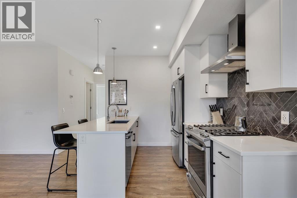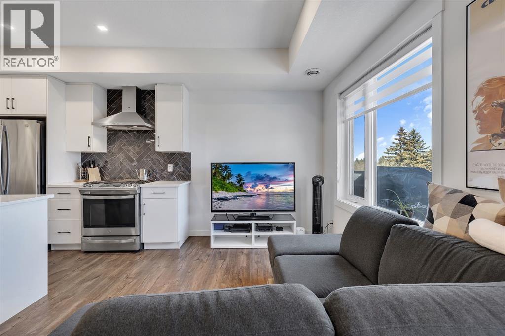 Welcome to 516 Greenbriar Common NW, located in the highly sought after community of Greenwich in Calgary. This top floor, end unit stacked townhome showcases upgraded luxury finishes and a bright, open concept layout designed for modern living. Offering over 1,000 sq ft of living space, this thoughtfully designed home features 2 bedrooms and 2 full bathrooms, along with a private, secure single attached garage and a full builder show home upgrade package. It perfectly blends the privacy of a townhome with the convenience of an apartment style layout. Upon entry, you are greeted by a welcoming foyer with under stair storage, leading to two flights of stairs up to your exclusive top floor retreat. The upper level opens into a spacious living and dining area, complemented by a beautifully upgraded kitchen featuring stainless steel gourmet appliances, a gas stove, chimney hood fan, built in microwave, and a full herringbone tile backsplash. Just off the living room, enjoy a large glass panelled balcony with sweeping views toward Bowness and the surrounding green space, perfect for relaxing or entertaining. With only a limited number of upper level units, just 8 in the community, this home offers a rare opportunity for elevated privacy and scenic outlooks over established greenery and ridge pathways. The single level floor plan includes two well appointed bedrooms and two full bathrooms. The primary suite is enhanced by additional corner windows, providing abundant natural light with east facing and south backing exposure. It also features a spacious closet and a private ensuite with a walk in shower, upgraded tile work, and quartz countertops. Built with quality and attention to detail, this home includes vinyl plank flooring from Divine Flooring’s Voyage line, quartz countertops throughout, upgraded stainless steel appliances, enhanced tile work in the kitchen and bathrooms, upgraded carpet and underlay, window coverings, and 9 foot ceilings. Greenwich is a vibrant, g rowing community offering excellent walkability to nearby amenities such as the Calgary Farmers’ Market, Analog Coffee, Market Wines, and Mash Pizza. Residents also enjoy access to established walking and biking trails, two playgrounds, and an off leash dog park. Conveniently located just 18 minutes to downtown Calgary, 12 minutes to the University of Calgary and Foothills Hospital, and only 45 minutes to the mountains, this home offers the perfect balance of urban convenience and outdoor lifestyle.Discover what makes Greenwich one of NW Calgary’s premier communities to call home. (id:63190)