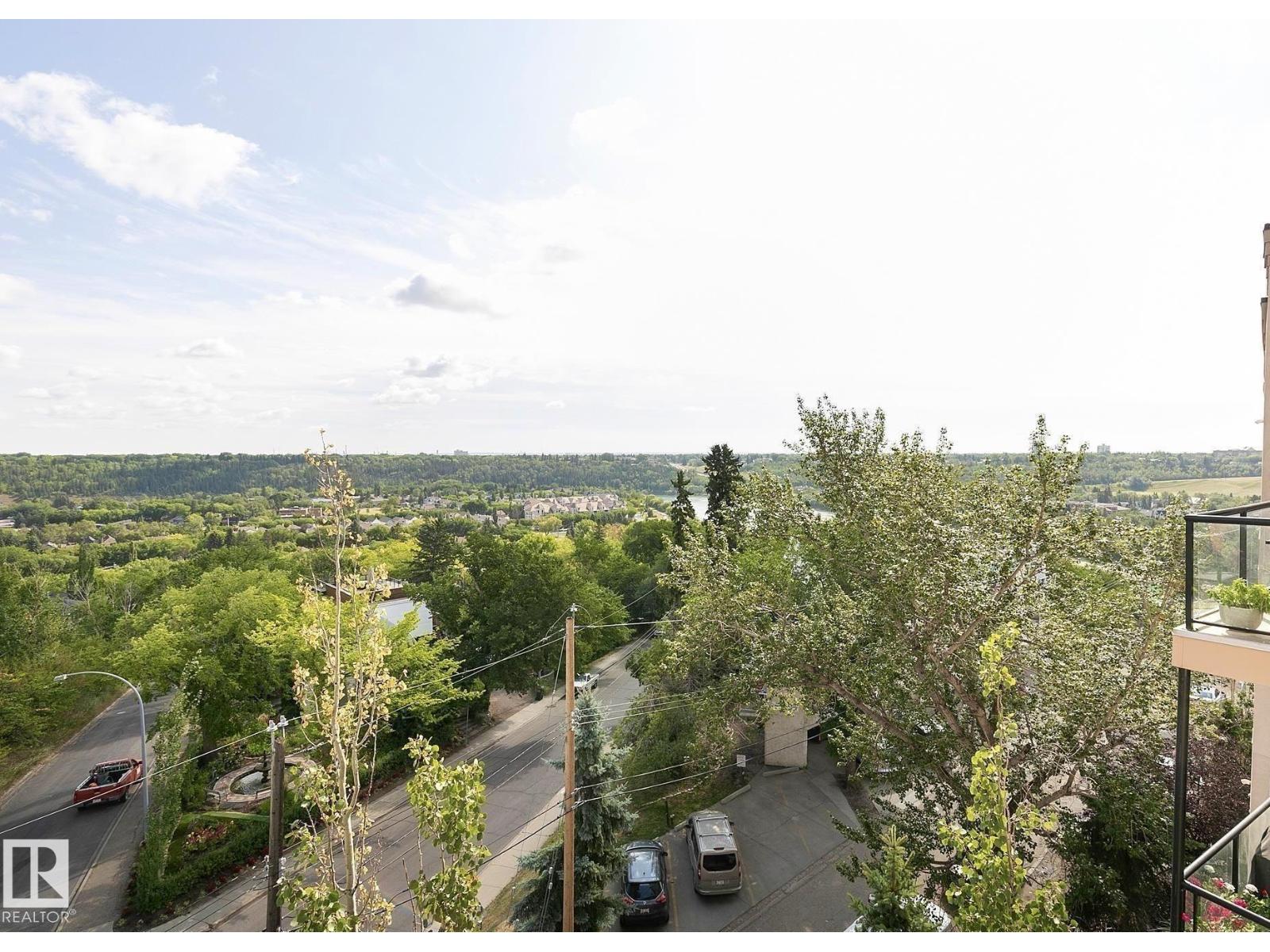 ONE OF THE MOST DESIRABLE LOCATIONS IN THE CITY! Immaculate TOP FLOOR, AIR CONDITIONED 2 bedroom unit overlooking charming RIVERDALE, RIVER VALLEY, & LOUIS MCKINNEY! 10FT CEILINGS greet you adding volume and loads of NATURAL LIGHT into this charming unit. Engineered HARDWOOD & TILE. UPDATED KITCHEN w/ LARGE ISLAND KITCHEN & BREAKFAST BAR, perfect for entertaining. 2 bedrooms are separated by a full 4 piece bath, a set up great for a HOME OFFICE or roommate. Bathroom is complete with extra cabinets, TILE FLOOR and entrance to the Primary Bedroom. PRIVATE EAST FACING BALCONY makes for great summer evenings or morning coffee in the sun. Utility Room off the balcony adds extra storage. RECENT UPGRADES include TANKLESS DUAL WATER HEATER, FRESH PAINT THROUGHOUT, NEW CARPET, LIGHT FIXTURES & REFINISHED CABINETS & COUNTERTOPS. Park in the TITLED, HEATED, UNDERGROUND stall with LARGEST STORAGE CAGE IN THE BUILDING. Tons of visitor & street parking. An incredible opportunity to make this condo yours! (id:63190)