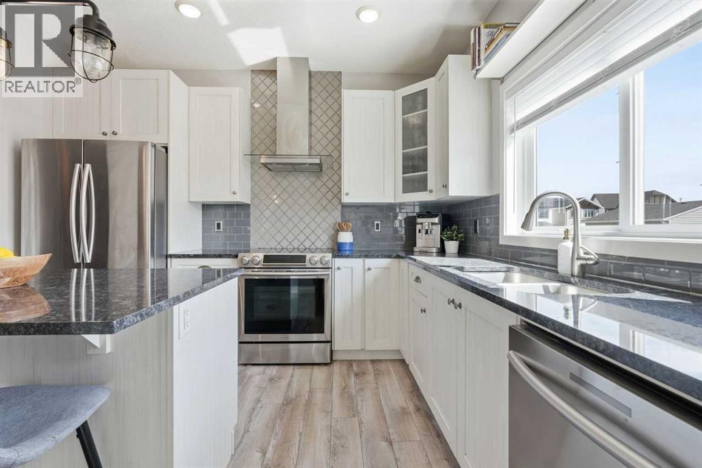 Welcome to this stunning AIR CONDITIONED 2-storey home with modern curb appeal and a FULLY LEGAL BASEMENT SUITE! The open-concept main floor features laminate flooring, a stylish dining area with FEATURE WALL, and a BRIGHT kitchen complete with white cabinetry, Samsung stainless steel appliances, designer backsplash, GRANITE countertops, and a large island with seating. A tucked-away nook offers the perfect home OFFICE SPACE. Upstairs, you’ll find a SPACIOUS PRIMARY RETREAT with a 5-piece ensuite and walk-in closet, plus two additional bedrooms, a full bath, and convenient UPSTAIRS LAUNDRY room. The lower level is equally impressive, featuring 9’ CEILINGS and a fully legal 1-bedroom basement suite — ideal for RENTAL INCOME, extended family, or guests. With its own spacious layout, full kitchen, living area, second laundry, and separate covered side entry, it offers both comfort and privacy. Step outside and enjoy your newly built deck, complete with privacy lattice — perfect for summer evenings. The backyard was landscaped with a new fence in 2023 and also features a gravel parking pad for added convenience. New Roof and siding completed in 2021. NEW FURNACE in 2025.Located close to schools, parks, shopping, and transit, this home offers incredible value, versatility, and style — whether you’re looking to live, invest, or both. (id:63190)