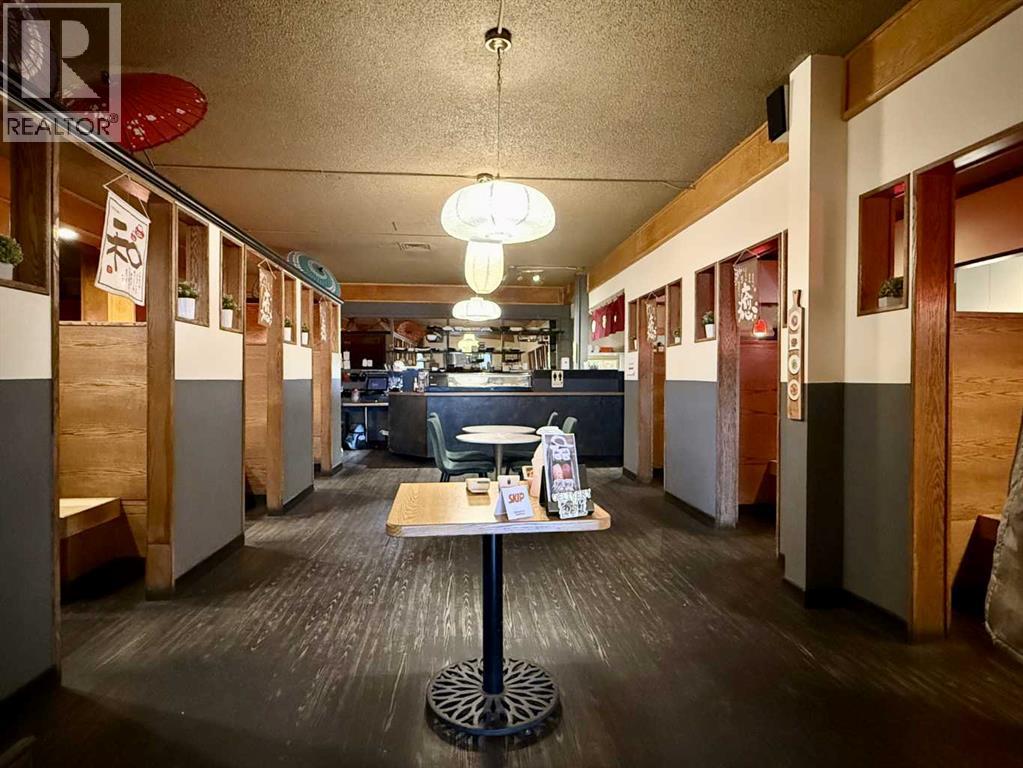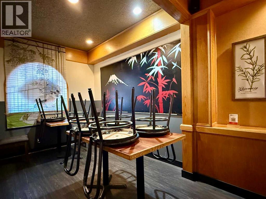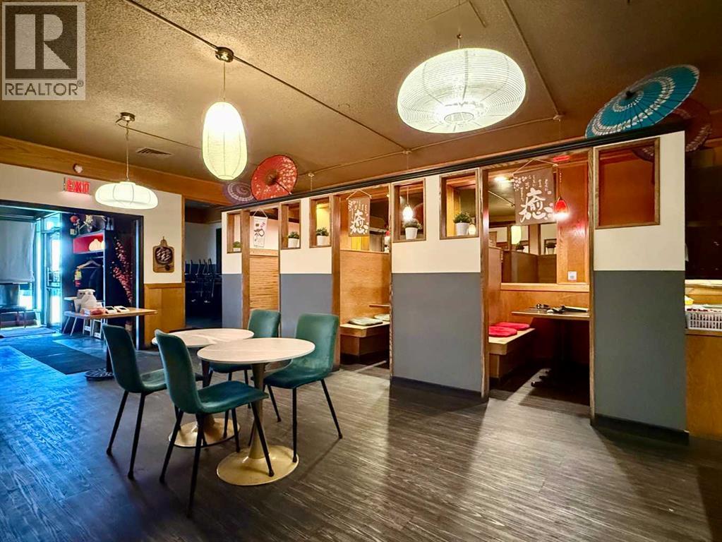 Golden opportunity to operate a well-established, fully licensed sushi restaurant in Lethbridge! This restaurant generates proven annual sales of approximately 1 Million dollars, supported by a strong base of repeat clientele, with further growth potential for a dedicated and motivated owner. Situated on the ground level of the Travelodge Hotel with 3,000 sqft of well-improved space, the restaurant accommodates up to 70 patrons with comfortable booth seating. The fully equipped kitchen is designed to handle high-volume service and includes a commercial dishwashing station, walk-in freezer, and walk-in cooler. The owner has successfully operated this restaurant for 11 years, and just signed 5yr lease last year, with option to renew for another 5 years. The gross lease includes all utilities & GST. Ideally located by a major road near a golf course, parks, well-known landmarks, and other popular retailers, the property benefits from excellent visibility & street exposure. And there is a huge parking lot for customers. Exceptional value! Don’t miss this opportunity! Please respect the business and do not visit without an appointment. (id:63190)